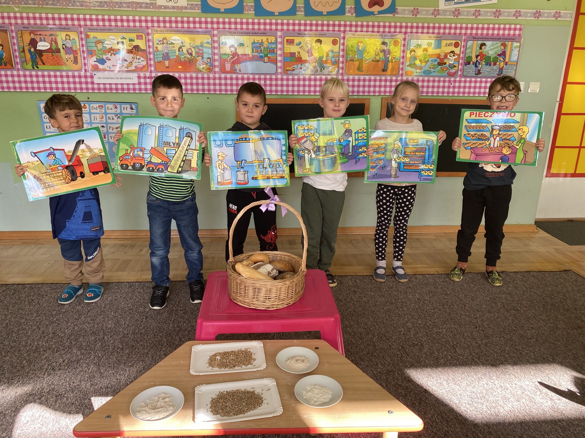 W trzecim tygodniu października dzieci z grupy starszej rozmawiały o tym „Co z czego powstaje?”. W czwartek na zajęciach poznały etapy powstawania chleba na podstawie historyjki „Od ziarenka do bochenka”. Dowiedziały się, że jest to bardzo długi proces ... [ więcej ]