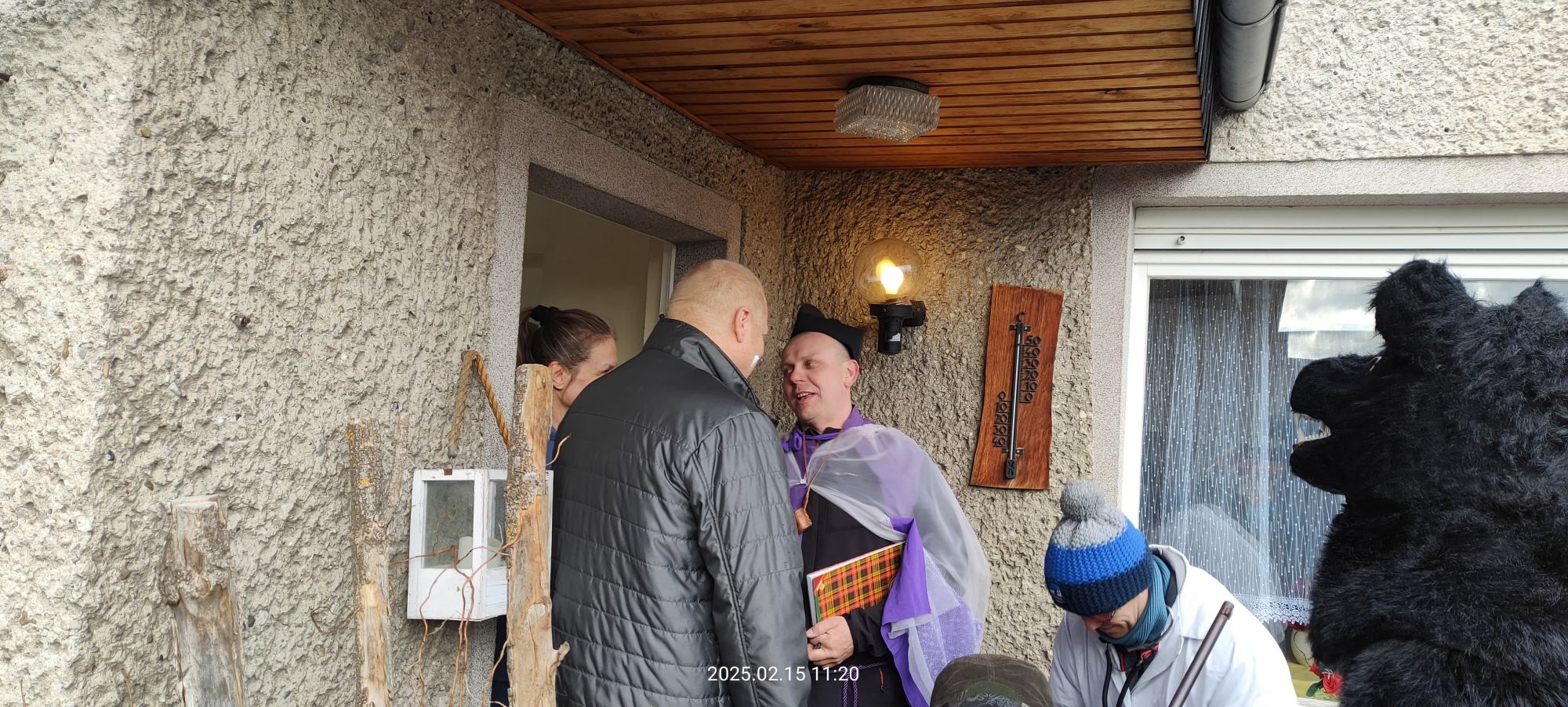 W sobotnie przedpołudnie, dnia 15 lutego Bery z dinozaurem odwiedziły domostwa położone po lewej stronie torów kolejowych w Krasiejowie. Przebierańcy pukali do drzwi lub byli witani przez gospodarzy, którzy wierzą, że odwiedziny Berów będą źródłem dobrej energii w najbliższym roku, a taniec z niedźwiedziem sprowadzi do domu szczęście.