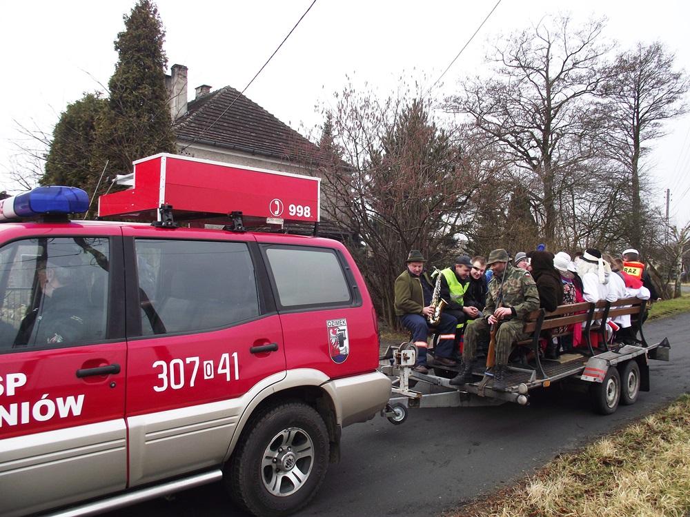 Kilkunastoosobowa ekipa strażaków przy akompaniamencie trzech grajków, ruszyła ul. Powstańców Śl. w kierunku Ozimka. Następnie boczną ul. Ozimską wróciła do wsi, odwiedzając wszystkie domostwa.
