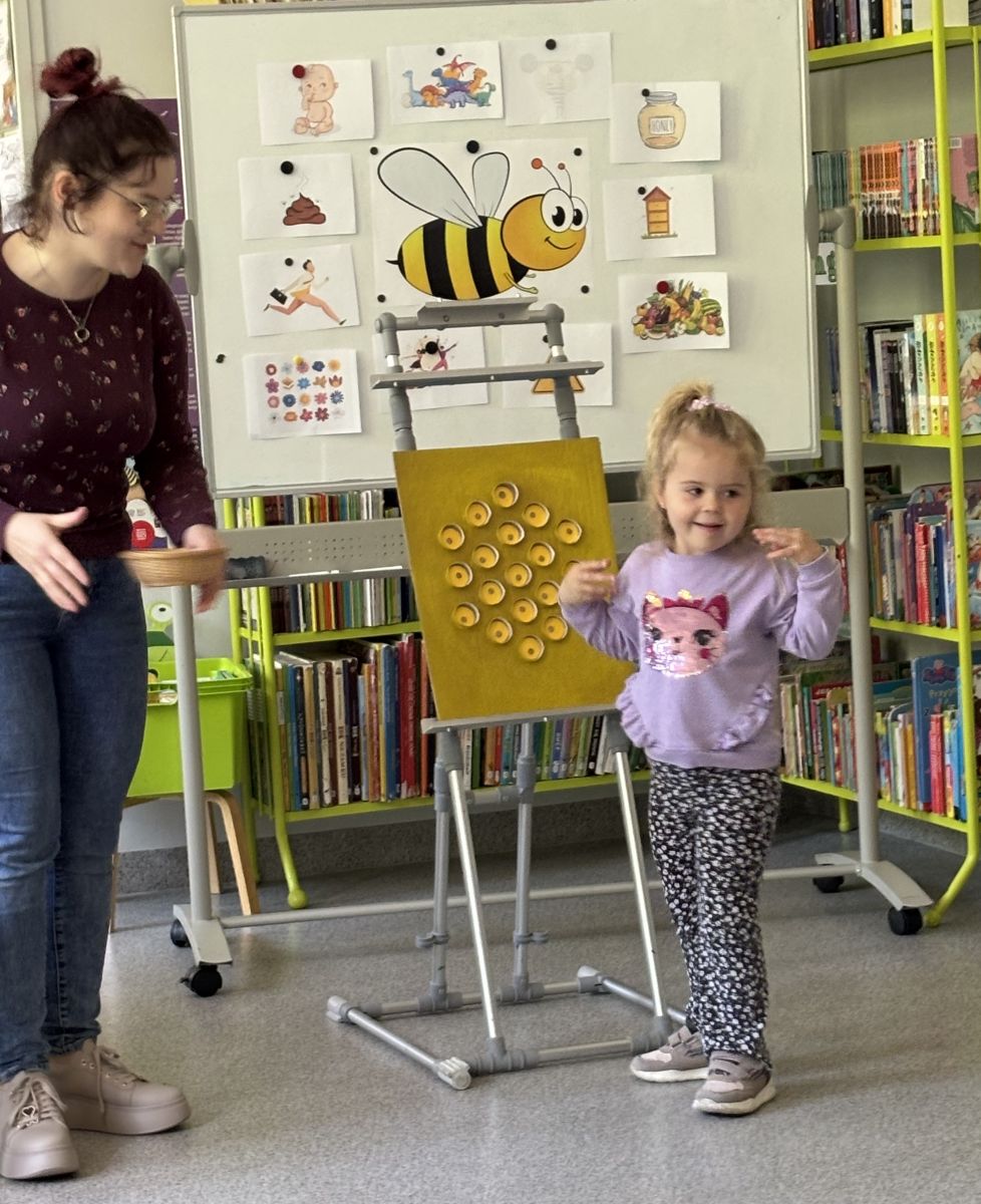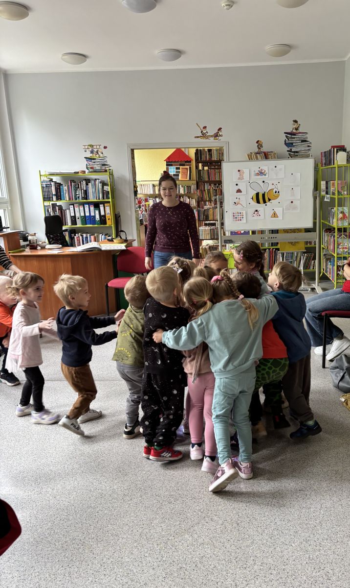 19 maja 2025 r. z okazji Dnia Pszczoły najmłodsza grupa z Przedszkola Publicznego Nr 1 w Ozimku odwiedziła Bibliotekę Dziecięcą w Domu kultury w Ozimku. Wspólnym zabawom połączonym z czytaniem książeczek i poznawaniem ciekawostek o życiu pszczół nie było końca. Były zabawy ruchowe, tworzenie plastra miodu i wspólna degustacja ciasteczek posmarowanych oczywiście miodem. Dzieci bardzo aktywnie brały udział w zajęciach i chętnie dzieliły się swoją wiedzą na temat pszczół z paniami z biblioteki. Na koniec miały także okazję pooglądać książeczki poukładane na bibliotecznych półeczkach. Dzieciom bardzo się podobało i obiecały, że na pewno jeszcze tam wrócą.
