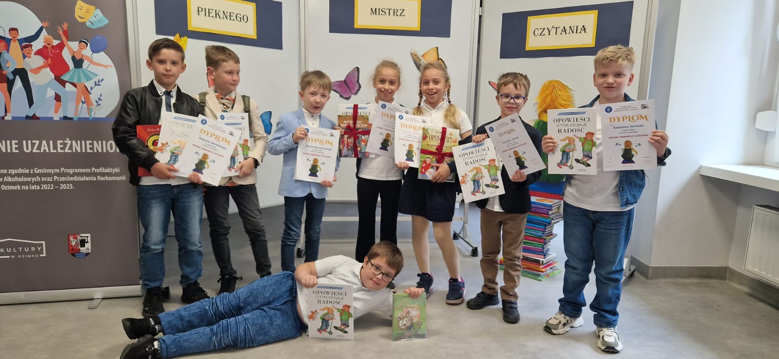 21 maja 2025 roku w Domu Kultury w Ozimku odbył się finał gminnego konkursu czytelniczego „Mistrz Pięknego Czytania 2025”. Konkurs, skierowany do uczniów klas drugich szkół podstawowych z terenu gminy Ozimek, zgromadził dwudziestu uczestników, półfinalistów etapów szkolnych. SP3 reprezentowało ośmioro uczniów: Wojciech Berbelicki, Marcin Brzuchowski, Florian Juszkiewicz, Jan Małolepszy z kl. IIa oraz Kalina i Nela Golletz, Franciszek Juruć i Radosław Korzonek z kl. IIb.