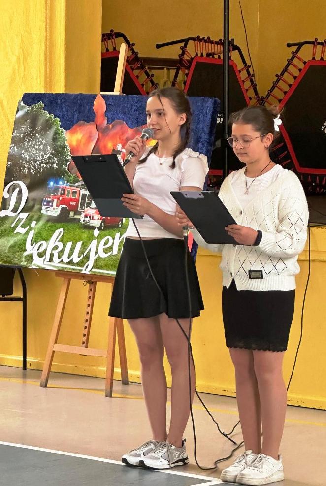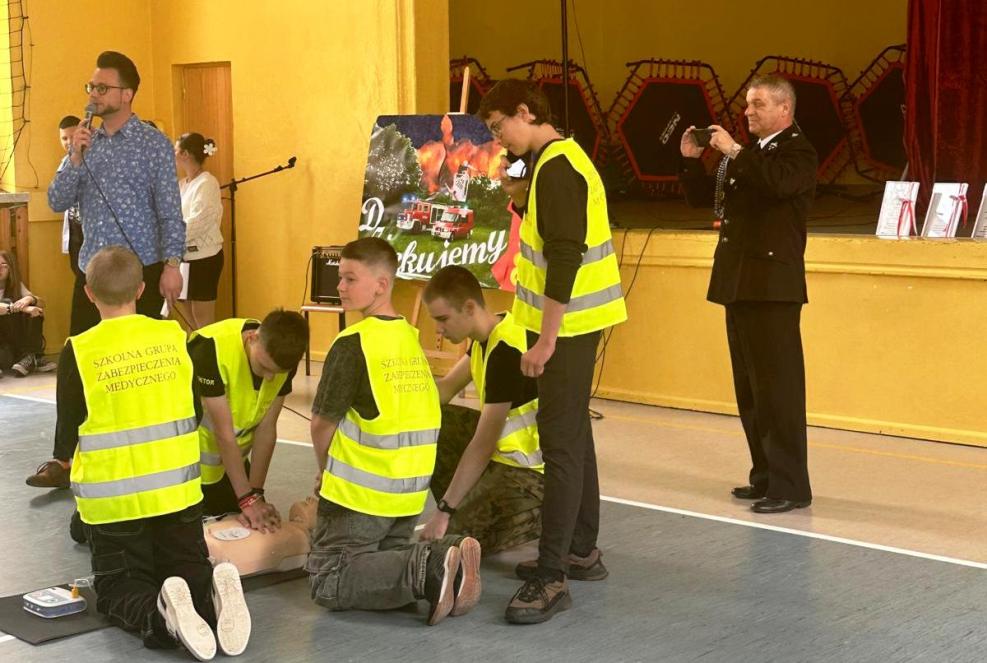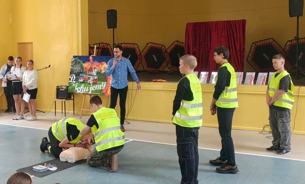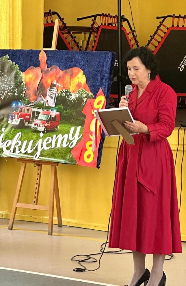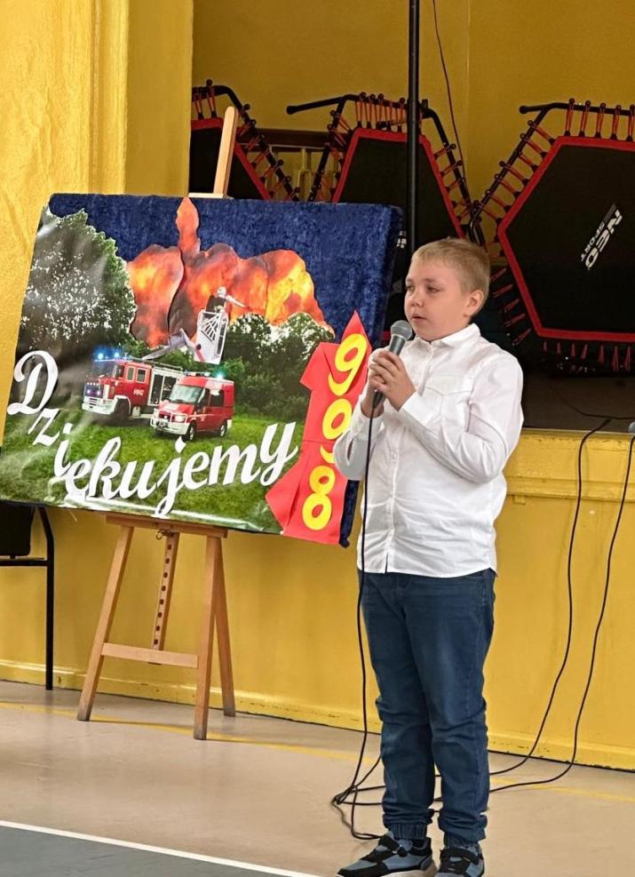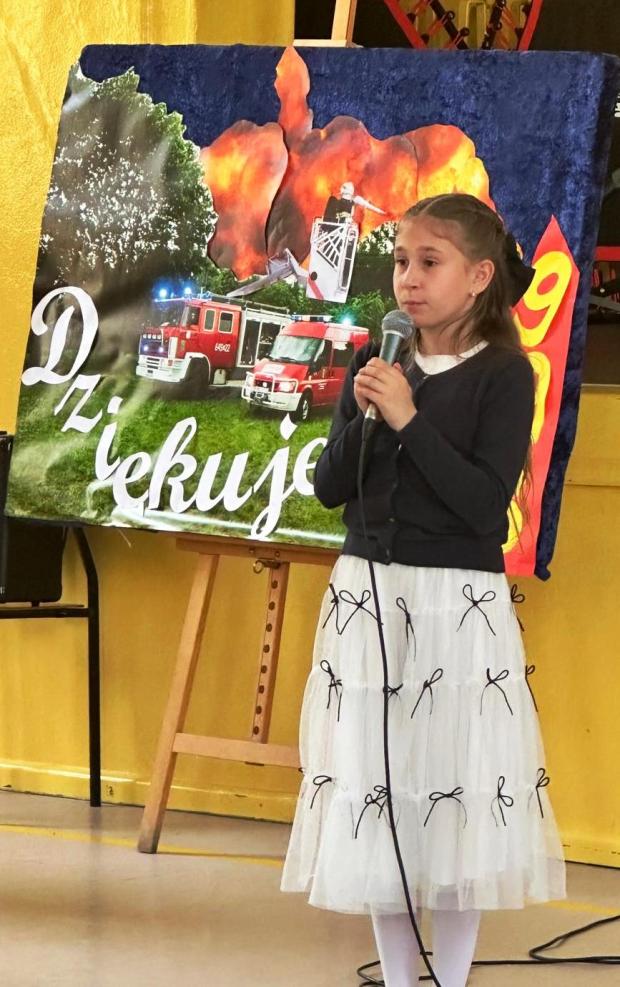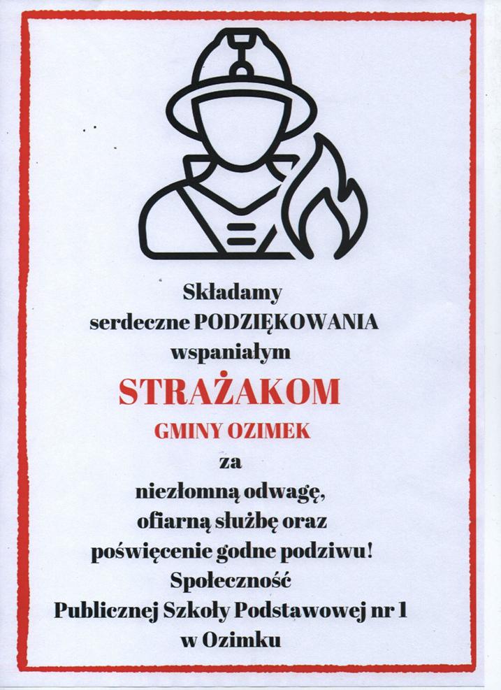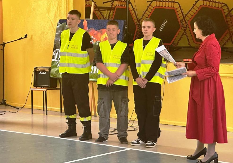 Bogu na chwałę, ludziom na ratunek - takie motto przyświeca strażakom w ich ofiarnej służbie. Służbie, która jest przecież nieoceniona i bardzo często niedoceniana. Społeczność Publicznej Szkoły Podstawowej nr 1 w Ozimku uhonorowała STRAŻAKÓW GMINY OZIMEK na uroczystej akademii w dniu 23 maja br. Naszą szkołę zaszczycili: Druha Marek Elis – Prezes Zarządu Miejsko-Gminnego Ochotniczych Straży Pożarnych , Prezes OSP SCHODNIA; Druh Andrzej Jakubiec - Komendant gminny Ochotniczych Straży Pożarnych, Prezes OSP SZCZEDRZYK, Druh Tomasz Chudala - wiceprezes Zarządu Miejsko-Gminnego OSP , Prezes OSP KRASIEJÓW; Druhna Katarzyna Szczemirska - Prezes OSP PUSTKÓW, Druh Robert Leś - Prezes OSP CHOBIE; Druh Manfered Mazur - Naczelnik OSP DYLAKI. Przedstawicielami Burmistrza Ozimka byli: Pan Zygmunt Olbryt - Przewodniczący Rady Miejskiej w Ozimku oraz płk. Zbigniew Koziarz - inspektor ds. wojskowości i Obrony Cywilnej w Ozimku. Uczniowie bardzo się postarali - pięknie recytowali, śpiewali i tańczyli oraz grali na gitarze. To wspólne działanie: Samorządu Uczniowskiego, Zespołu Wokalnego oraz Grupy Zabezpieczenia Medycznego, które prężnie działają w naszej JEDYNCE, miało na celu pokazanie jak ważna, potrzebna i ofiarna jest służba strażaka. Nasi recytatorzy: Julia Makuch, Lila Mieszczak. Agatka Tasarz, Dominika Musiał i Mateusz Bytomski w prezentowanych wierszach ukazywali trud i bohaterstwo strażaków- "Strażak jest jak anioł, choć skrzydeł nie posiada, ale nim się staje, gdy hełm zakłada". Grupa Wokalna w składzie: Nikola Widziszowska, Maja Jakubiec, Joasia Nalepa Joasia Halupczok, Laura Walerowicz, Milenka Toniak, Julka Morawa i Tosia Pytel - wspaniale zaśpiewała przygotowane pod kierunkiem Pana Adriana Białka, piosenki. Malutkie tancerki i tancerz z klasy 3b: Julka Jamna, Lenka Makulska, Zuzia Kubik, Hania Wilczek, Victoria Kupczyk, Milenka Kozielska, Tosia Pytel, Ela Ratuchna, Milenka Kalinkina i Dominik Kołek - z ogromnym przejęciem zatańczyli energetyczny taniec. Był też pokaz udzielania pierwszej pomocy przedmedycznej, który przeprowadziła Szkolna Grupa Zabezpieczenia Medycznego w składzie : Wiktor Jakubiec, Michał Bytomski, Jakub Pilip, Anton Koliandra i Mateusz Gryc. Na bieżąco działania młodych ratowników komentował opiekun grupy, nauczyciel, Pan Adrian Białek. Odbył się też krótki konkurs z wiedzy pożarniczej, w którym chłopcy: Wiktor Jakubiec, Jakub Pilip i Michał Bytomski- wykazali się dużą wiedzą, odpowiadając bezbłędnie na wszystkie pytania. Tutaj nasi goście honorowi - strażacy- byli ekspertami. Strażakom: Markowi Elisowi, Andrzejowi Jakubcowi i Katarzynie Szczemirskiej oraz przedstawicielowi Gminy Ozimek, przewodniczącemu RM Zygmuntowi Olbrytowi nasza uroczystość się podobała, co wyrazili w swoich wystąpieniach. Na zakończenie, oprócz pamiątkowego zdjęcia i podziękowań dla wszystkich osób, które przyczyniły się do zorganizowania tej uroczystości, wystąpili wokaliści: Zosia Oleś, Milenka Dobrowolska i Paulinka Płachta, a wspaniale grał na gitarze i śpiewał Kirył Naumenko. "Nic dwa razy sie nie zdarza... " - mamy nadzieję, że takie uhonorowanie strażackiej służby, ofiarności i poświęcenia będą strażacy doświadczali na co dzień. My podziękowaliśmy wspaniałym STRAŻAKOM GMINY OZIMEK wierszem, muzyką i tańcem, a także pamiątkowymi dyplomami za niezłomną odwagę, ofiarną służbę oraz poświęcenie godne podziwu - Bogu na chwałę, a ludziom na ratunek!