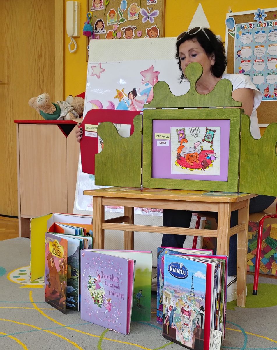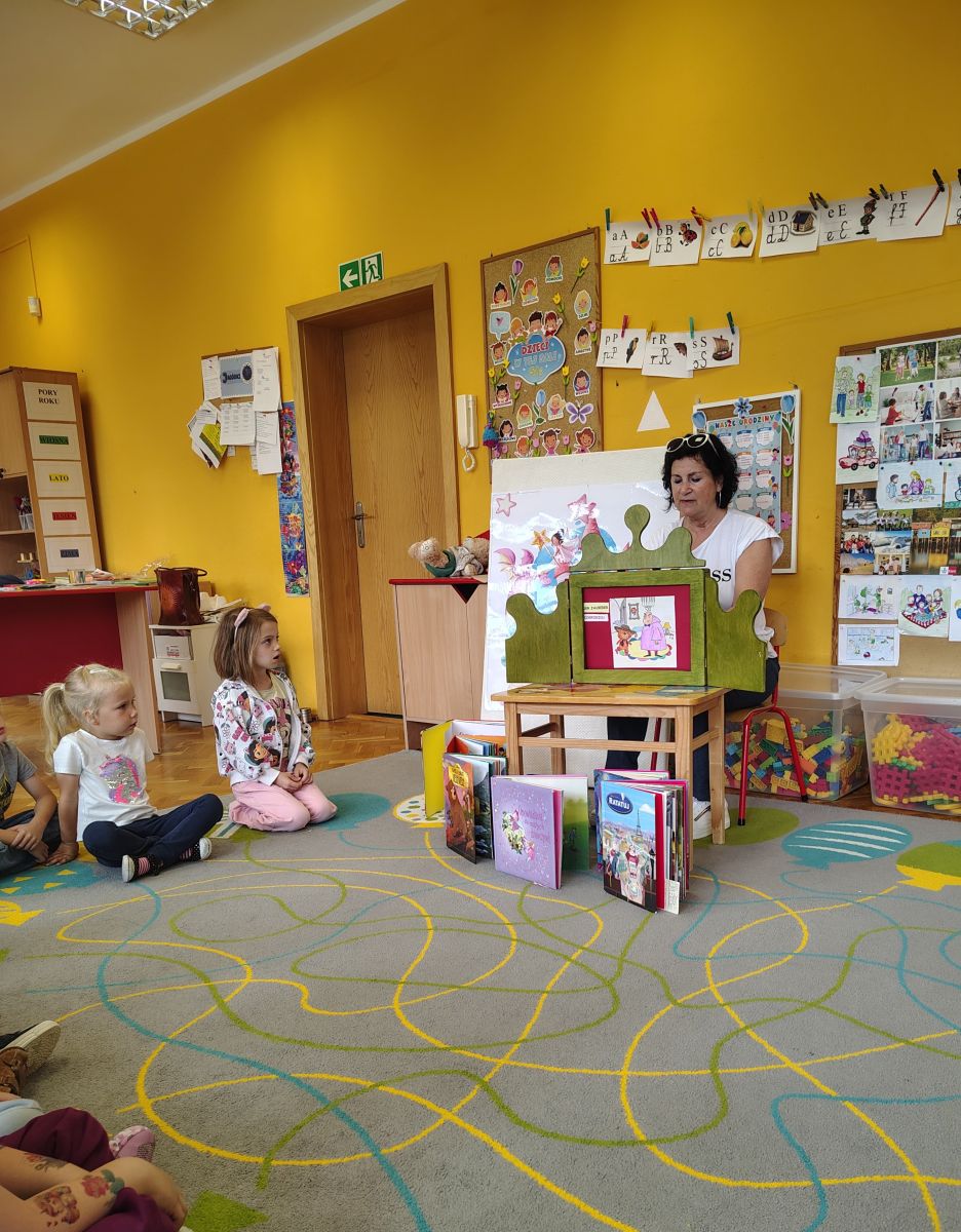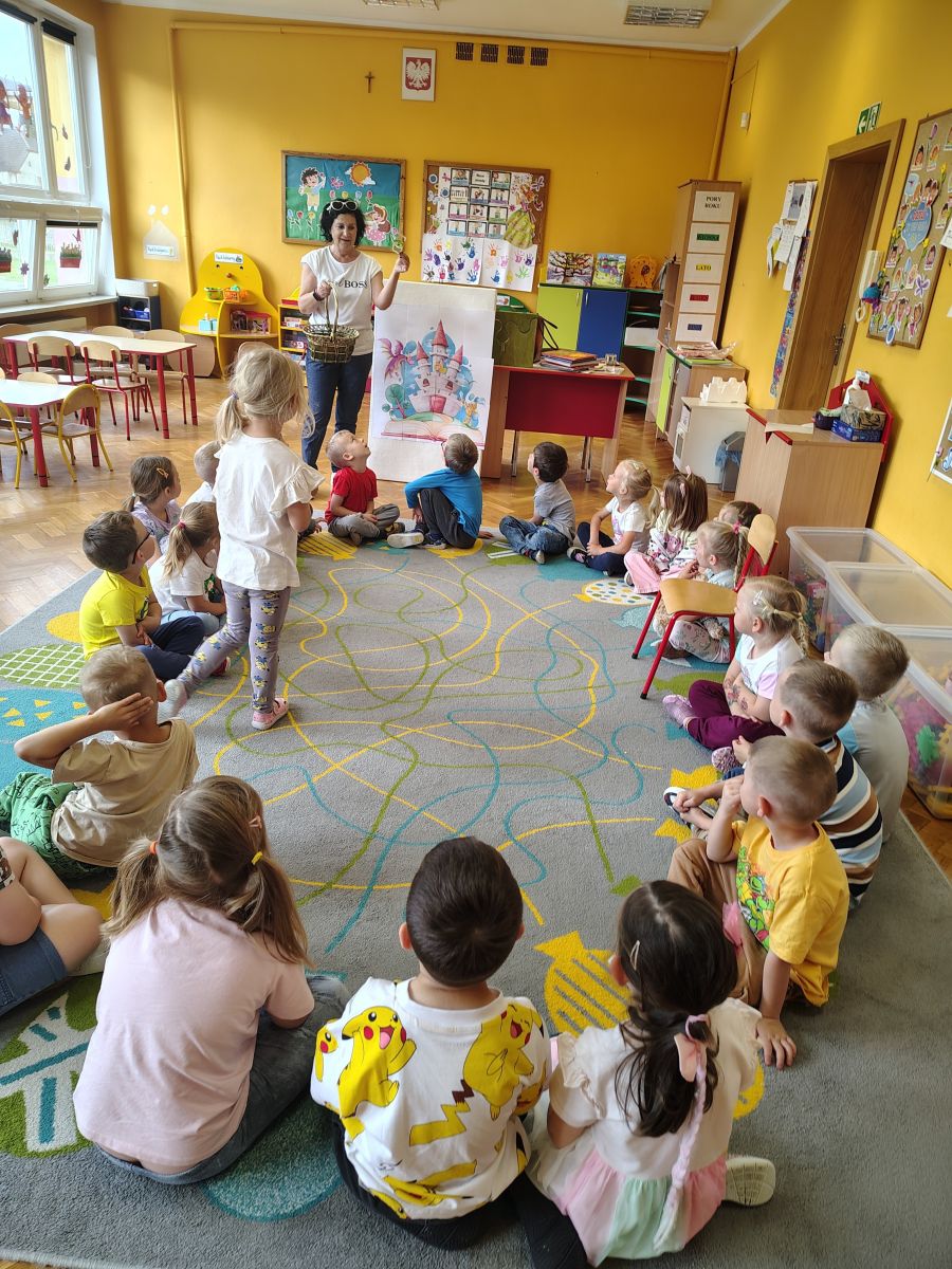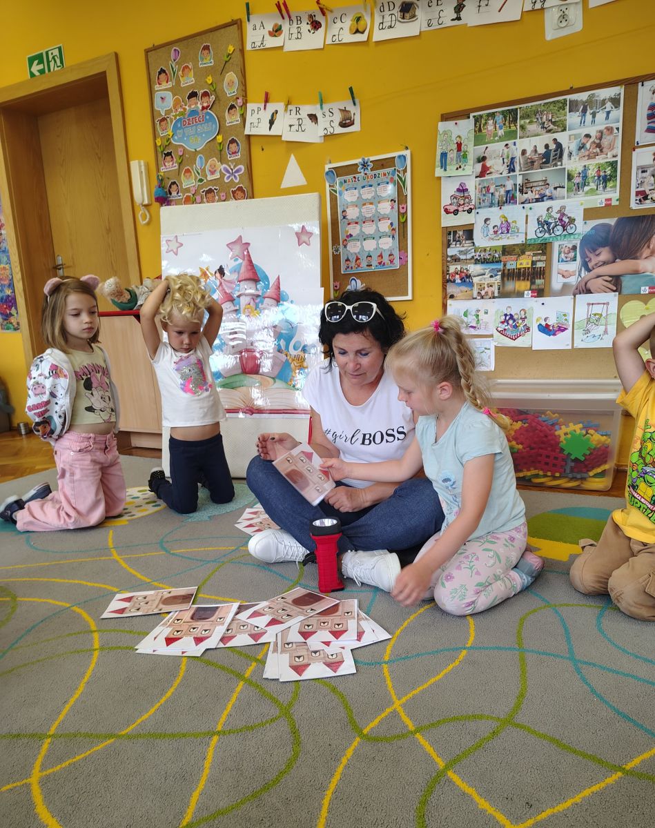22 maja grupę Jagódek z Przedszkola Publicznego Nr 1 w Ozimku odwiedziła pani bibliotekarka Grażyna Świercz z Publicznej Szkoły Podstawowej Nr 1 w Ozimku z teatrzykiem kamishibai pt. „Kot w butach”. Zaciekawione przedszkolaki z zapartym tchem śledziły losy bohaterów. ,,Jagódki” z radością rozwiązywały zagadki związane z ulubionymi bajkami oraz za pomocą latarki odkrywały to, co niewidoczne gołym okiem znajduje się w zamku, tworząc atmosferę tajemnicy i ekscytacji. Nie zabrakło również zabaw muzyczno – ruchowych oraz słodkiego poczęstunku. Radość naszych przedszkolaków była przeogromna. Serdecznie dziękujemy Pani Grażynie Świercz za przeprowadzenie ciekawych, bardzo wartościowych zajęć w grupie ,,Jagódek”. Dzięki kreatywnemu podejściu do przekazywania wiedzy, pasji dzieci miały możliwość rozwijać swoje umiejętności oraz wspaniale spędzić czas.