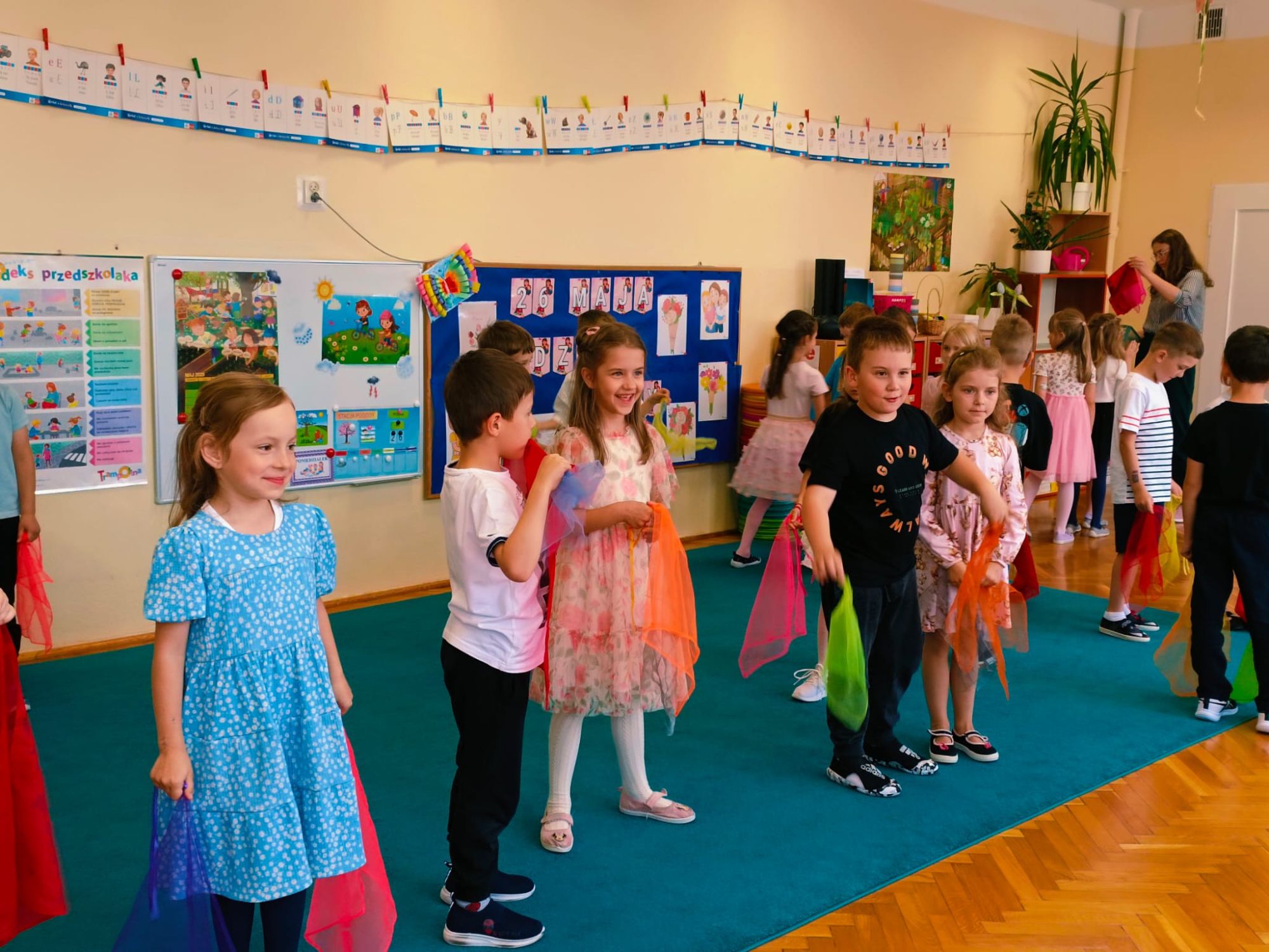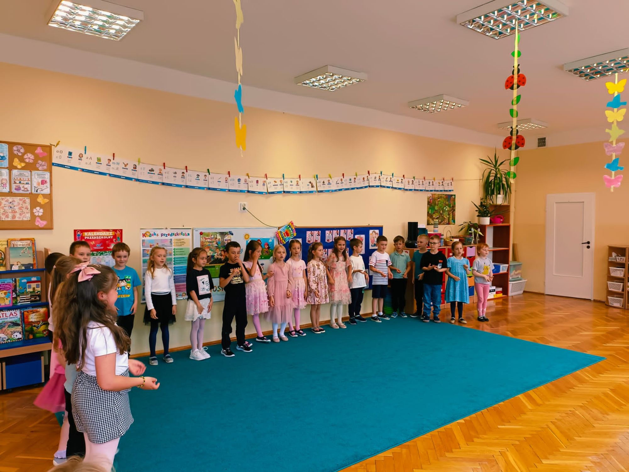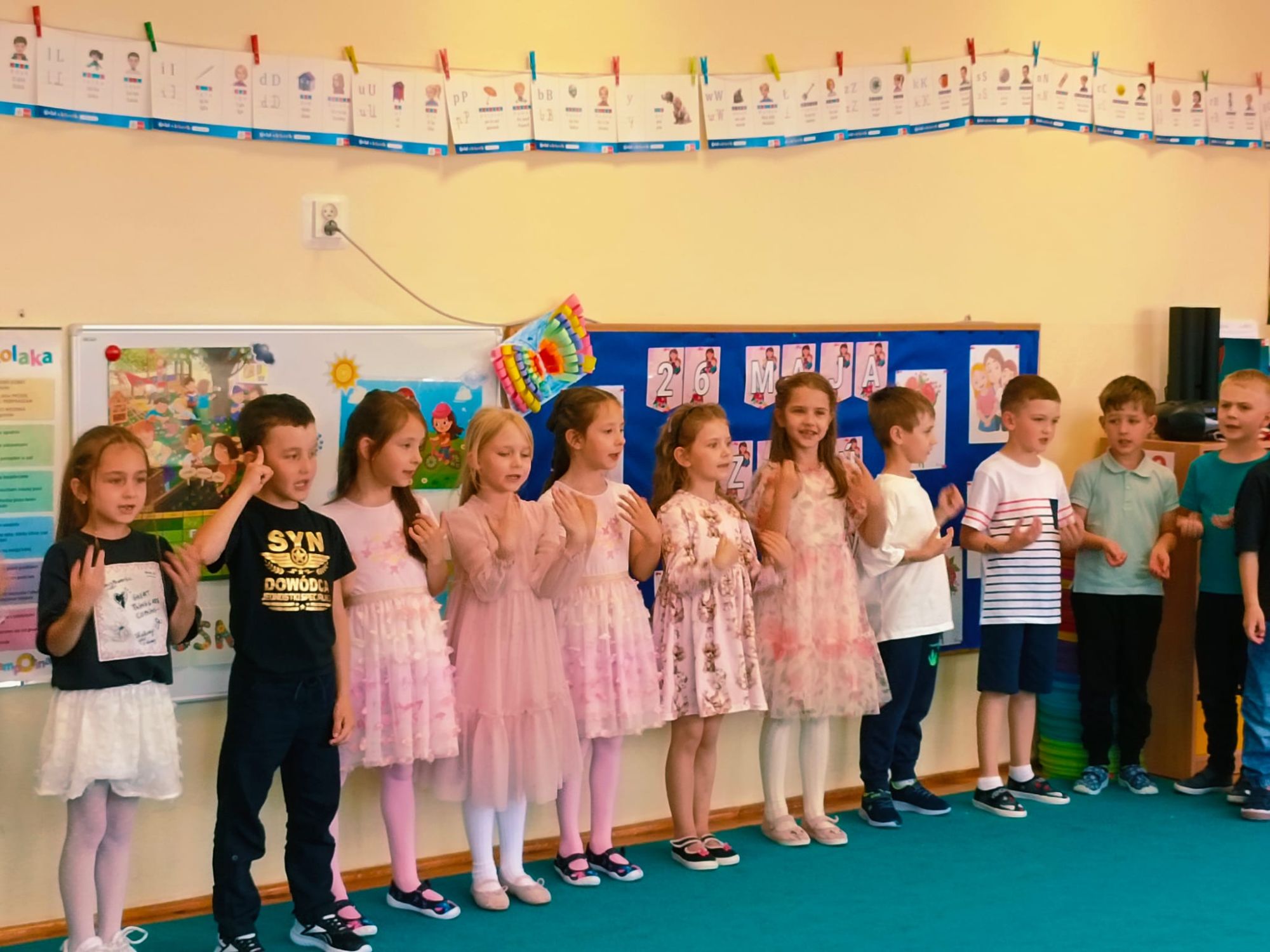 26 maja to data, którą zna każdy z nas. Dzień Mamy to jedno z najważniejszych świąt w ciągu roku, szczególnie obchodzone jest także w naszym przedszkolu. W poniedziałkowe popołudnie sala grupy Lisków w Przedszkolu Publicznych Nr 1 wypełniła się radością, szczęściem i miłością. Wychowawczyni grupy - Pani Justyna Buhl zaprosiła wszystkie mamusie na MUZYCZNE POPOŁUDNIE Z MAMĄ, czyli zajęcia otwarte. To już ostatnie tego typu spotkanie w najstarszej grupie przedszkolnej, która już od września rozpocznie naukę w pierwszej klasie szkoły podstawowej. Na dzieci i ich mamy czekały wesołe zabawy muzyczne, ruchowe i rytmiczne, które wywoływały radość i salwy śmiechu. Następnie mamusie rozsiadły się wygodnie, by zobaczyć występ swoich pociech, które pięknie tańczyły, grały na instrumentach oraz śpiewały piosenki, również w języku angielskim. Część artystyczna wywołała prawdziwe wzruszenie, zmuszając niejedną mamusię do otarcia łezki z oczu... Na zakończenie przedszkolaki wręczyły kochanym mamom własnoręcznie wykonane upominki. Było to piękne, choć deszczowe, popołudnie w naszym przedszkolu pełne szczęścia, uśmiechu i wzruszenia, które na długo pozostanie w sercach dzieci i ich mam.