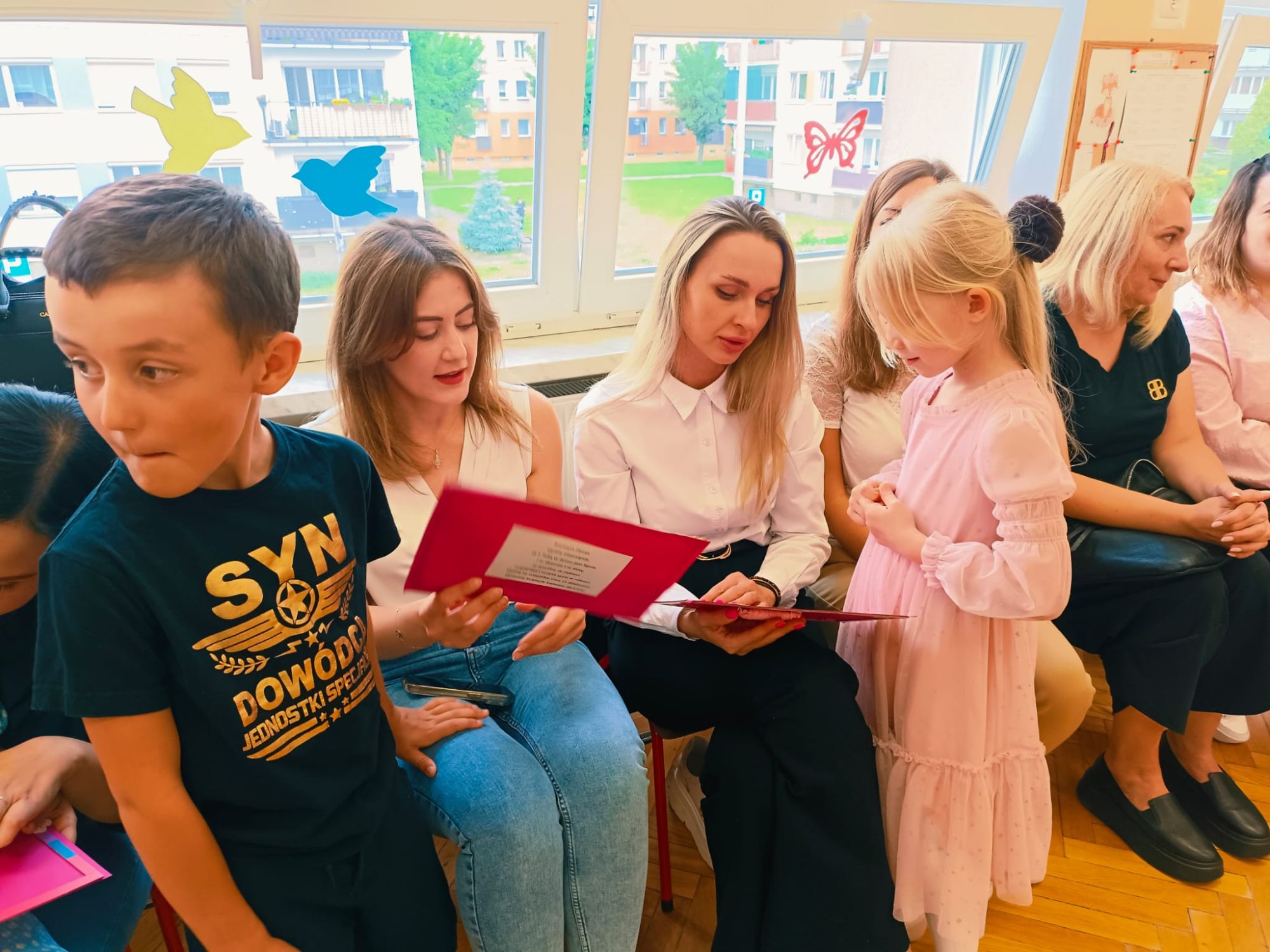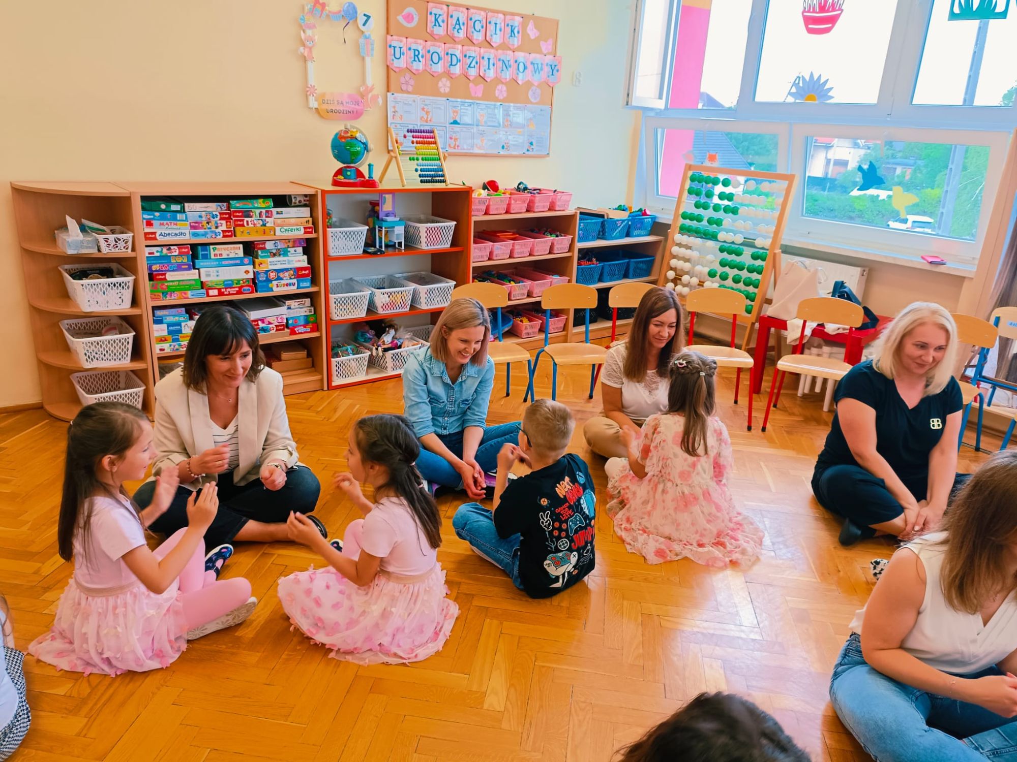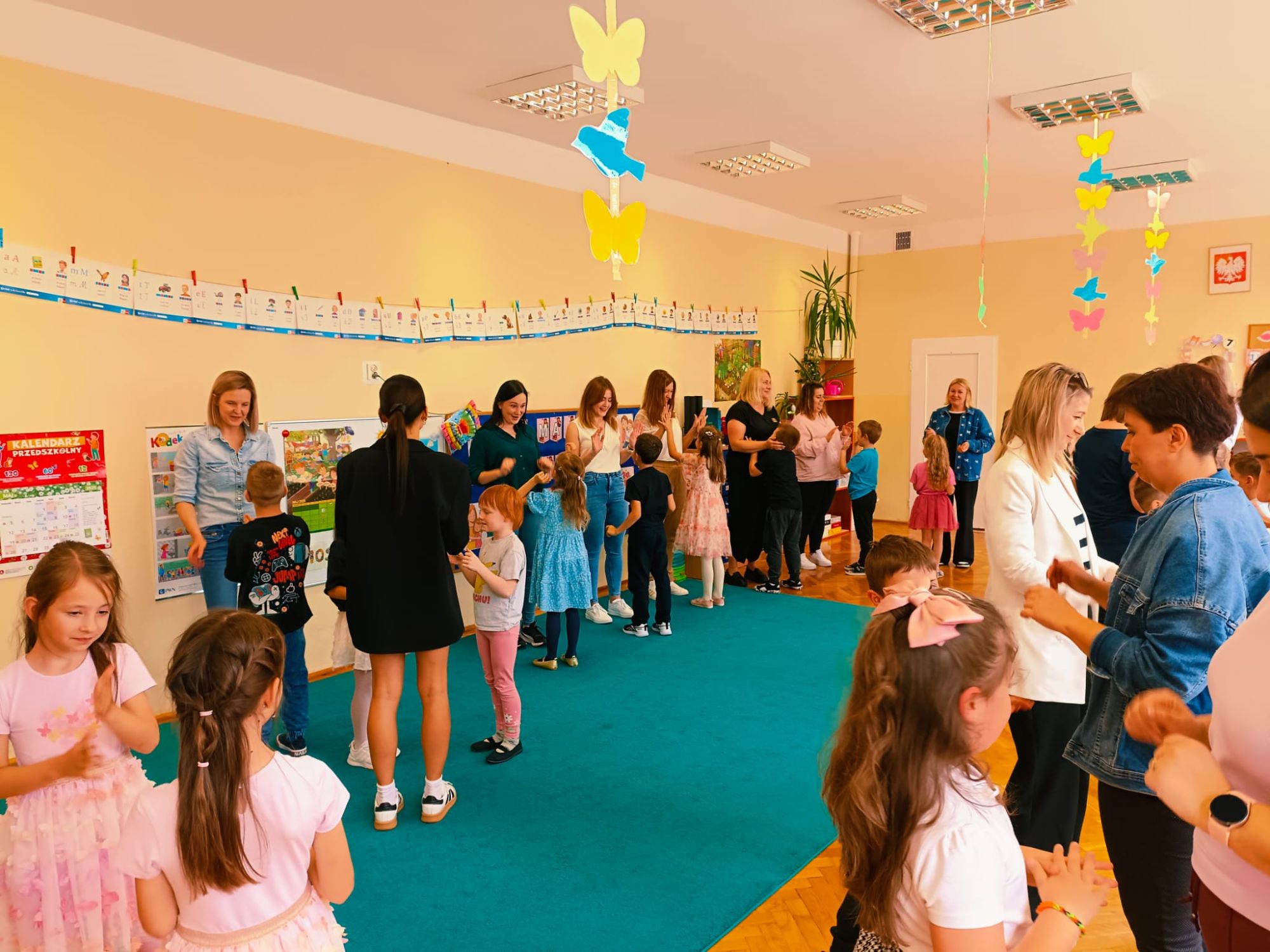 26 maja to data, którą zna każdy z nas. Dzień Mamy to jedno z najważniejszych świąt w ciągu roku, szczególnie obchodzone jest także w naszym przedszkolu. W poniedziałkowe popołudnie sala grupy Lisków w Przedszkolu Publicznych Nr 1 wypełniła się radością, szczęściem i miłością. Wychowawczyni grupy - Pani Justyna Buhl zaprosiła wszystkie mamusie na MUZYCZNE POPOŁUDNIE Z MAMĄ, czyli zajęcia otwarte. To już ostatnie tego typu spotkanie w najstarszej grupie przedszkolnej, która już od września rozpocznie naukę w pierwszej klasie szkoły podstawowej. Na dzieci i ich mamy czekały wesołe zabawy muzyczne, ruchowe i rytmiczne, które wywoływały radość i salwy śmiechu. Następnie mamusie rozsiadły się wygodnie, by zobaczyć występ swoich pociech, które pięknie tańczyły, grały na instrumentach oraz śpiewały piosenki, również w języku angielskim. Część artystyczna wywołała prawdziwe wzruszenie, zmuszając niejedną mamusię do otarcia łezki z oczu... Na zakończenie przedszkolaki wręczyły kochanym mamom własnoręcznie wykonane upominki. Było to piękne, choć deszczowe, popołudnie w naszym przedszkolu pełne szczęścia, uśmiechu i wzruszenia, które na długo pozostanie w sercach dzieci i ich mam.