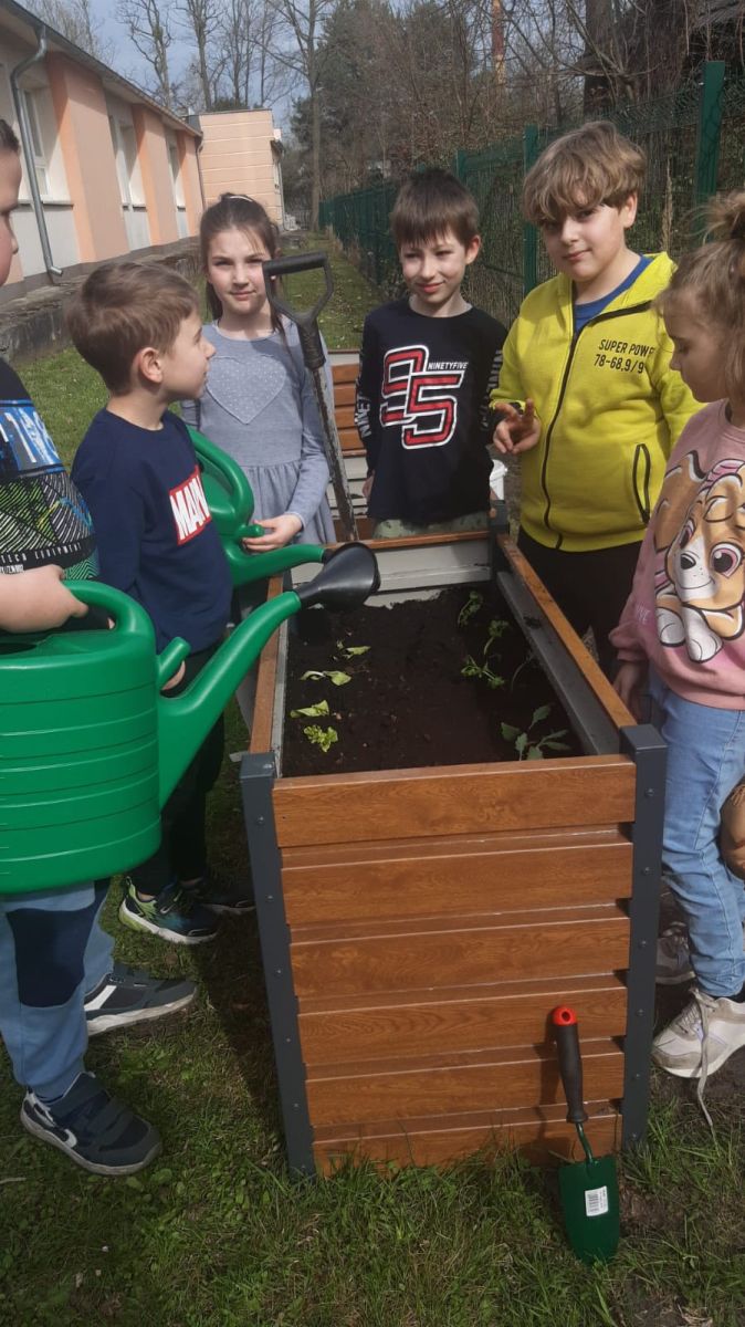 W ostatnich tygodniach uczniowie klasy drugiej wzięli udział w wyjątkowym projekcie ogrodniczym! Dzięki zaangażowaniu taty jednego z uczniów, który podzielił się swoją wiedzą i pasją, dzieci mogły samodzielnie posadzić rośliny, dowiedzieć się, jak o nie dbać, oraz jak stworzyć im jak najlepsze warunki do wzrostu. Z ogromnym zapałem sadzili, podlewali i planowali, co gdzie powinno rosnąć. Teraz z niecierpliwością obserwują, jak ich roślinki powoli się rozwijają — to dla nich nie tylko nauka, ale też ogromna radość i satysfakcja! Cieszymy się, że przy naszej szkole powstało miejsce, gdzie wspólnie dbamy o ogródek i uczymy się odpowiedzialności oraz troski o przyrodę.