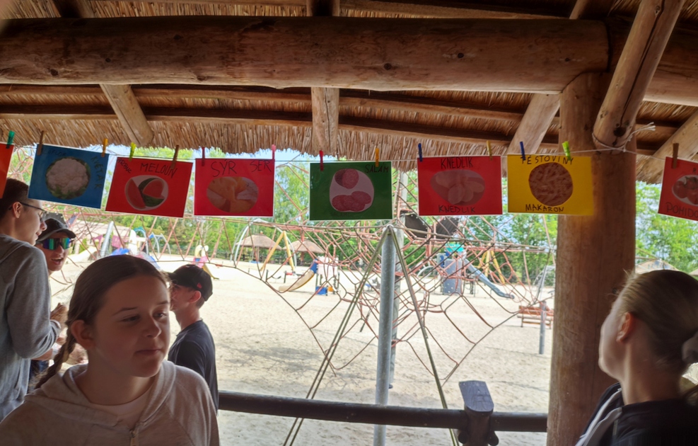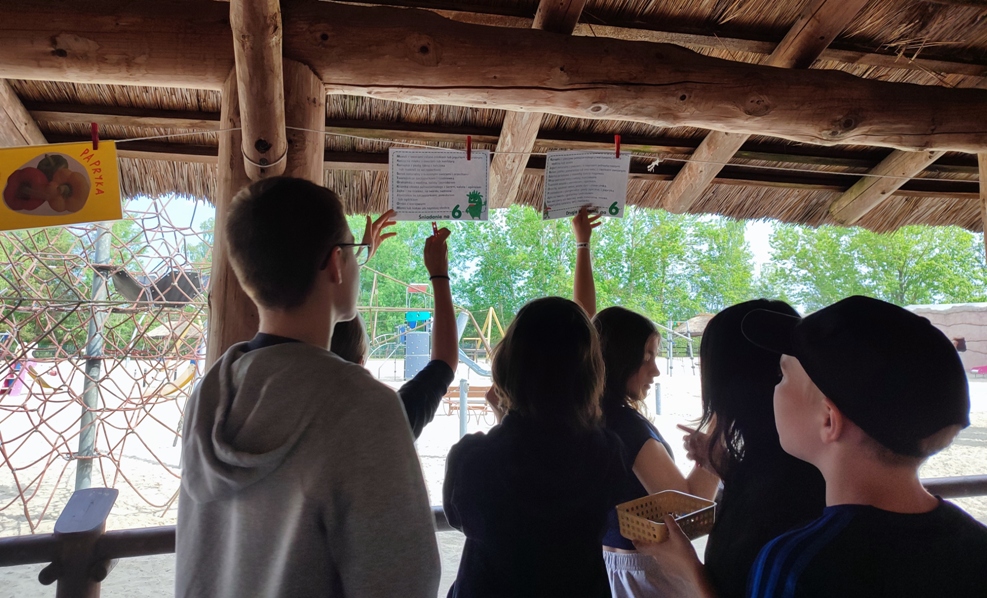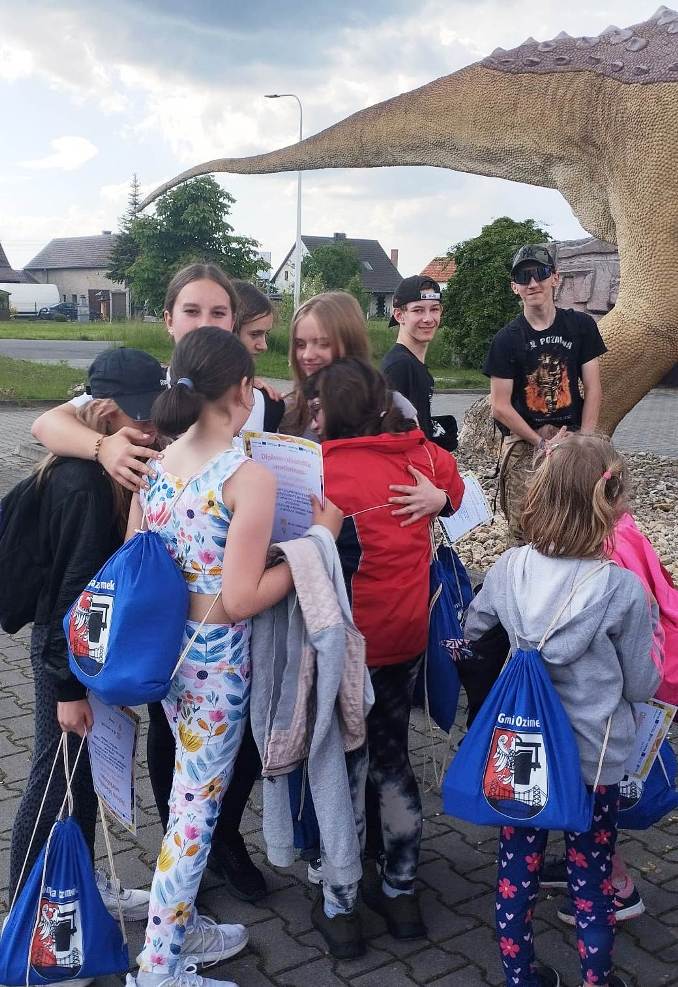 W ostatni dzień maja zakończyliśmy nasz wspólny, międzynarodowy, polsko-czeski projekt "Czy wiemy, co jemy, czyli zdrowo i aktywnie". Ten dzień spędziliśmy w JuraParku w Krasiejowie. Najpierw zrobiliśmy galerię naszych prac z poprzedniego dnia. Na sznurku, za pomocą klamerek zawiesiliśmy polsko-czeskie nazwy produktów żywnościowych, warzyw i owoców. Kalafior czy kvetak, ser czy syr, rogalik czy rohlik? Były także propozycje 5 posiłków na 6, zalecanych do spożycia w ciągu dnia, a także różnorodne przepisy przygotowane przez uczniów i nauczycieli - uczestników projektu. Wczasie warsztatów rozmawialiśmy na temat szkodliwości wszystkich polepszaczy żywności, barwnikow, emulgatorów, itp., które mogą być nawet rakotwórcze. W jednym z produków, na etykiecie, uczniowie naliczyci aż 11 niezdrowych "E". To pokazało, że trzeba zwracać szczególną uwagę na etykiety na produktach i je dokładnie czytać. Nasz happening rozpoczęliśmy w kolejce, która zabrała nas we wspaniałą podróż przez miliony lat. Tu już rozdaliśmy turystom pierwszy przepis na zdrowy posiłek, a potem na trasie całej ściezki edukacyjnej. Niektórzy podeszli do tego z rezerwą, lecz niektórzy turyści z dużym entuzjazmem. Na trasie, którą pokonaliśmy ze wspaniałym przewodnikiem - Panem Zbyszkiem, spotkaliśmy bardzo sympatyczną rodzinkę Czechów - Pana Robina z żoną Nikolą i uroczymi synkami. Państwo przyjęli od naszych dzieci aż kilka przepisów na zdrowe i pyszne posiłki. Miało być zdrowo i aktywnie - i było. Dalszą część dnia spędziliśmy na aktywności sportowej i zabawie - uczestnicy projektu grali na plaży w piłkę siatkową, relaksowali się i korzystali z różnorodnych aktrakcji JuraParku. Po drodze staraliśmy się znaleźć ukryte książki ze świetnego polskiego wydawnictwa Zielona Sowa, które w JuraParku zostawiło swoje publikacje - promując czytelnictwo i zachęcając do czytania dzieci i dorosłych. Niestety, przyszedł czas pożegnania, i chociaż czeskie dzieci nie chciały wyjeżdżać, musieliśmy zakończyć nasz projekt o zdrowiu i aktywności - zdrowym stylu życia. Już wiemy, co jemy!
