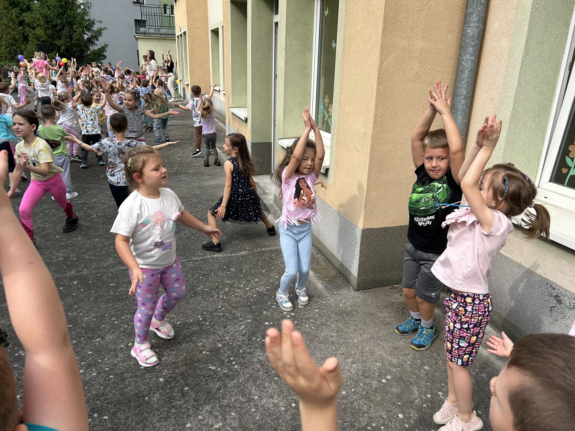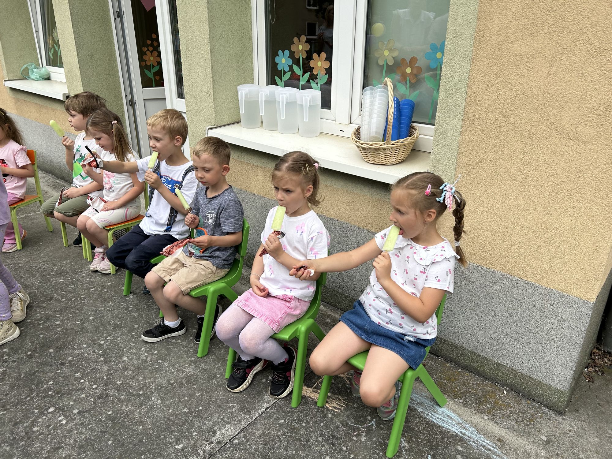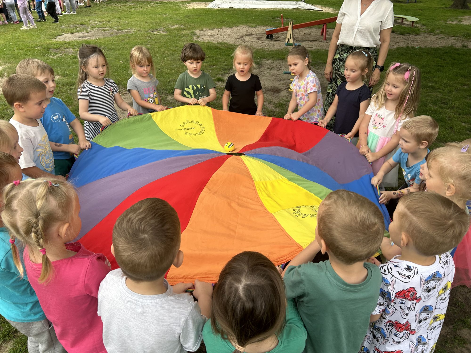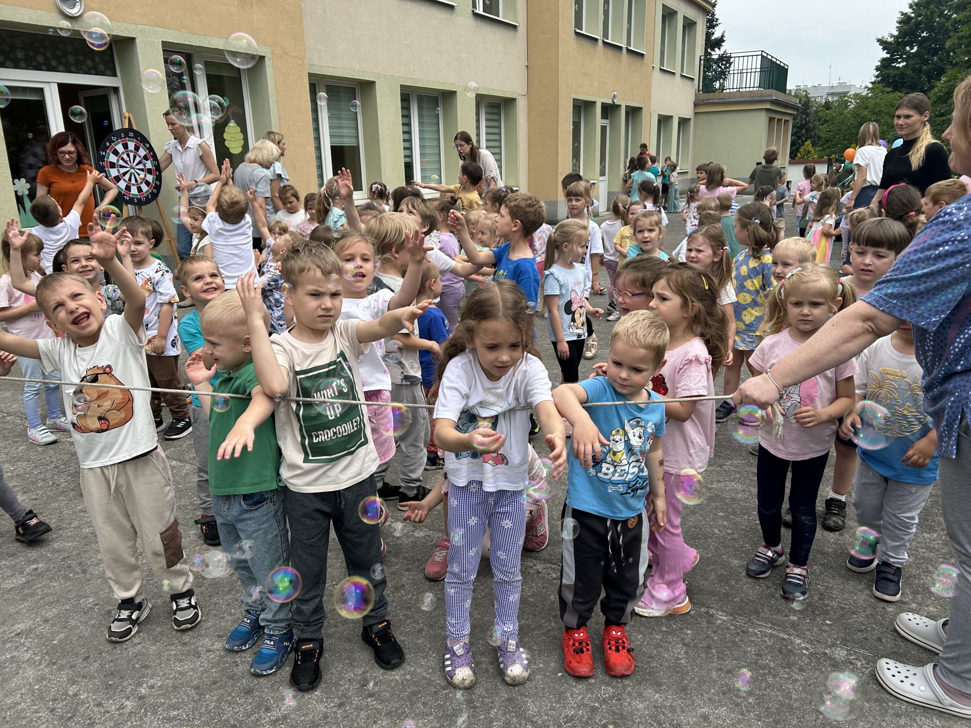 W Naszym przedszkolu tego dnia również nie zabrakło atrakcji. Były tańce, zabawy z chustą, konkurencje sportowe, upominki, pyszne lody i bańki. Mamy nadzieję, że ten dzień, który obfitował w mnóstwo pozytywnych wrażeń będzie mile wspominany przez dzieci.