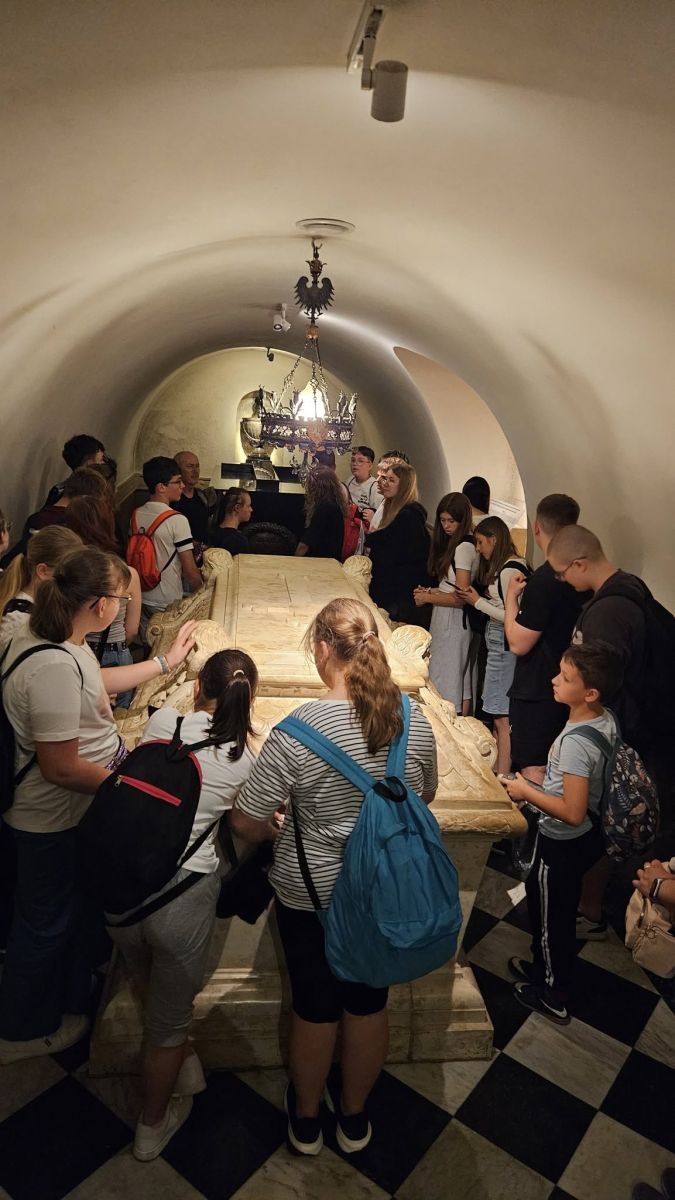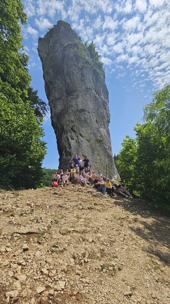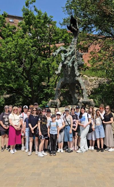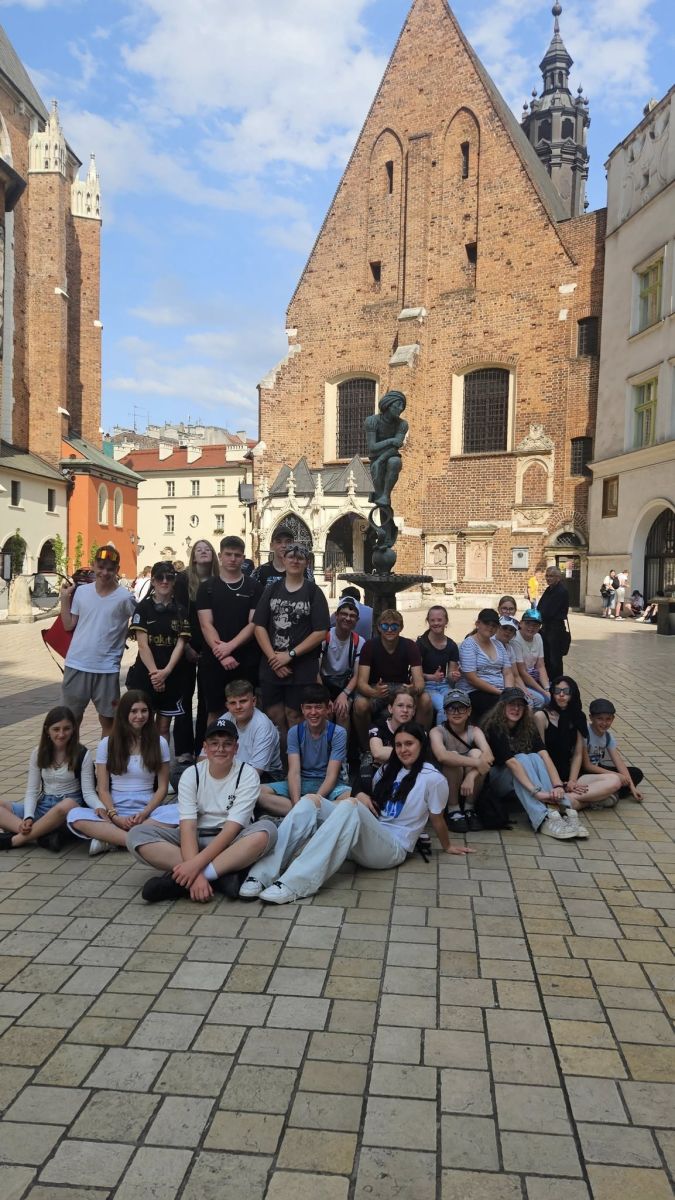 W dniach 5-6 czerwca uczniowie starszych klas pod opieką pani Dominiki Nowak oraz pani dyrektor Anny Gaszczyk wzięły udział w wycieczce szkolnej do Krakowa. W pierwszej kolejności zwiedzili Kopiec Kościuszki, a potem wyruszyli na Wawel. Ogromne wrażenie zrobily groby królewskie oraz Dzwon Zygmunta. Następnie przeszli przez Smoczą Jamę pod rzeźbę Smoka Wawelskiego, gdzie zrobili pamiątkowe zdjęcie. W dalszej części Drogą Królewską udali się na Rynek, gdzie podziwiali Sukiennice oraz Kościół Mariacki. Kolejnego dnia zwiedzali Muzeum Lotnictwa Polskiego w Krakowie, gdzie mogli zobaczyć różne samoloty, szybowce, śmigłowce, a także dowiedzieli się różnych ciekawostek o lotnictwie. Kolejnym punktem była Maczuga Herkulesa oraz Zamek w Pieskowej Skale. Ostatnim punktem wycieczki była Pustynia Błędowska – największy obszar lotnych piasków w Polsce, często nazywany „polską Saharą”. Choć nie jest to prawdziwa pustynia, jej widok naprawdę robi wrażenie. Wycieczka do Krakowa i okolic była doskonałym połączeniem historii, przyrody i geologicznych cudów natury. To była wyprawa, którą będziemy mile wspominać.