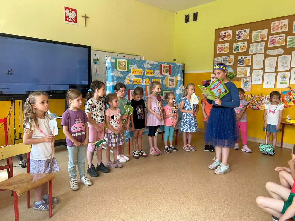 Dziś naszą szkołę odwiedziły przedszkolaki z Publicznego Przedszkola nr 4 w Ozimku pod opieką pani Ewy Helman. Z tej okazji zorganizowaliśmy dla nich wyjątkowe wydarzenie „Wesoły świat w poezji dla dzieci”.