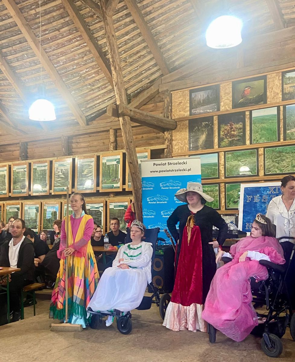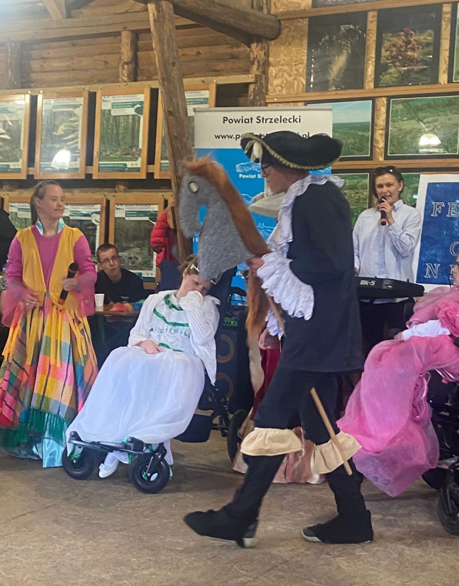 9 czerwca bieżącego roku nasi Uczniowie z niepełnosprawnościami wzięli udział w XIV Festiwalu "Pod gołym niebem" - Święcie Przyjaźni, Muzyki i Dobrych Serc zorganizowanym w Zespole Szkół Specjalnych w Zawadzkiem. Na scenie zdolni uczniowie zaprezentowali przedstawienie słowno - muzyczne pod tytułem "Kopciuszek", przygotowane przez panie Teresę Glensk i Annę Wierną. Organizatorzy zapewnili wszystkim wspaniałą zabawę, popcorn, watę cukrową, wypieki z zaprzyjaźnionej piekarni oraz kiełbaski. Za udział otrzymaliśmy sadzonkę drzewka, dyplomy oraz nagrody rzeczowe. To było niezwykłe wydarzenie, pełne emocji, uśmiechu i pozytywnej energii. Jesteśmy pod wielkim wrażeniem całej organizacji wydarzenia. Brawo dla wszystkich organizatorów oraz pana Dyrektora Artura Walkowiaka. Dziękujemy organizatorom za zaproszenie i mile spędzony czas. Dziękujemy serdecznie również pani Ewie Dorynek za wykonanie pięknych strojów dla naszych Uczniów, pani Zuzannie Szulc oraz mamom naszych uczniów - pani Kasi i pani Adriannie za pomoc w organizacji wyjazdu.
