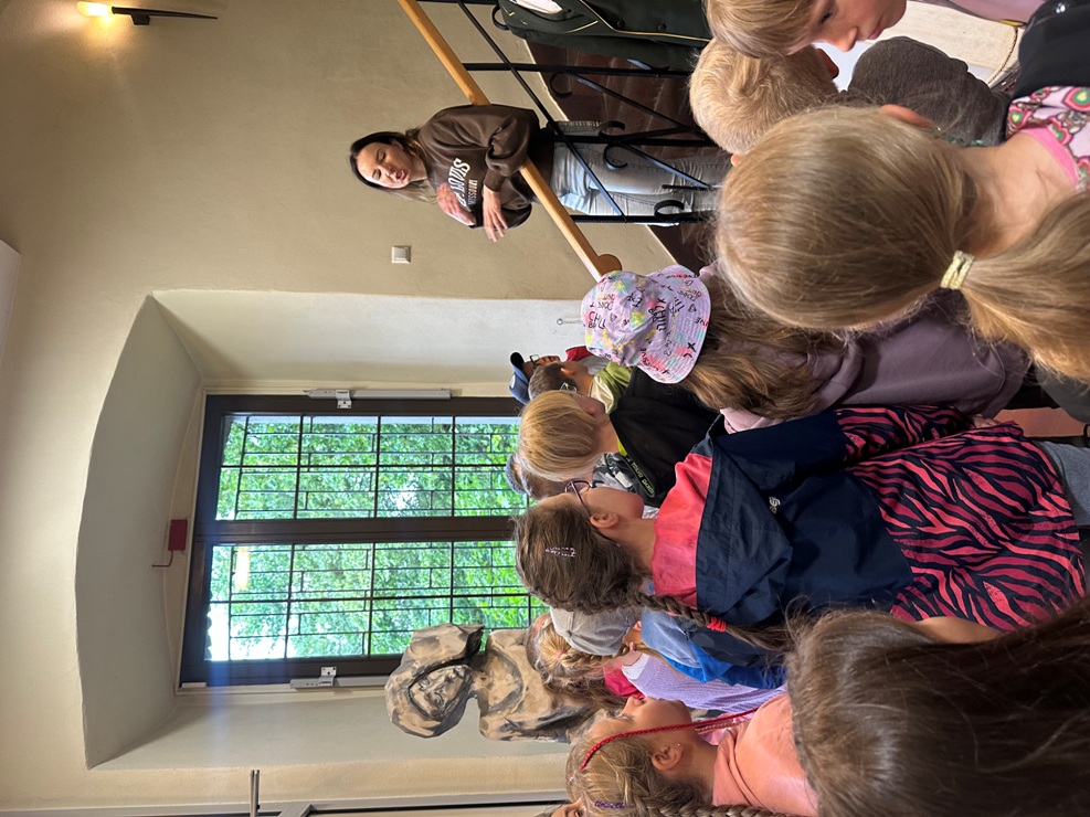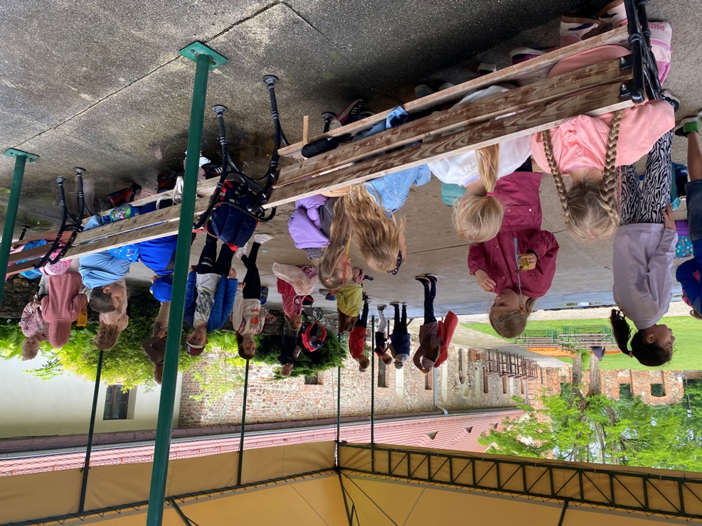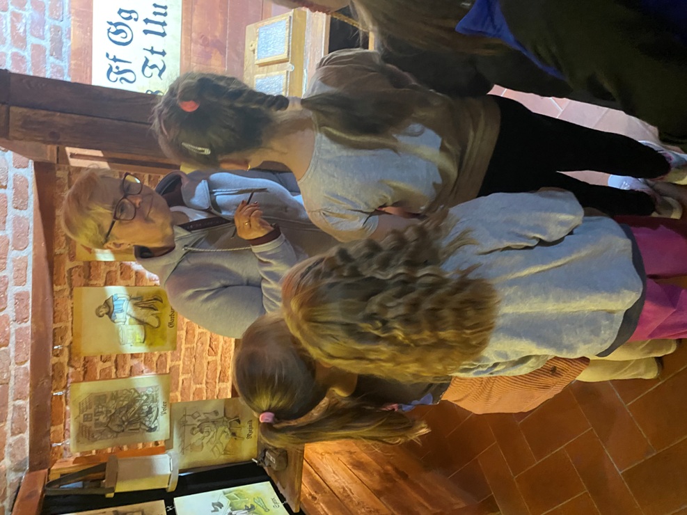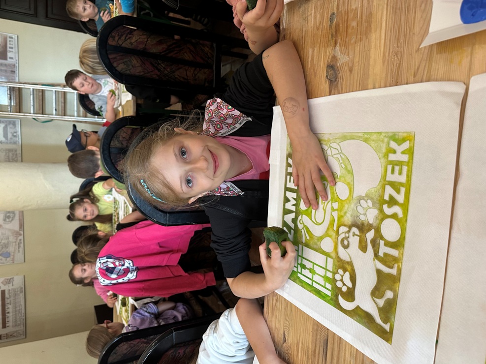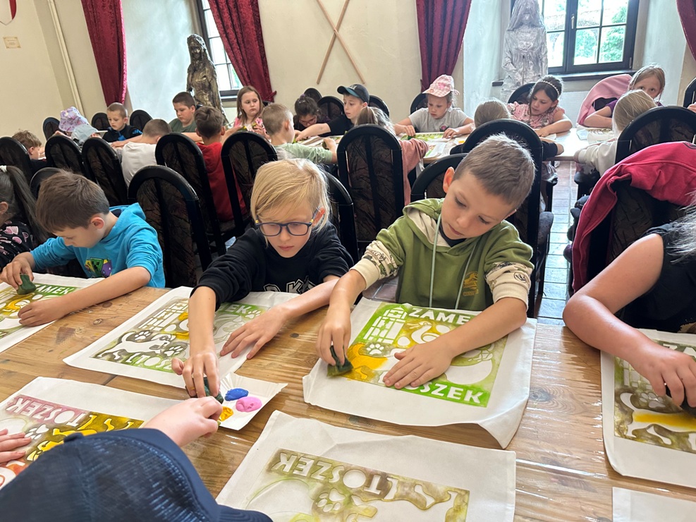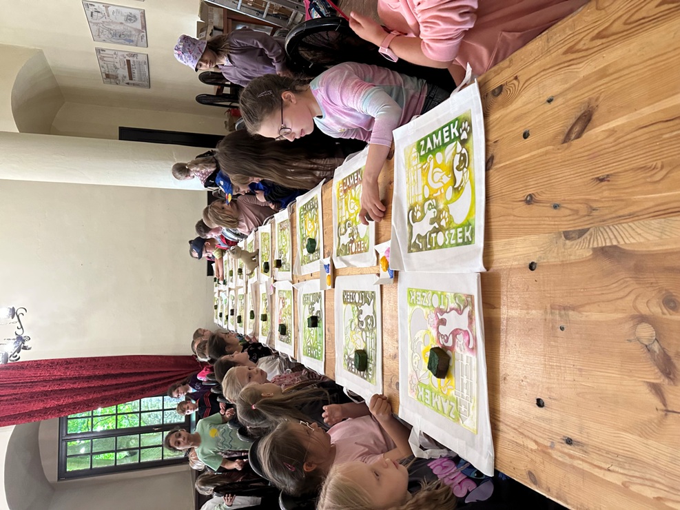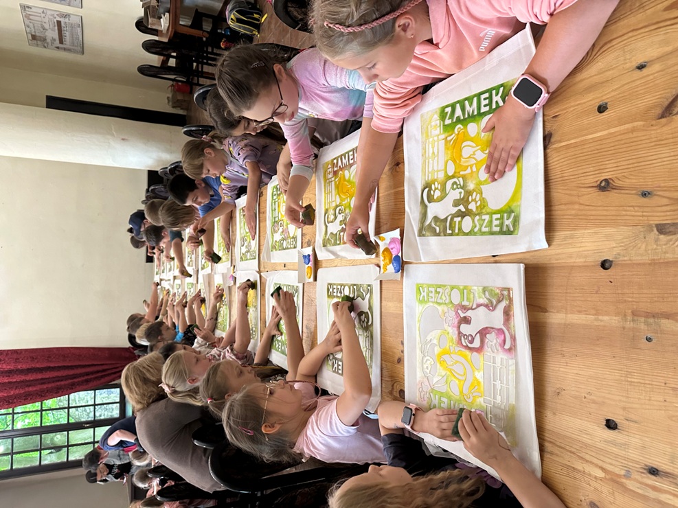 11 czerwca uczniowie klas Ia i IIa pojechali na wycieczkę do zamku w Toszku, gdzie od razu z przewodniczkami wyruszyliśmy na jego zwiedzanie. W podziemiach zamku duch mnicha zapoznał uczniów z dawnymi narzędziami pracy, odzieżą oraz zawodami wykonywanymi w okresie średniowiecza. Pobyt w ciemnych i zimnych podziemiach był dla dzieci dużym i ciekawym doświadczeniem. Następnie udaliśmy się zwiedzanie wieży, w której znajduje się makieta zamku oraz wystawy tematyczne. Oglądając wieżę i widok z niej poznaliśmy legendę o powstaniu miasta Toszek oraz sylwetkę wybitnego lekarza Ludwika Guttmanna, który w 1948 roku zorganizował pierwsze zawody dla niepełnosprawnych żołnierzy i w ten sposób stał się inicjatorem idei paraolimpijskiej. Kolejnym punktem programu było obejrzenie multimedialnego spektaklu pt. „Legenda o Złotej Kaczce”, w którym uczniowie poznali dzieje zamku i tragiczny los księżniczki Gizeli. Po przedstawieniu na sali ukazał się duch Białej Damy, który wywołał wśród dzieci poruszenie i strach. Następnie uczestniczyliśmy w warsztatach plastycznych, gdzie uczniowie ozdabiali lniane torby symbolami związanymi z zamkiem. Własnoręcznie wykonane torby będą miłym wspomnieniem chwil spędzonych w Toszku. Po przeżytych emocjach był także czas na wspólne zabawy na dziedzińcu zamkowym i szukanie złotej kaczki. Niektórzy słyszeli jej głos wydobywający się z głębokiej studni. Kto wie, może to tam ukryty jest skarb, o którym mówi legenda? To był dzień pełen wrażeń i emocji J