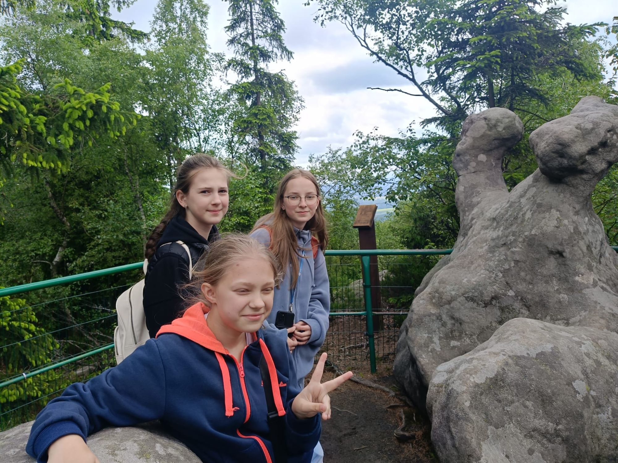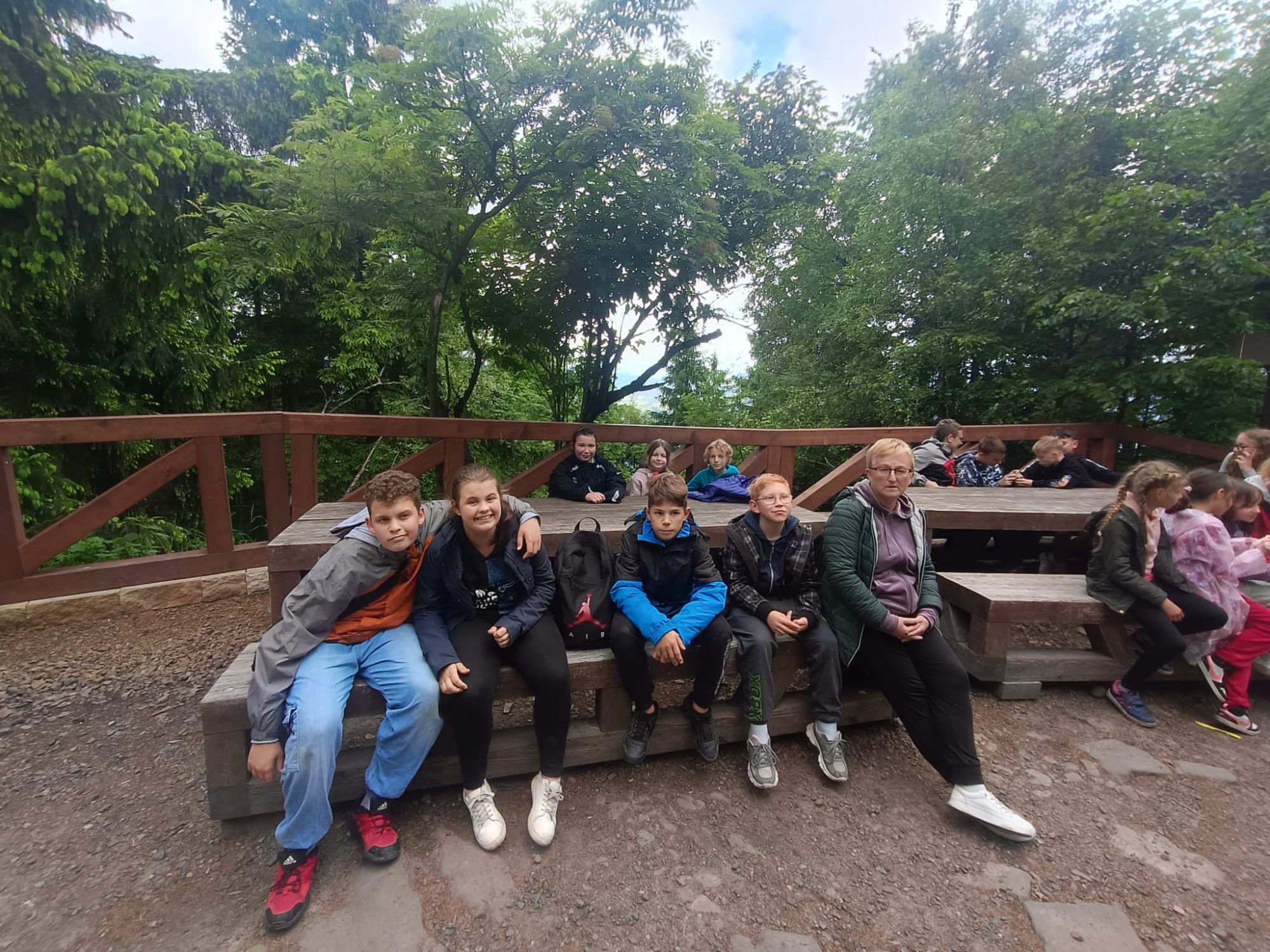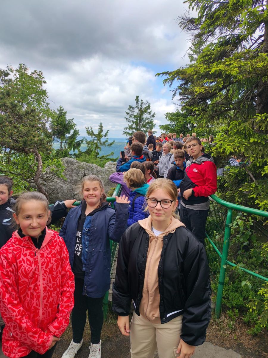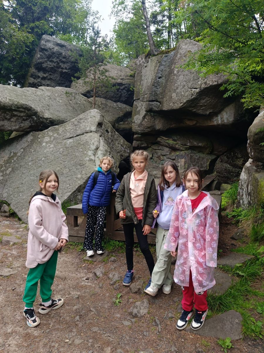 11 czerwca uczniowie klas V, VI i III, pod czujnym okiem swoich wychowawców, wyruszyli na pełną przygód wyprawę do Kotliny Kłodzkiej. Już od rana pogoda robiła nam psikusa - deszcz i ciemne chmury uparcie towarzyszyły nam aż do Złotego Stoku. Ale jak tylko wysiedliśmy z autokaru - niespodzianka! Przywitało nas słońce. Pierwszym punktem programu była niezwykła Kopalnia Złota. Zwiedzając jej tajemnicze korytarze, zobaczyliśmy jedyny w Polsce podziemny wodospad - robił wrażenie! Choć szukaliśmy złota z ogromnym zapałem, niestety nic nie znaleźliśmy. Może następnym razem! Potem przenieśliśmy się w czasie do osady rzemieślniczej. Tam wykorzystując siłę własnych mięśni (i całkiem sporo energii!) uruchamialiśmy różne dawne narzędzia. Można było poczuć się jak prawdziwy średniowieczny majster. Na deser - prawdziwa uczta dla zmysłów: spacer po Błędnych Skałkach. Niesamowite formacje skalne, wąskie przesmyki i fantastyczne widoki sprawiły, że czuliśmy się jak odkrywcy w zaczarowanym świecie. Wróciliśmy zmęczeni ale z szerokimi uśmiechami. To była fajna wycieczka i już nie możemy się doczekać następnej! Dziękujemy nauczycielom, którzy podczas wycieczki z pełnym zaangażowaniem objęli opieką uczniów i z zapałem zorganizowali całą wyprawę! Dziękujemy paniom: Tamarze Antczak, Justynie Lenartowicz oraz Joannie Niedźwiedź!
