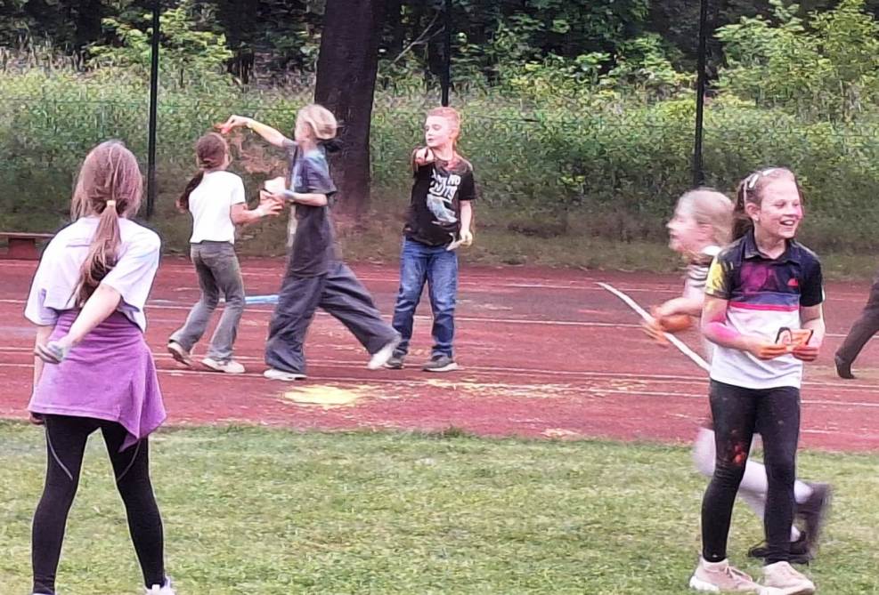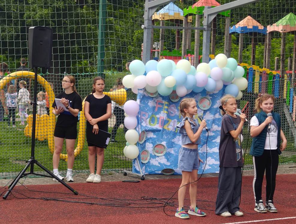 W dniu 10 czerwca br. odbył się w naszej szkole III FESTYN RODZINNY, na którym nie brakowało atrakcji. Rozpoczęliśmy od fantastycznych występów naszych uzdolnionych uczniów, którzy zaprezentowali się w tańcu, śpiewie oraz grze na różnych instrumentach. Wiele radości i zabawy dostarczył ogromny dmuchany tor przeszkód, a pokonanie go było świetną przygodą. Dzieci brały udział w konkurencjach sportowych, były zwinne i sprawne, a zabawa przy tym była wspaniała. Dzieciom zapleciono warkoczyki, pomalowano buźki, co spotkało się z zachwytem, także u dorosłych. Dzięki niezawodnym strażakom z OSP Schodnia można było poznać od środka wóz strażacki, a także poczuć się jak strażak, lejąc wodą do celu z prawdziwego strażackiego węża. Dużą atrakcją były skręcane balony oraz wspaniała zabawa farbami Holi, na które z niecierpliwością czekały dzieciaki. Każdy mógł skosztować znakomitego bigosu, kiełbasek z grilla oraz osłodzić sobie dzień przepysznymi domowymi ciastami, pieczonymi z sercem, a także świeżutkimi goframi. Nasz III Festyn Rodzinny był bardzo udany i radosny!