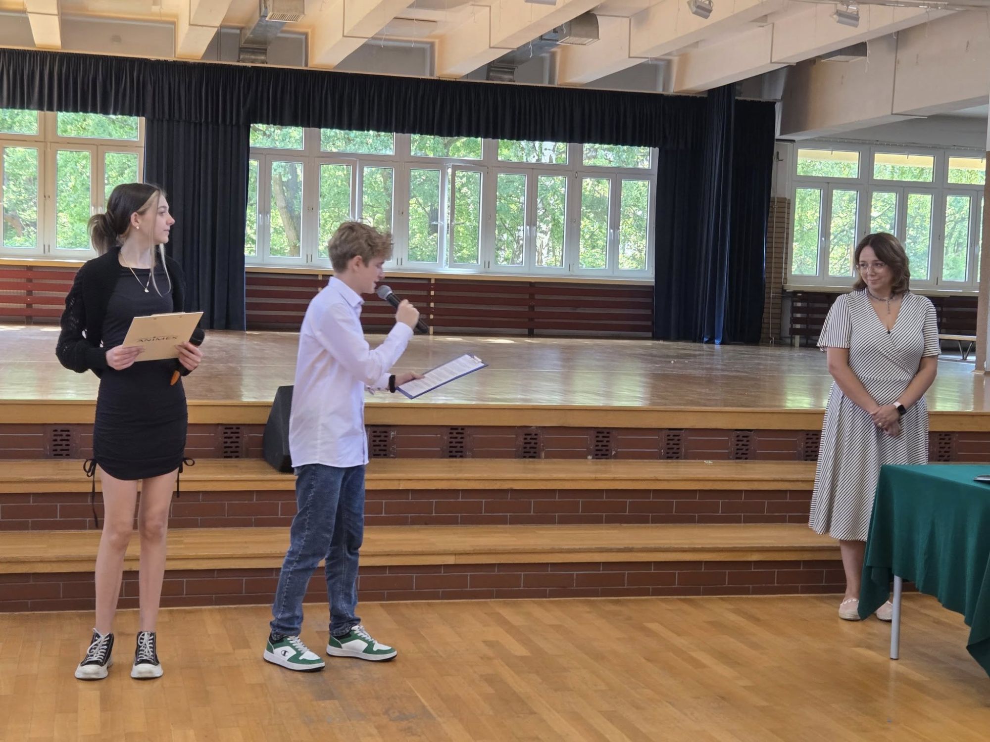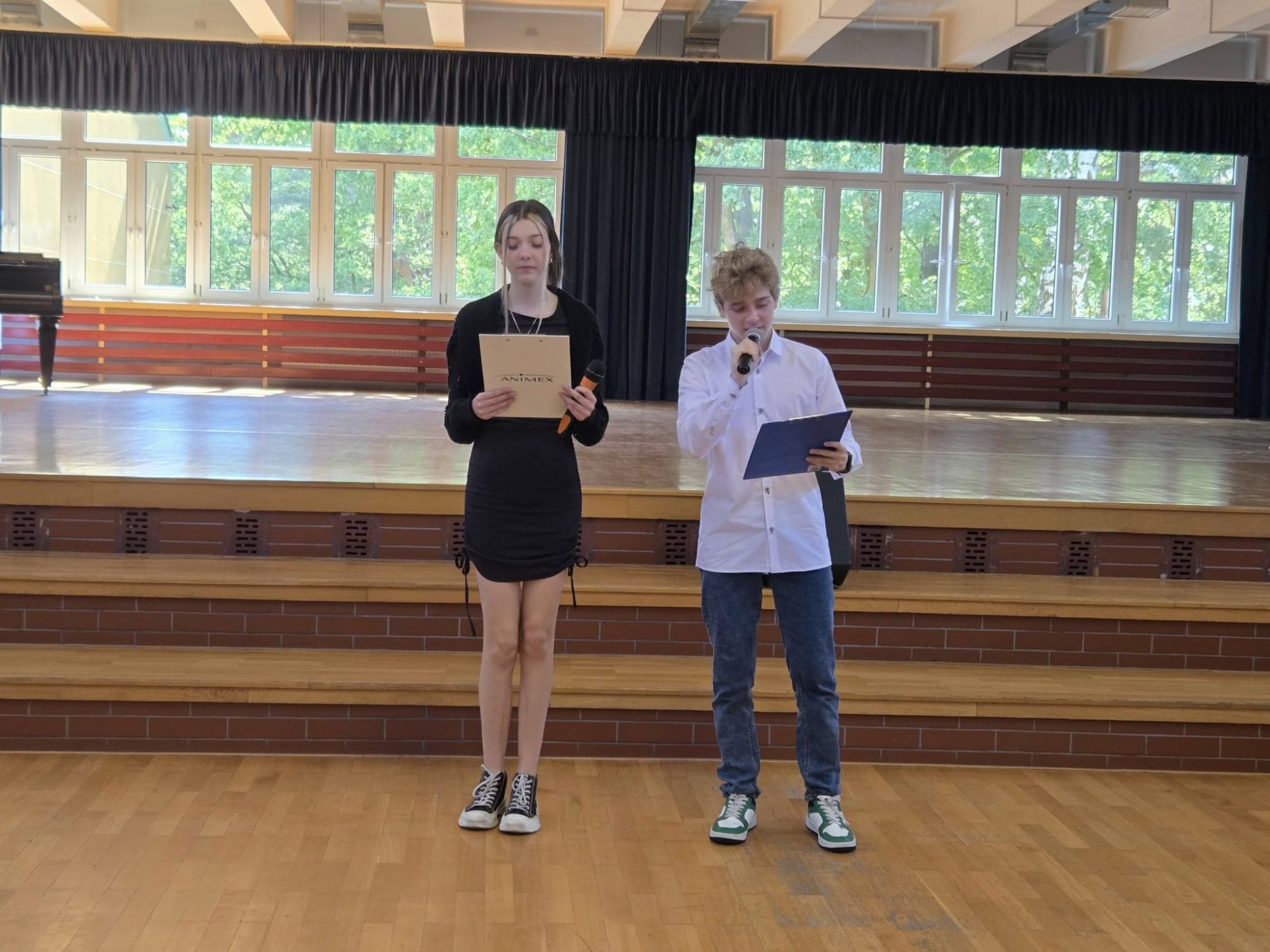 Dnia 18 czerwca odbył się uroczysty apel podsumowujący II półrocze w naszej szkole, który z wielkim zaangażowaniem poprowadziła Pani Monika Pilarek, wspierana przez uczennice z klasy 7b: Natalię Sudoł i Aleksandrę Polaczek.