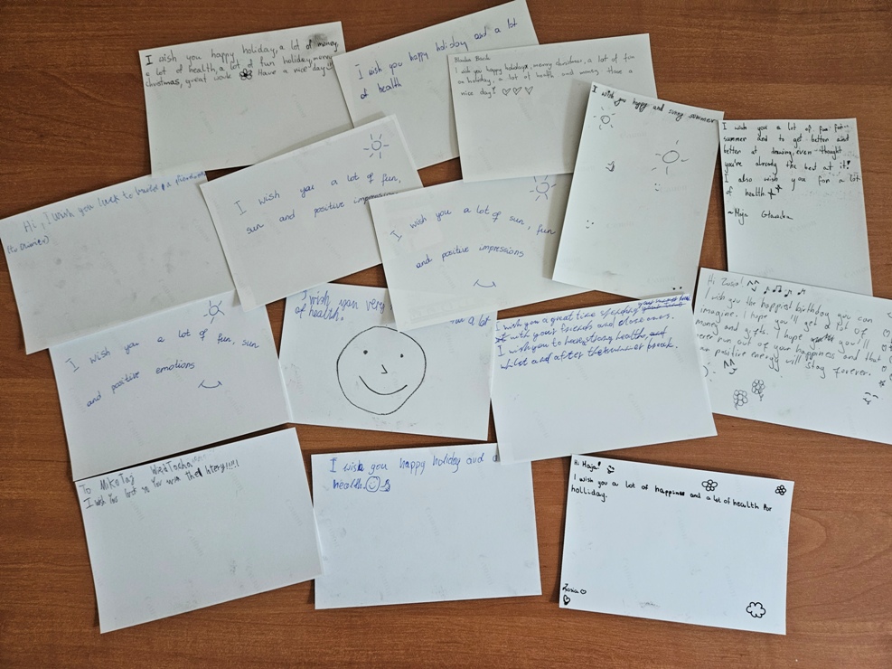 Uczniowie klasy 7A gr. A wykonali ostatnie zadanie w ramach innowacji z języka angielskiego " English around us ", przygotowując kartki wakacyjne dla siebie nawzajem i podpisując życzenia wakacyjne w języku angielskim. Tym bardzo miłym gestem żegnamy ten rok szkolny i przygotowujemy się do upragnionych wakacji. Have happy and sunny sommer holidays!