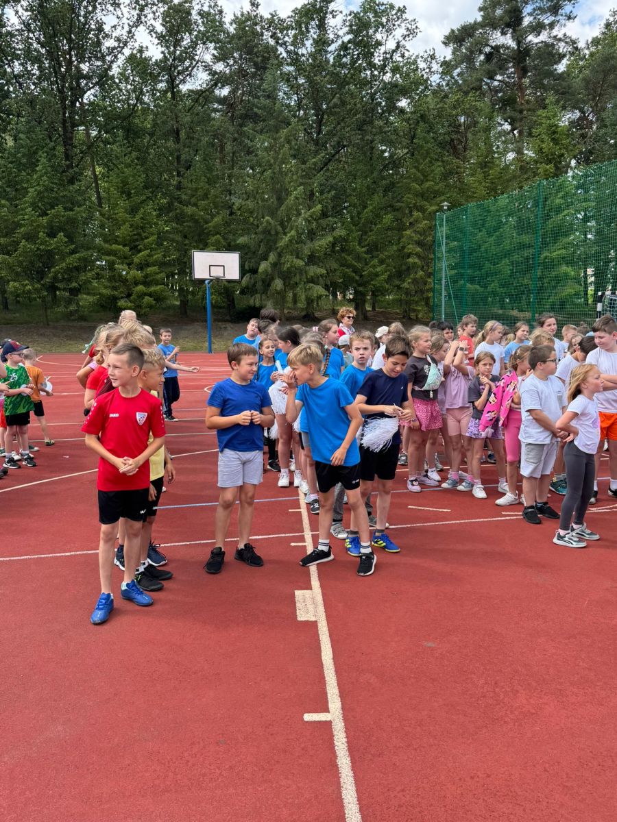 Ależ to był dzień pełen emocji, rywalizacji i radości! 24 czerwca na boisku szkolnym odbył się Dzień Sportu, w którym udział wzięli uczniowie klas I–III oraz dzielne przedszkolaki. Dzieci rywalizowały w dwóch konkurencjach: wyścigach rzędów (aż w pięciu etapach!) oraz rzucie piłeczką palantową.