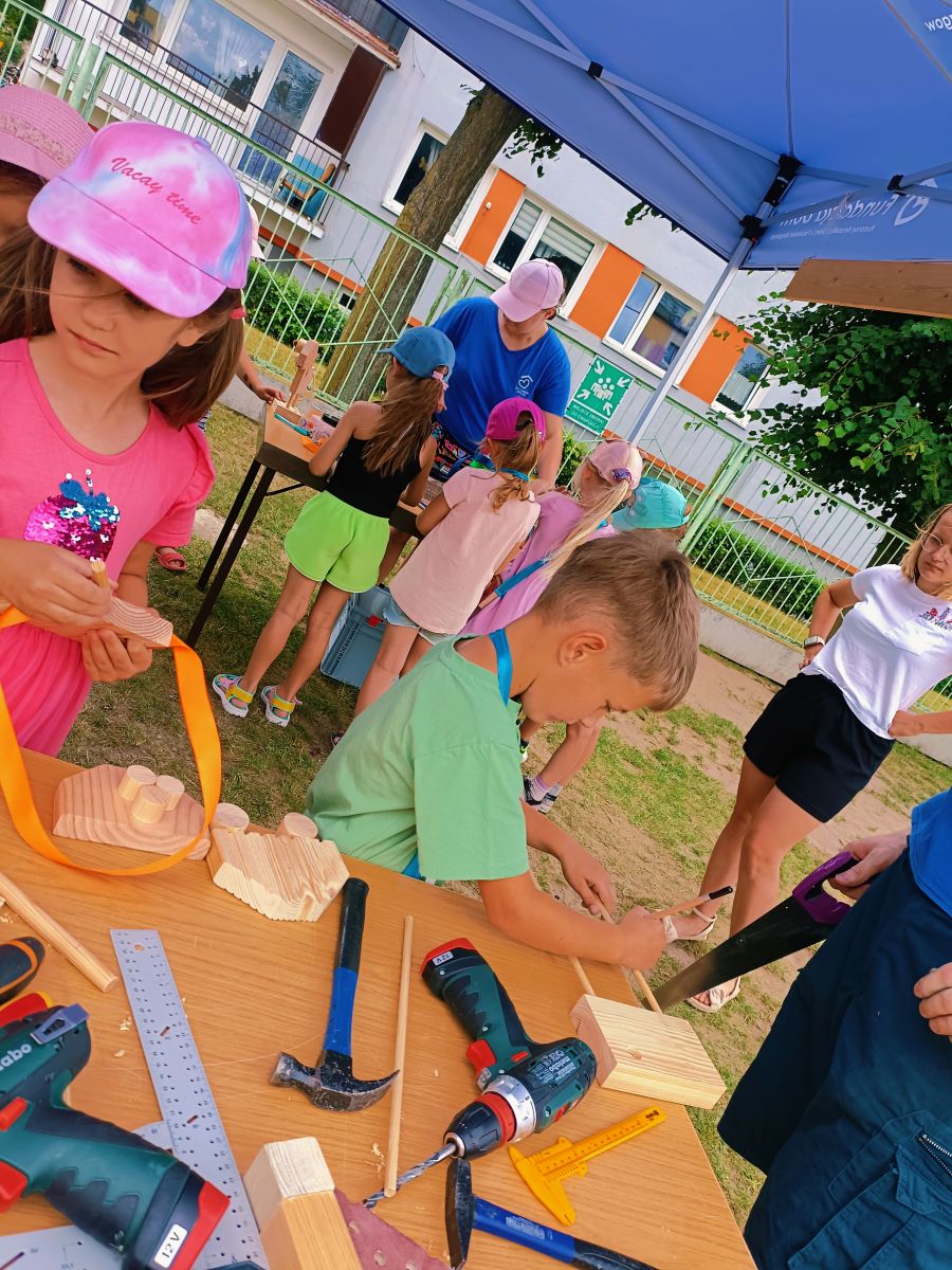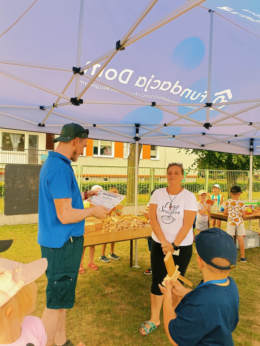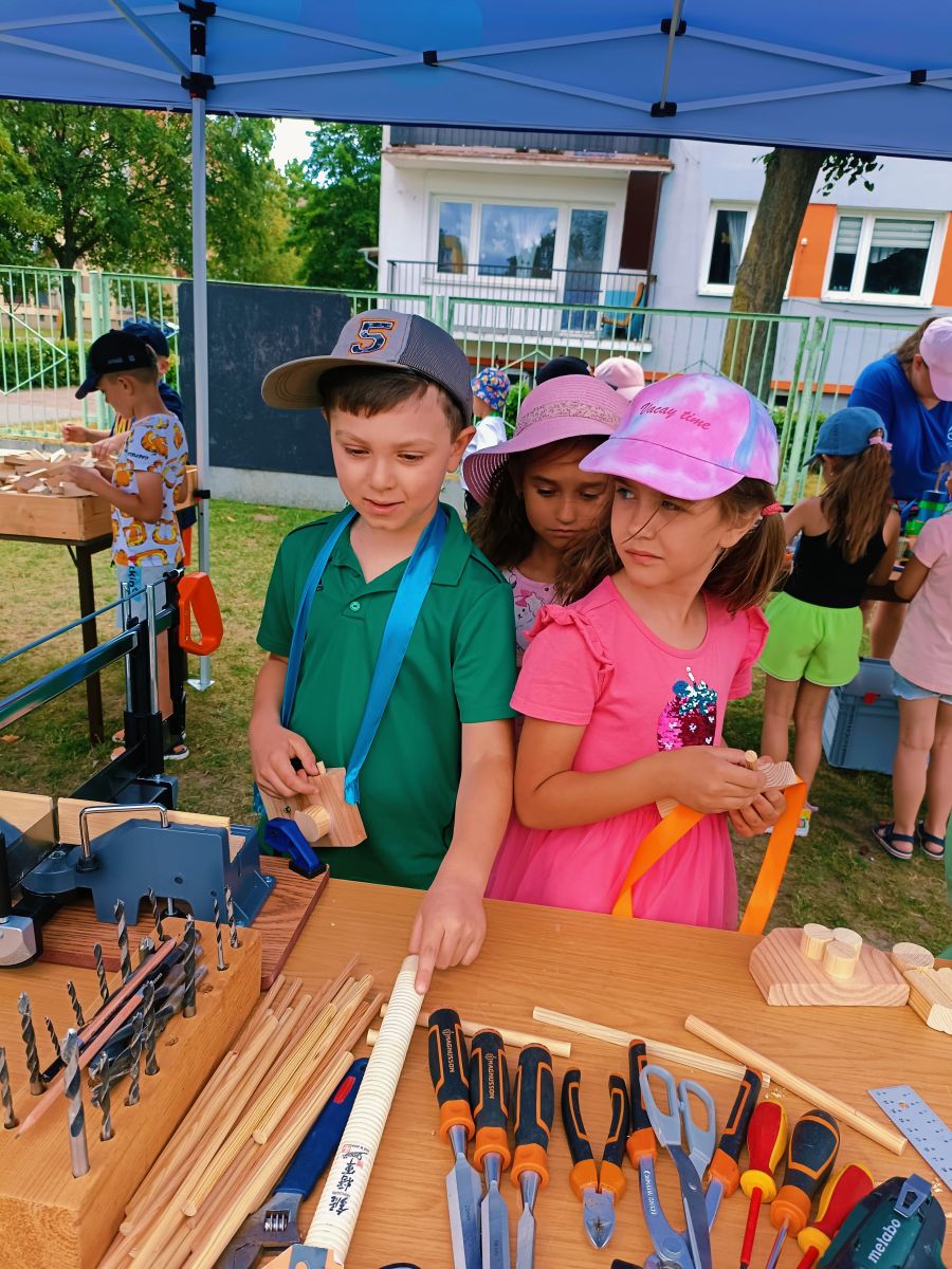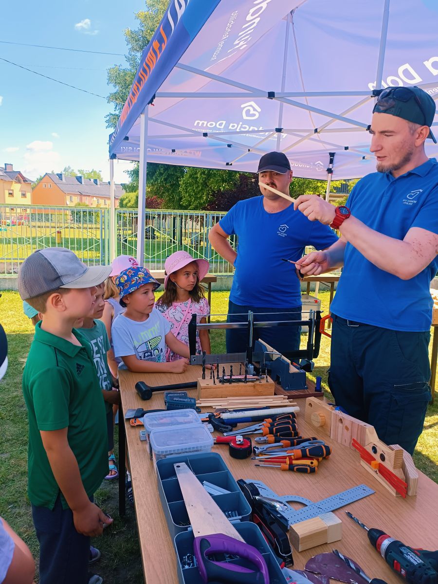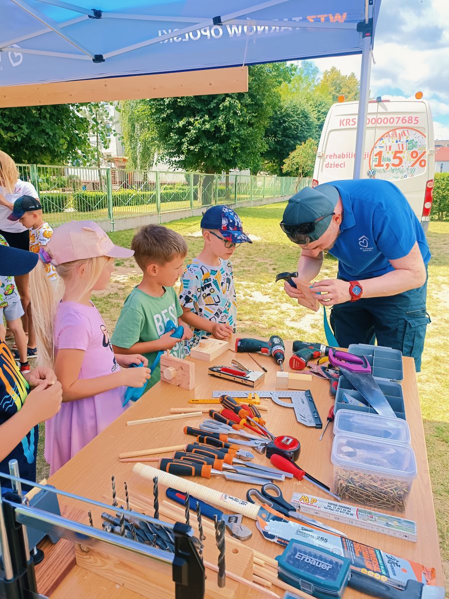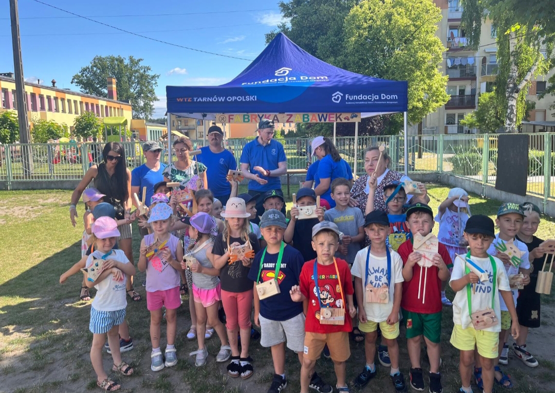 Dnia 25 czerwca 2025r. dla najstarszych grup w Przedszkolu Publicznym Nr 1 w Ozimku zostały zorganizowane wspaniałe oraz bardzo  kreatywne warsztaty robienia drewnianych zabawek. Warsztaty „Fabryka zabawek” przeprowadzone zostały przez terapeutę pana Marcina z podopiecznymi Olą, Tomkiem, Kamilem i Andrzejem z WTZ Fundacja Dom Rodzinnej Rehabilitacji Dzieci z Porażeniem Mózgowym w Opolu  działająca w  Tarnowie Opolskim. Była to doskonała okazja do rozwijania zdolności manualnych, samodzielności i wyobraźni. Przedszkolaki  z wielkim zaangażowaniem tworzyli swoje małe dzieła, czerpiąc z tego ogromną radość. Bardzo dziękujemy  za wspaniałą organizację, kreatywne zajęcia, serdeczną atmosferę, cudowne podejście do dzieci, a przede wszystkim uśmiech. Warsztaty dla naszych przedszkolaków zostały ufundowane przez pracowników Jedyneczki.