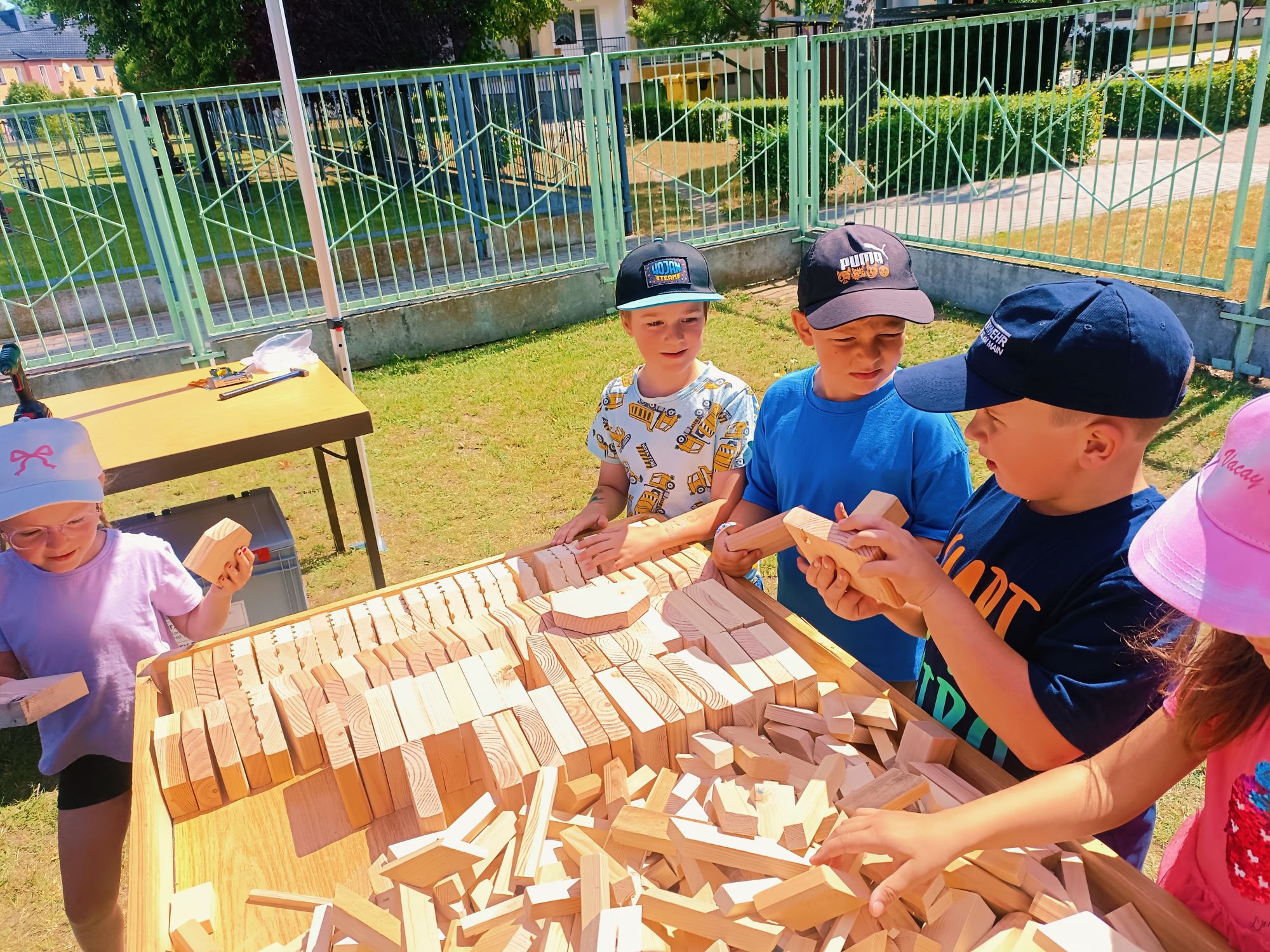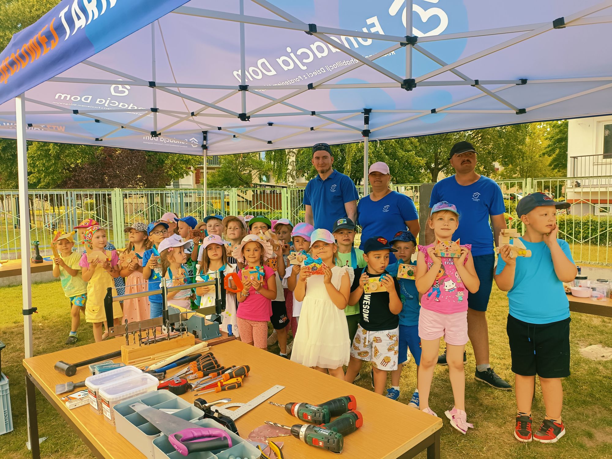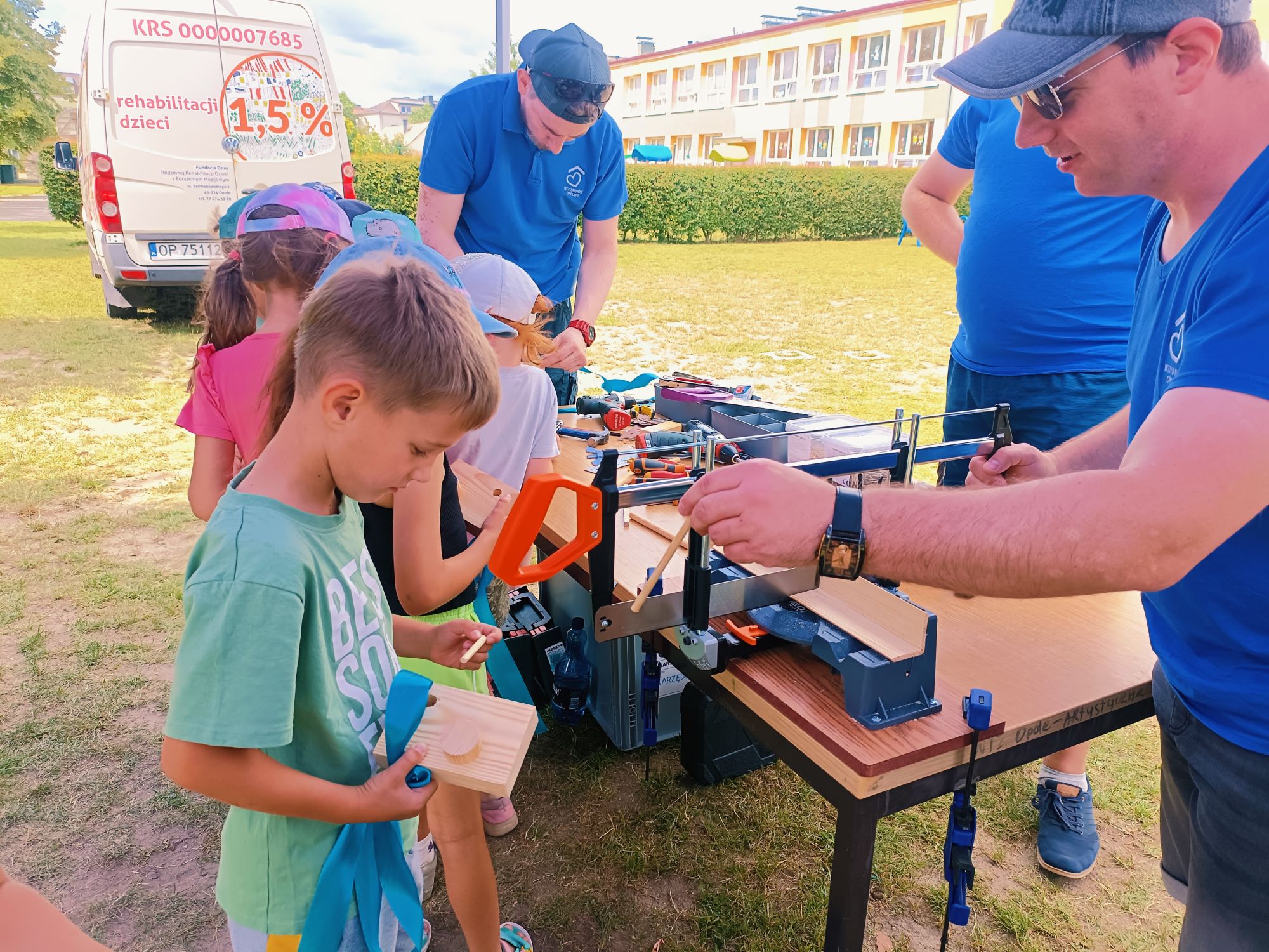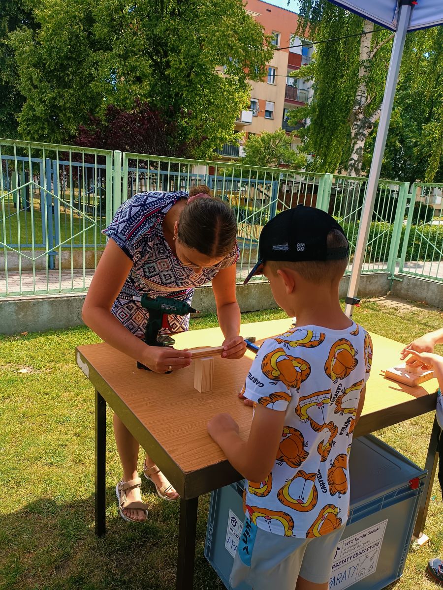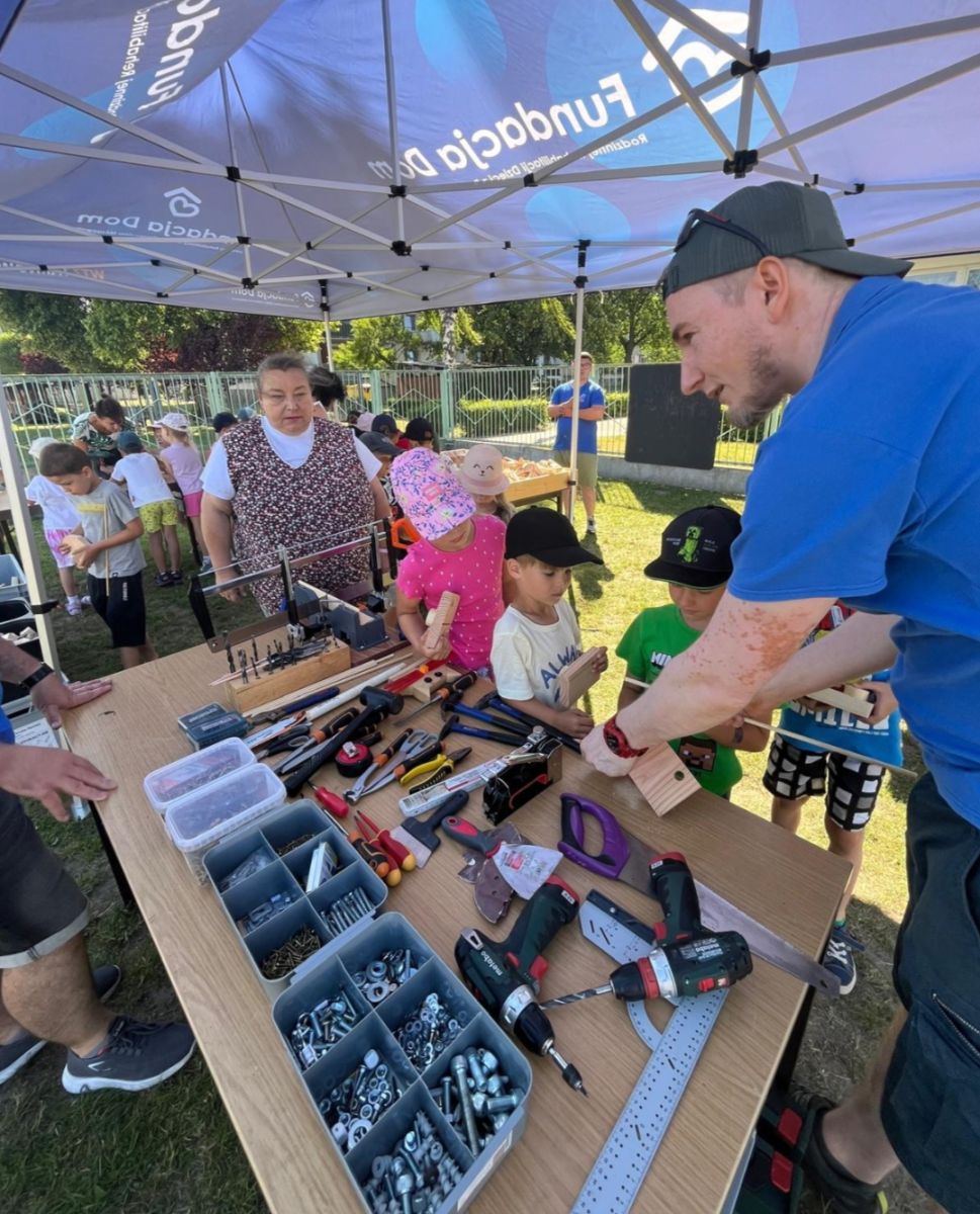 Dnia 25 czerwca 2025r. dla najstarszych grup w Przedszkolu Publicznym Nr 1 w Ozimku zostały zorganizowane wspaniałe oraz bardzo  kreatywne warsztaty robienia drewnianych zabawek. Warsztaty „Fabryka zabawek” przeprowadzone zostały przez terapeutę pana Marcina z podopiecznymi Olą, Tomkiem, Kamilem i Andrzejem z WTZ Fundacja Dom Rodzinnej Rehabilitacji Dzieci z Porażeniem Mózgowym w Opolu  działająca w  Tarnowie Opolskim. Była to doskonała okazja do rozwijania zdolności manualnych, samodzielności i wyobraźni. Przedszkolaki  z wielkim zaangażowaniem tworzyli swoje małe dzieła, czerpiąc z tego ogromną radość. Bardzo dziękujemy  za wspaniałą organizację, kreatywne zajęcia, serdeczną atmosferę, cudowne podejście do dzieci, a przede wszystkim uśmiech. Warsztaty dla naszych przedszkolaków zostały ufundowane przez pracowników Jedyneczki.