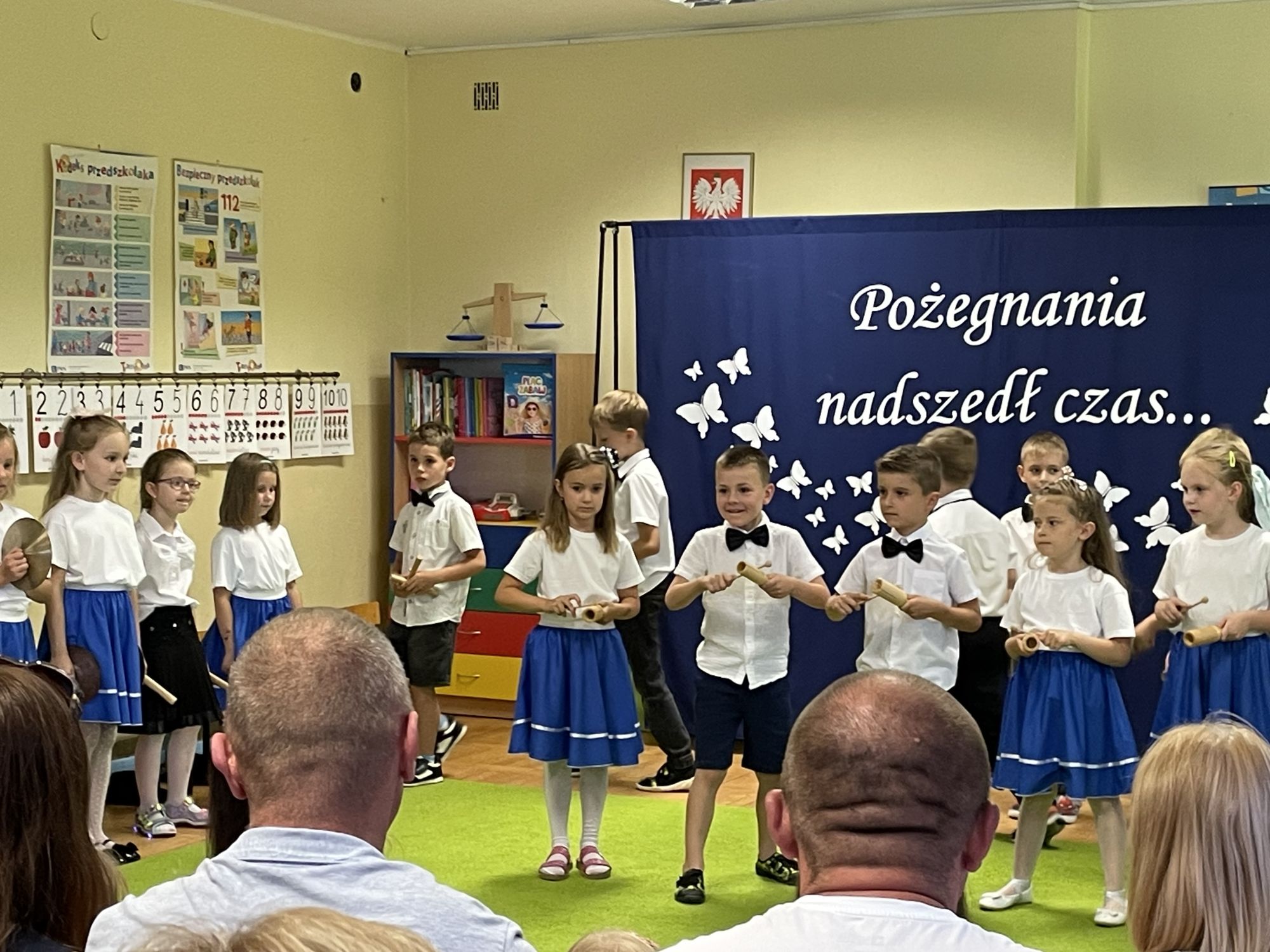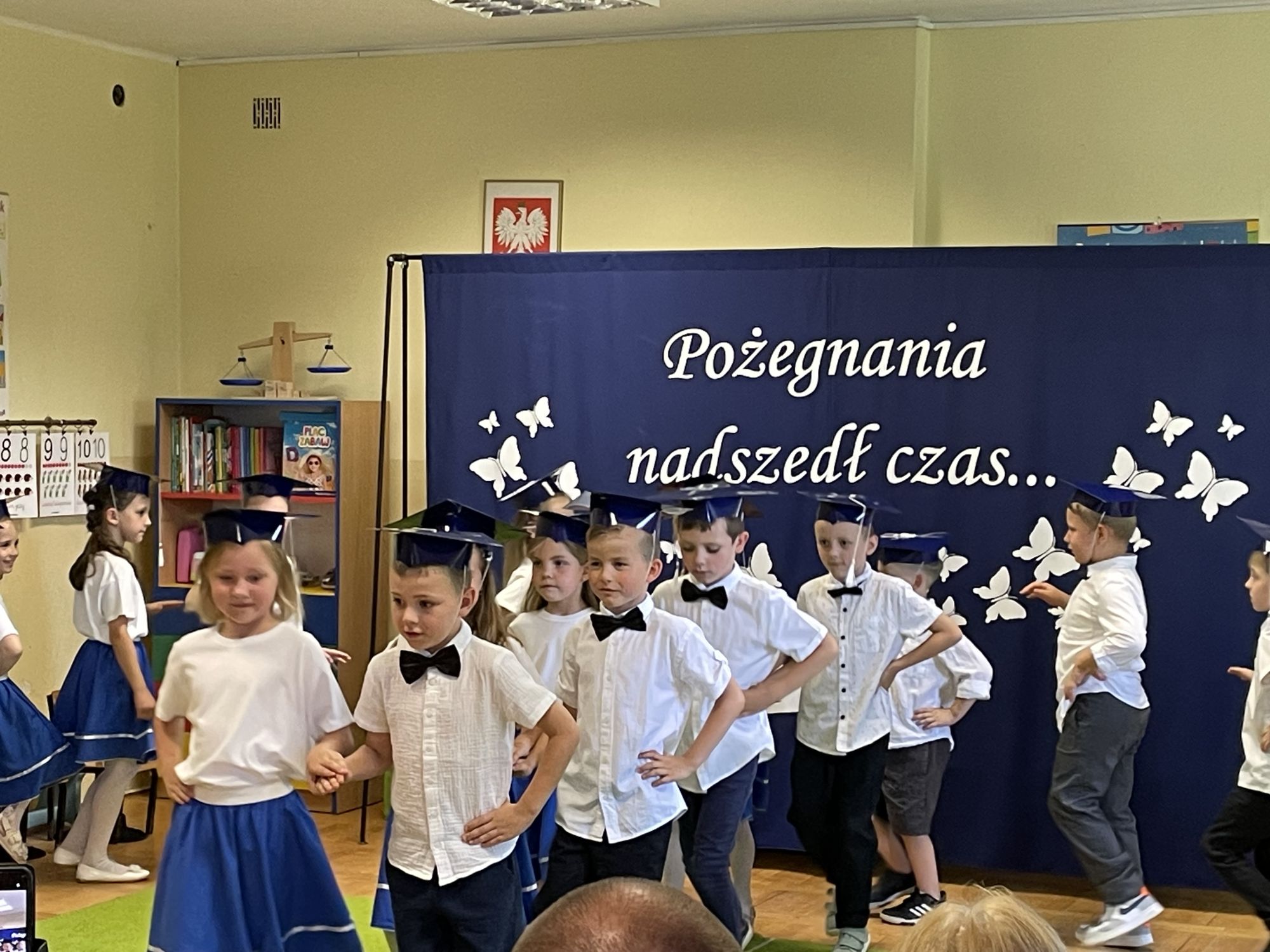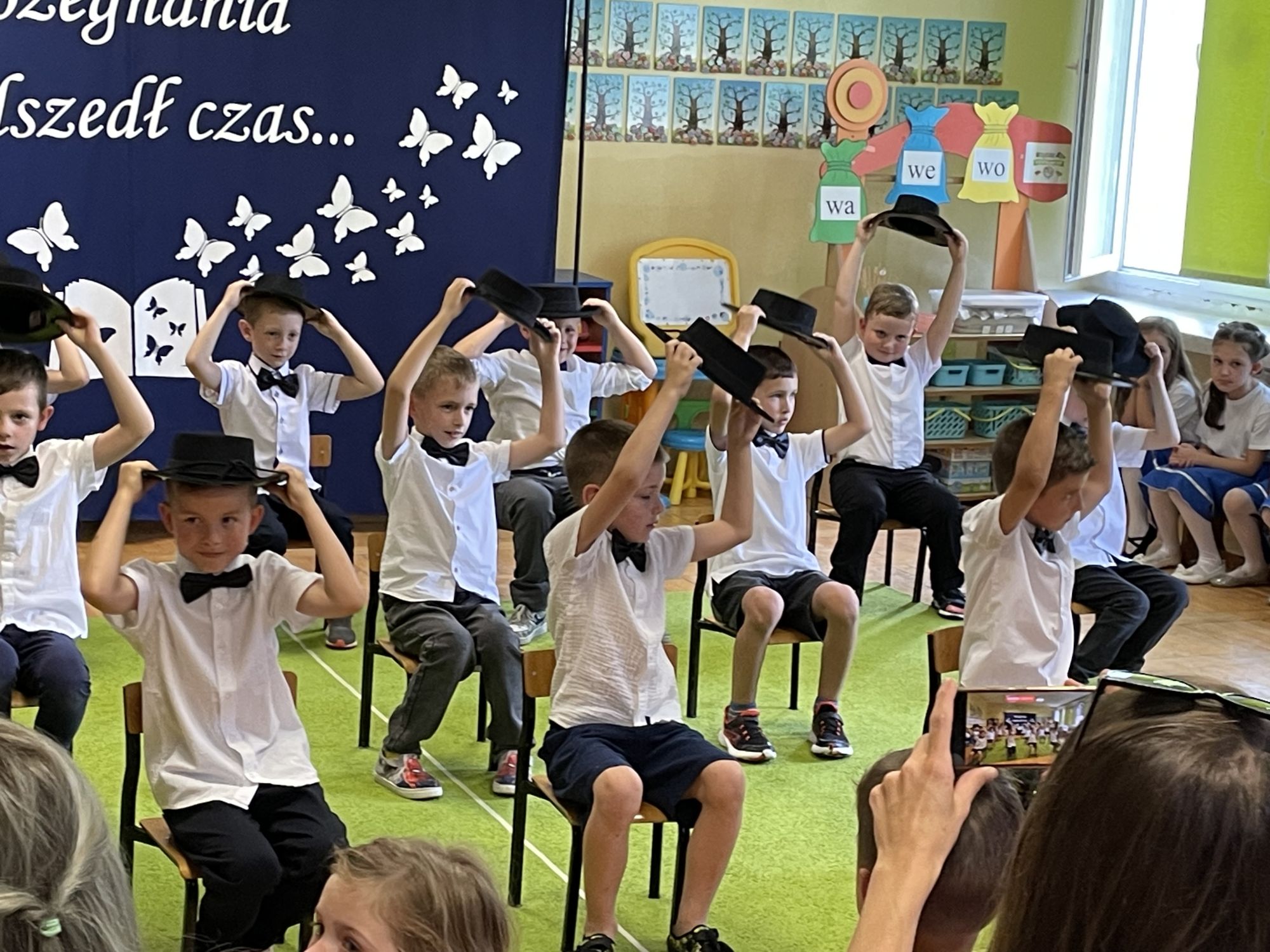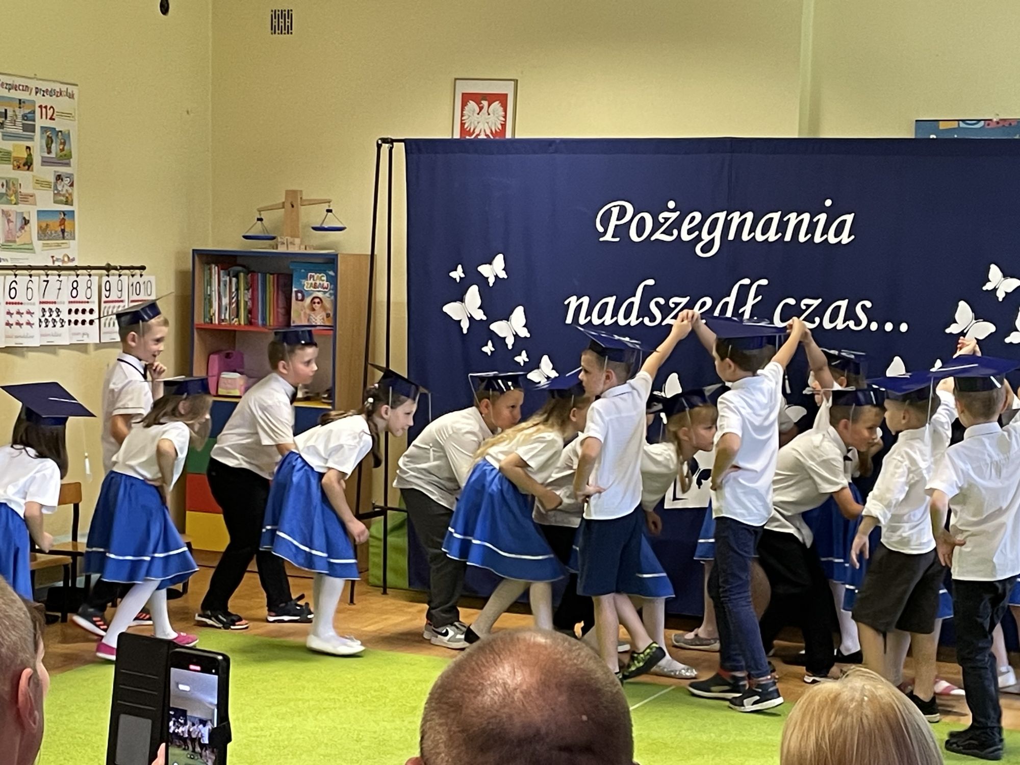 Punktem kulminacyjnym programu był tradycyjny polonez, który dzieci zatańczyły z wyjątkową gracją i skupieniem. Taniec ten stał się symbolicznym pożegnaniem z przedszkolem i pięknym zwieńczeniem wspólnie spędzonych lat.