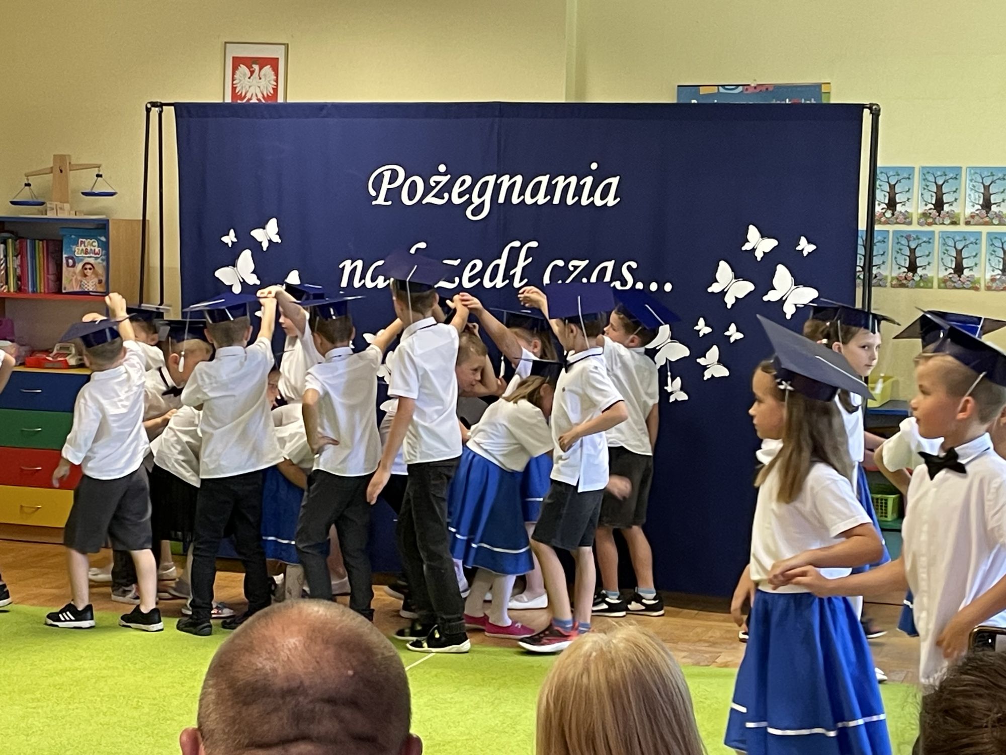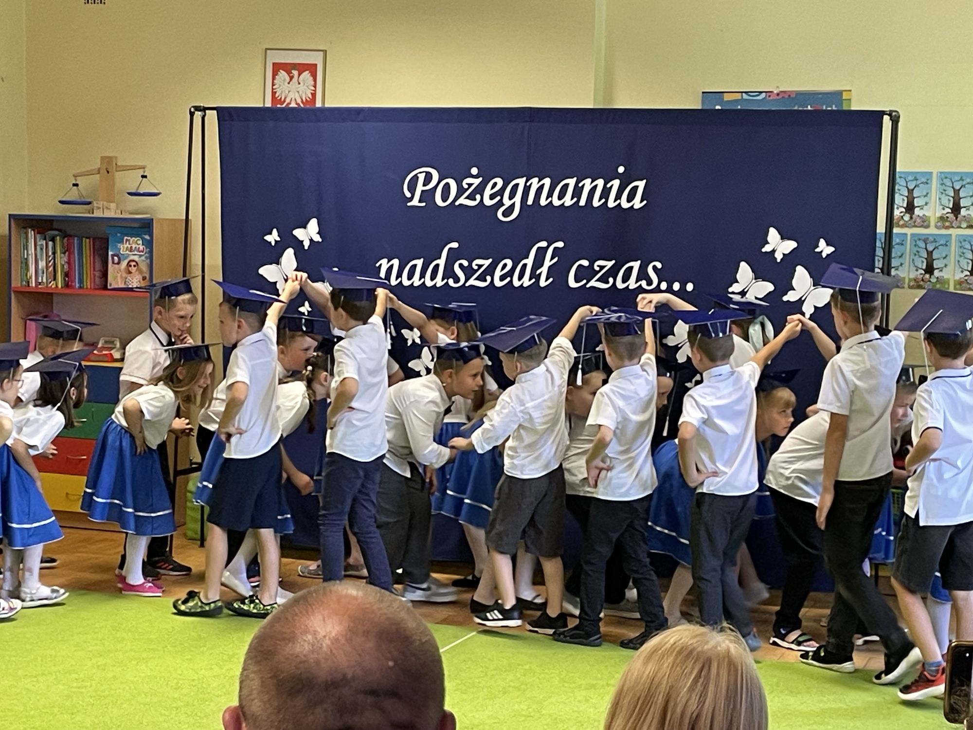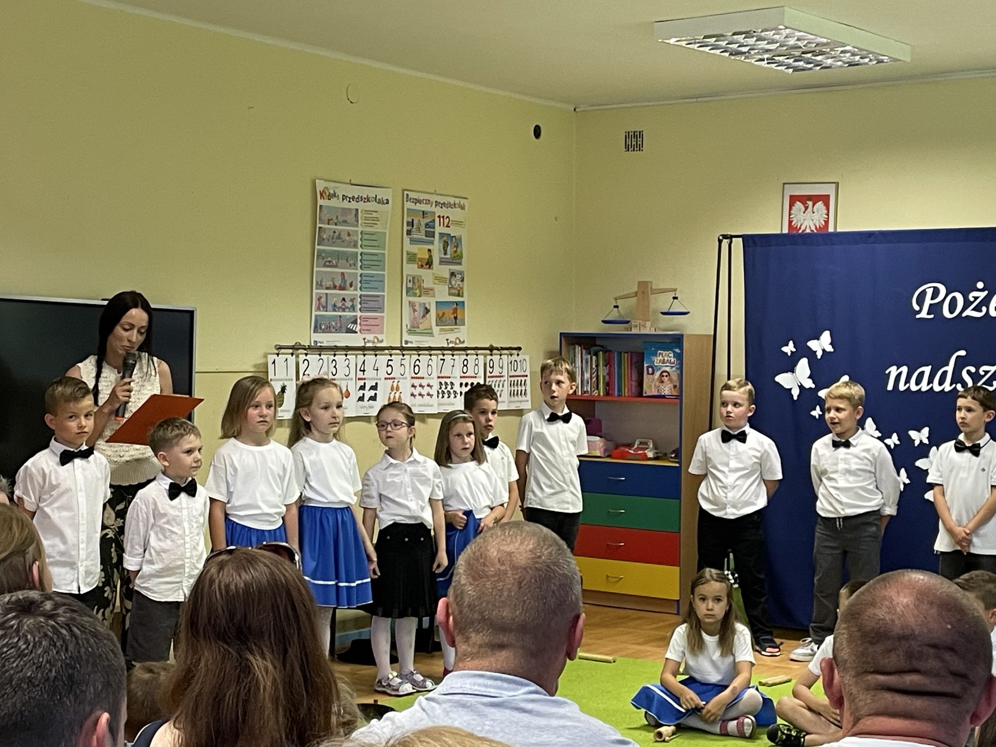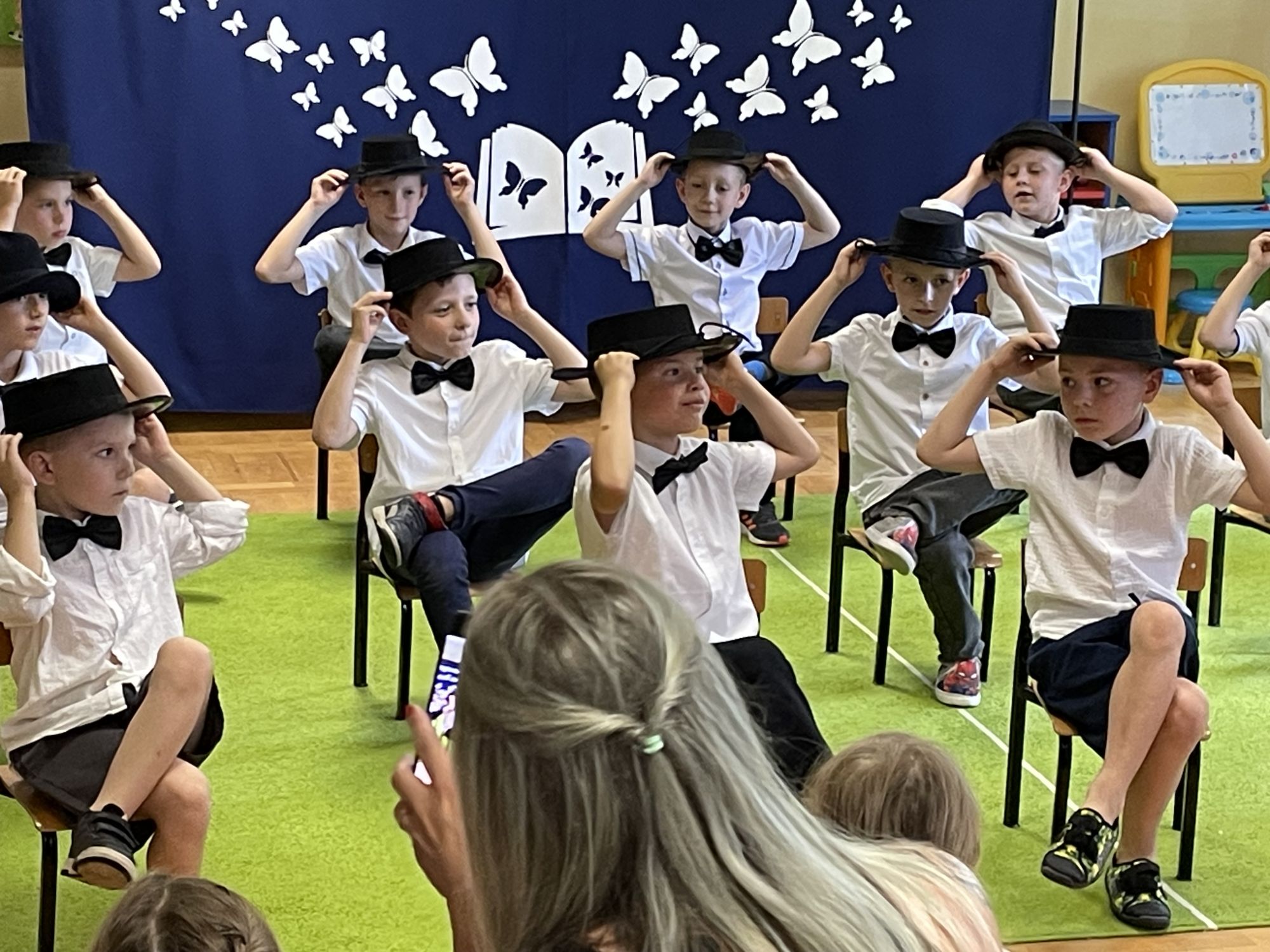Punktem kulminacyjnym programu był tradycyjny polonez, który dzieci zatańczyły z wyjątkową gracją i skupieniem. Taniec ten stał się symbolicznym pożegnaniem z przedszkolem i pięknym zwieńczeniem wspólnie spędzonych lat.