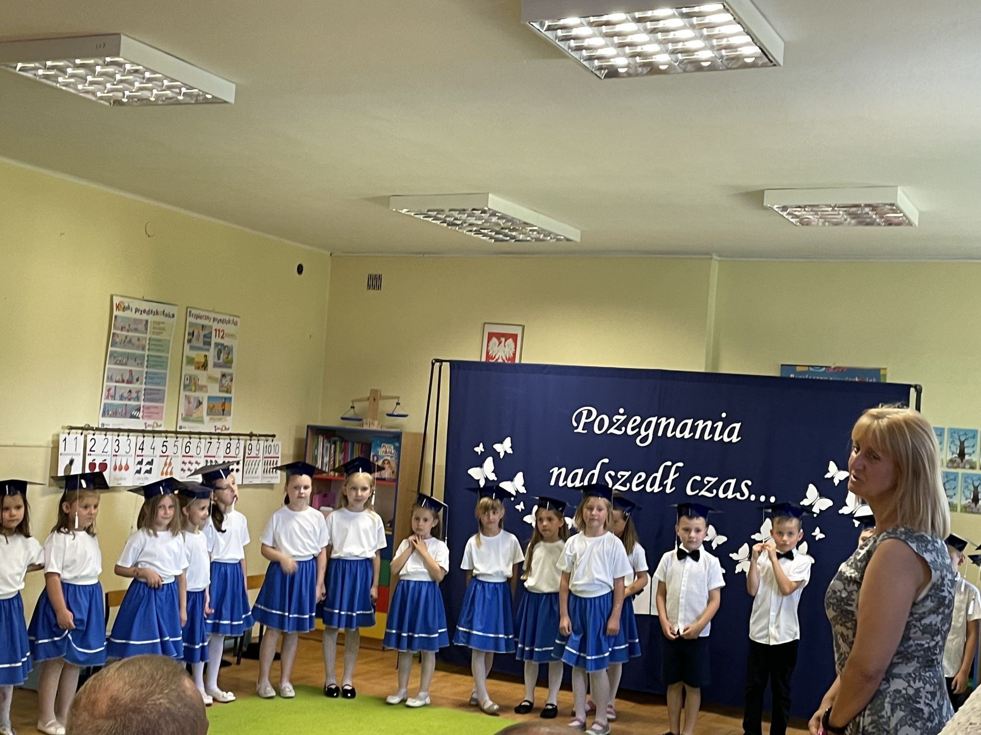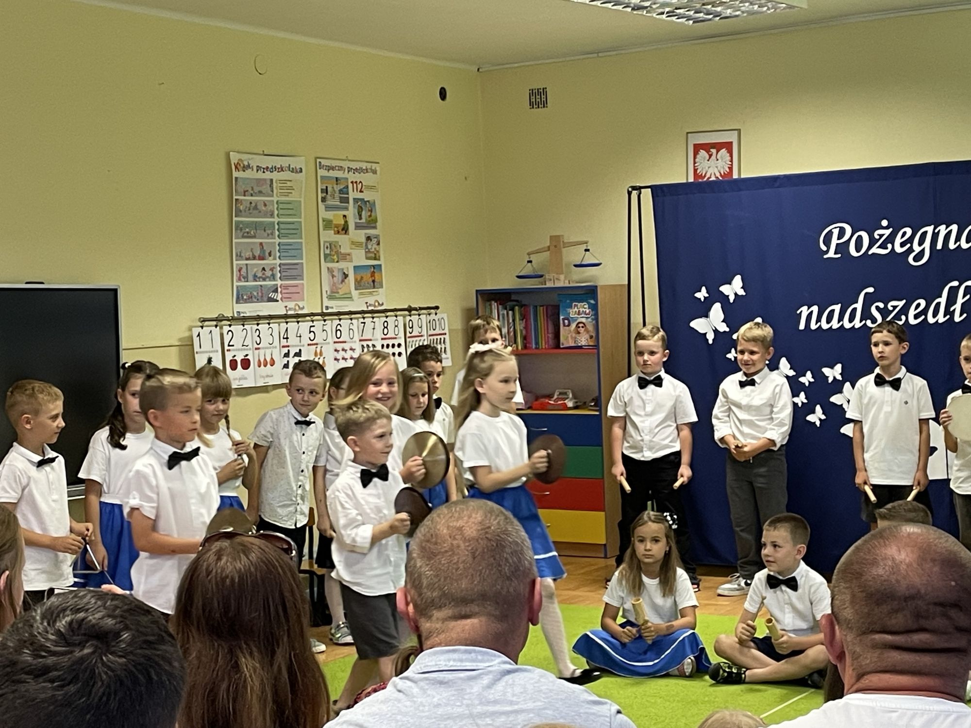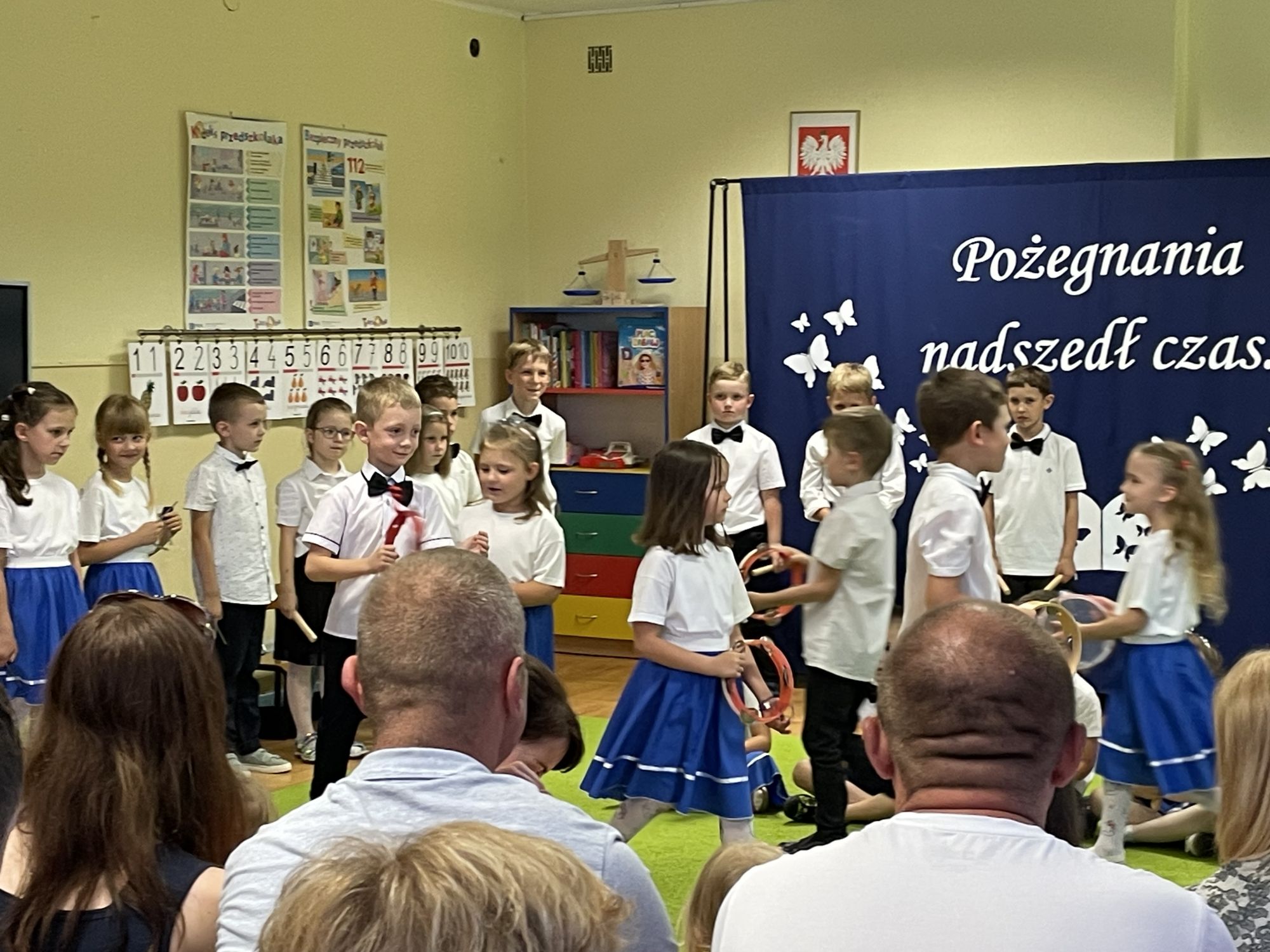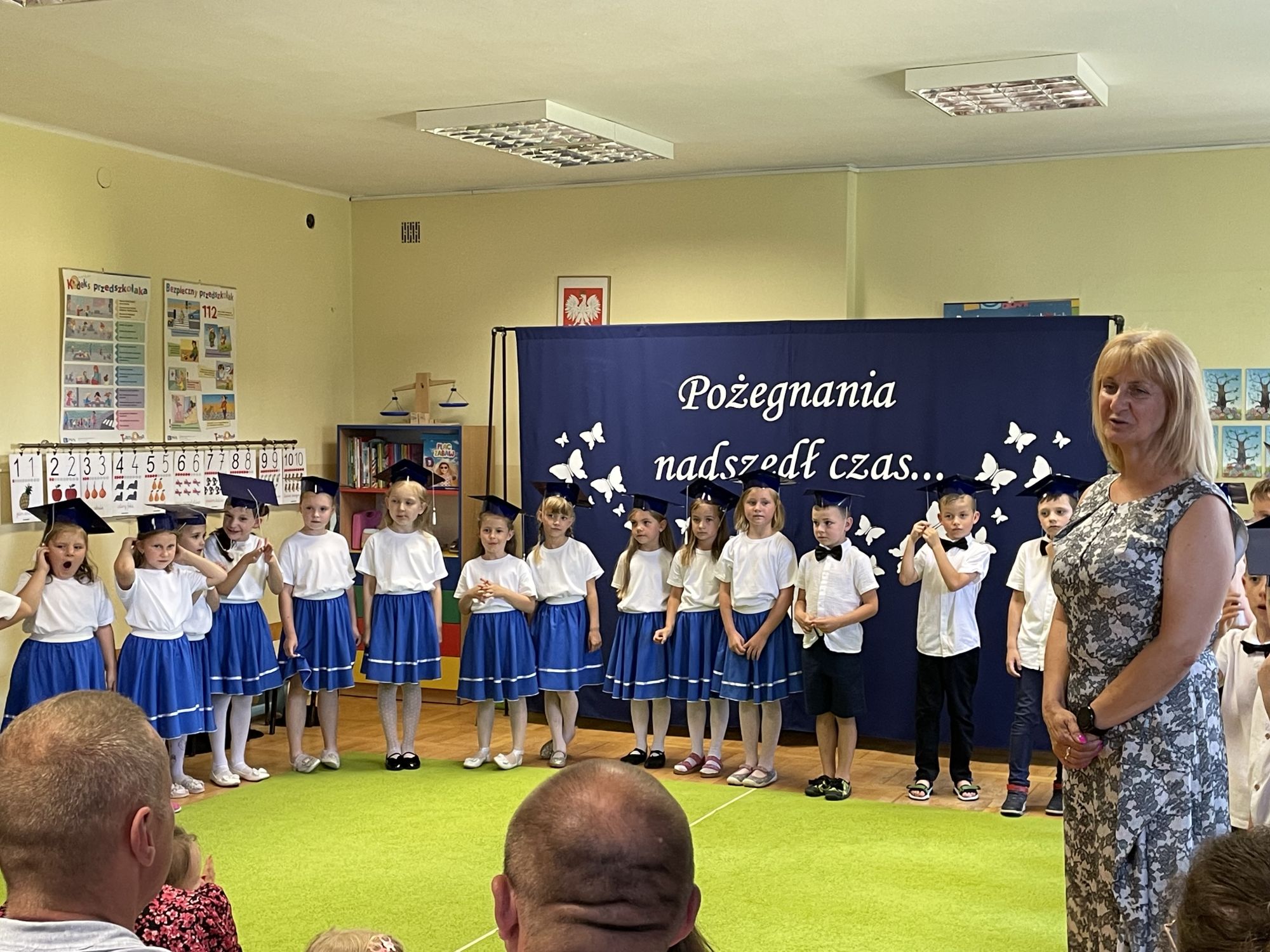 Punktem kulminacyjnym programu był tradycyjny polonez, który dzieci zatańczyły z wyjątkową gracją i skupieniem. Taniec ten stał się symbolicznym pożegnaniem z przedszkolem i pięknym zwieńczeniem wspólnie spędzonych lat.