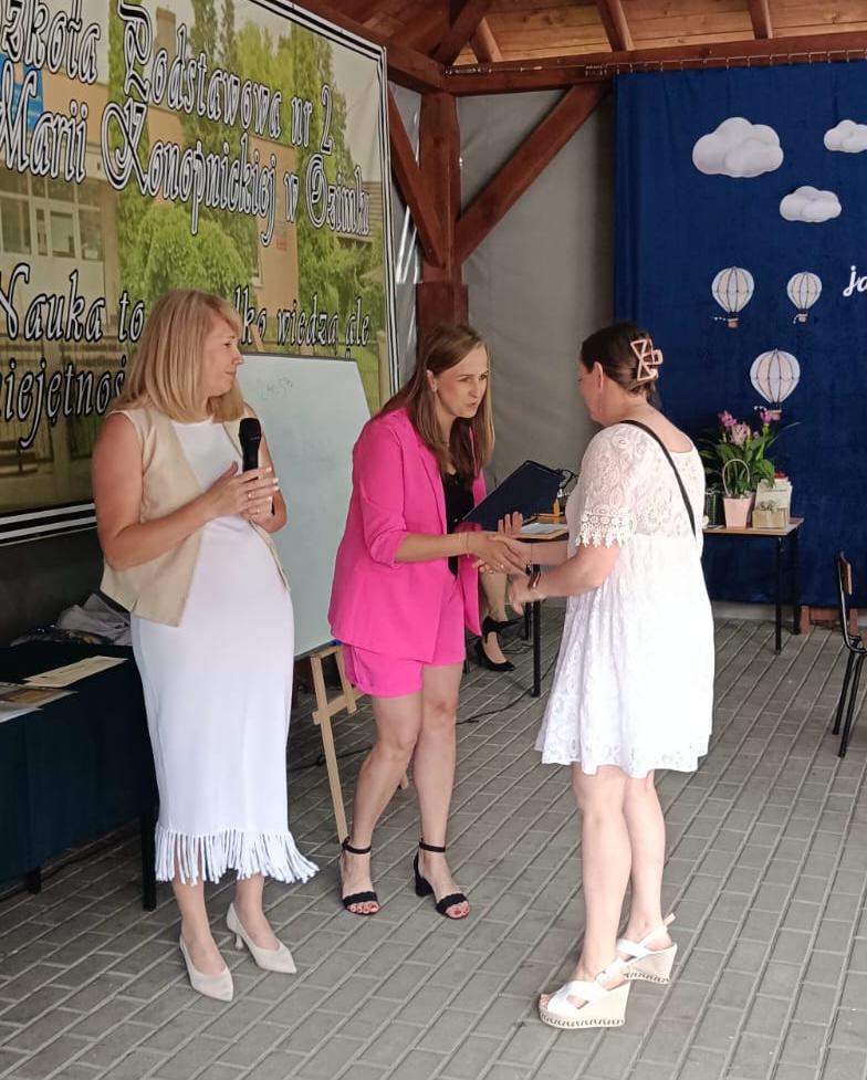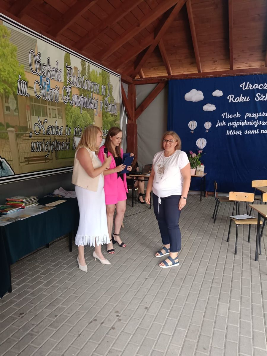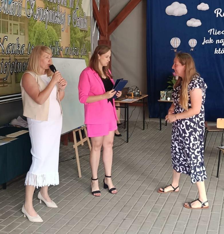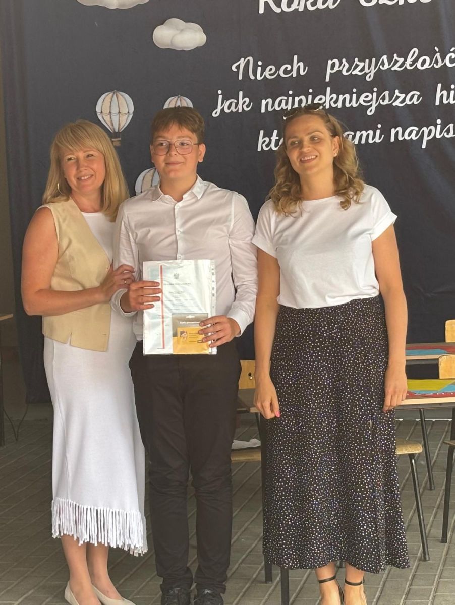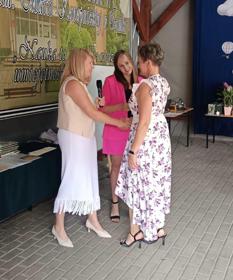Był to wyjątkowy moment – pełen wzruszeń, uśmiechów i refleksji nad tym, co udało się wspólnie osiągnąć w minionych miesiącach. Pani dyrektor Anna Gaszczyk powitała wszystkich gości, w szczególności panią Justynę Bęben – przedstawiciela organu prowadzącego, księdza Dominika Sowę, uczniów, ich rodziców, nauczycieli oraz pracowników administracyjno-obsługowych. Następnie zaprosiła publiczność na część artystyczną przygotowaną przez ósmoklasistów. Uczniowie zaprezentowali wspomnienia z ostatnich lat swojej nauki. Nie zabrakło śmiechu, ale i chwil wzruszeń. Na zakończenie występu podziękowali nauczycielom, pracownikom szkoły oraz swoim rodzicom. Odbyła się również ceremonia przekazania sztandaru oraz wręczone zostały podziękowania za godne reprezentowanie szkoły w poczcie sztandarowym. Po części artystycznej zostały wręczone uczniom świadectwa ukończenia szkoły oraz świadectwa z wyróżnieniem wraz z bonami zasponsorowanymi przez Radę Rodziców. Najlepsi uczniowie otrzymali stypendia ufundowane przez Burmistrza Ozimka, które wręczyła pani Justyna Bęben. Pani Ewa Dorynek podziękowała uczniom klasy ósmej za zaangażowanie w wolontariat oraz uczniom klasy czwartej za przygotowywane przedstawienia teatralne. Tego dnia wręczono również podziękowania „Przyjaciołom Szkoły”, dzięki którym nasza placówka może się rozwijać, a rzeczy niemożliwe stają się możliwe. Raz jeszcze dziękujemy: Państwu Maj, panu Voloschukowi oraz panu Grzegorzowi Filipkowi. Na zakończenie pani dyrektor Anna Gaszczyk serdecznie podziękowała za współpracę organowi prowadzącemu, pracownikom szkoły, Radzie Rodziców oraz rodzicom, którzy z zaangażowaniem wspierają szkołę i chętnie podejmują inicjatywy na jej rzecz. Na koniec życzyła wszystkim udanych i bezpiecznych wakacji.