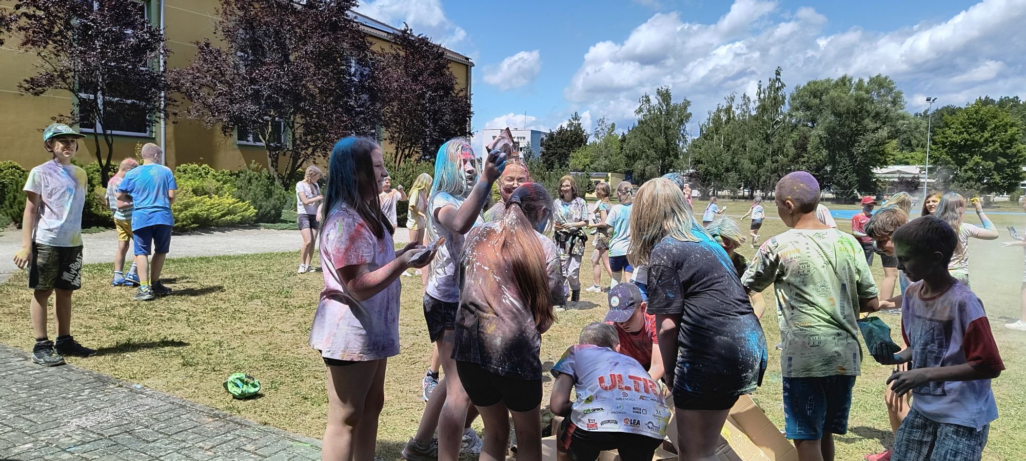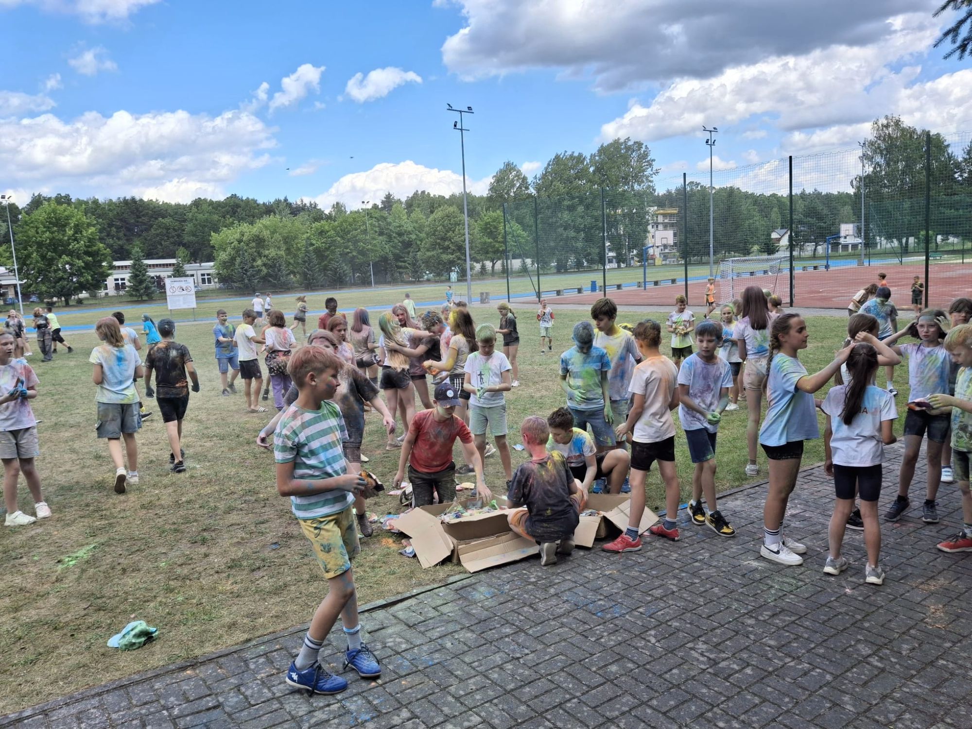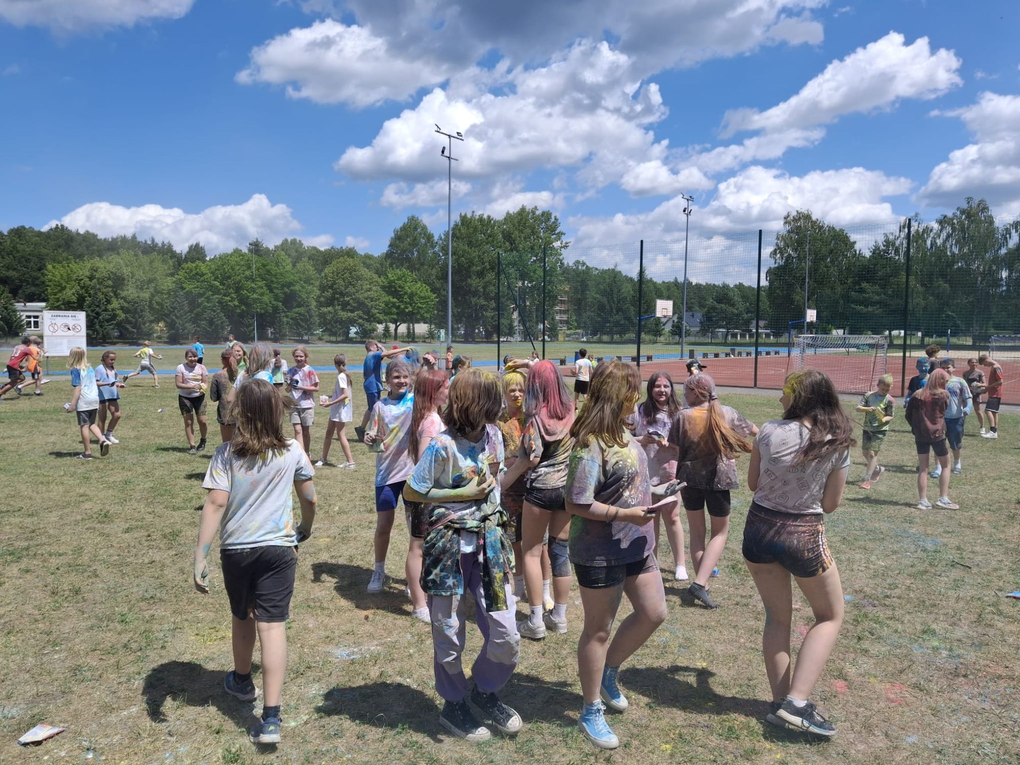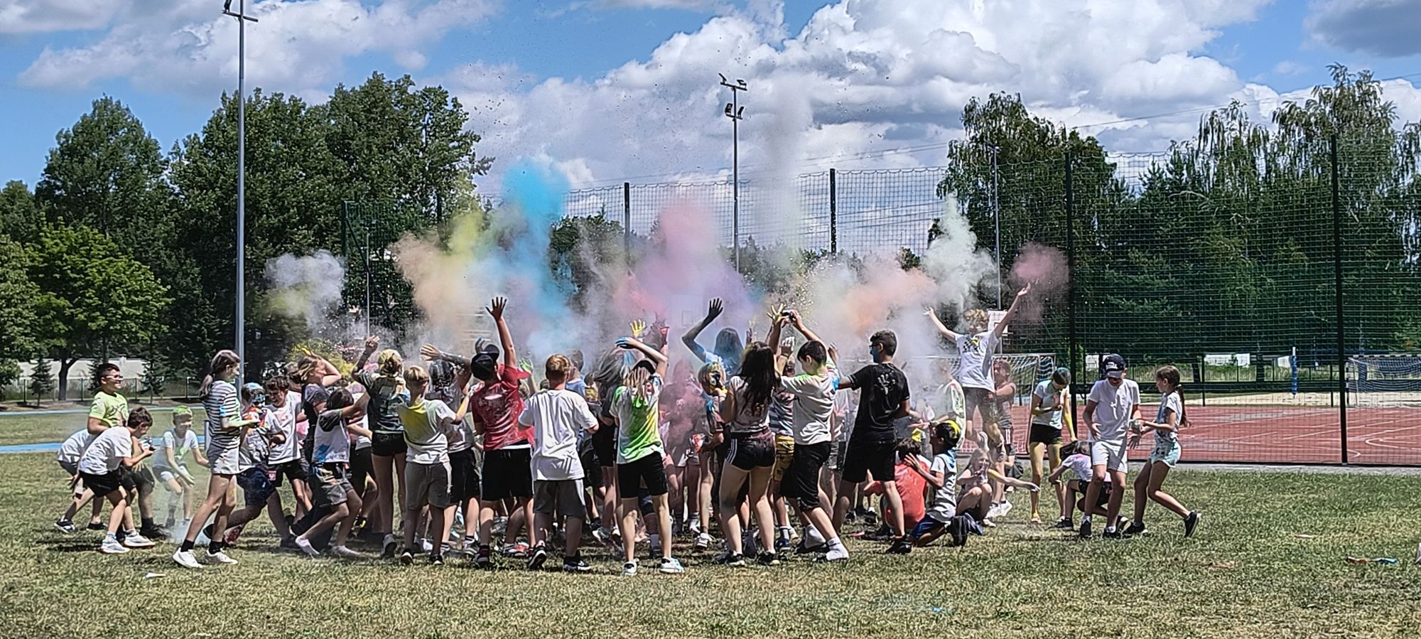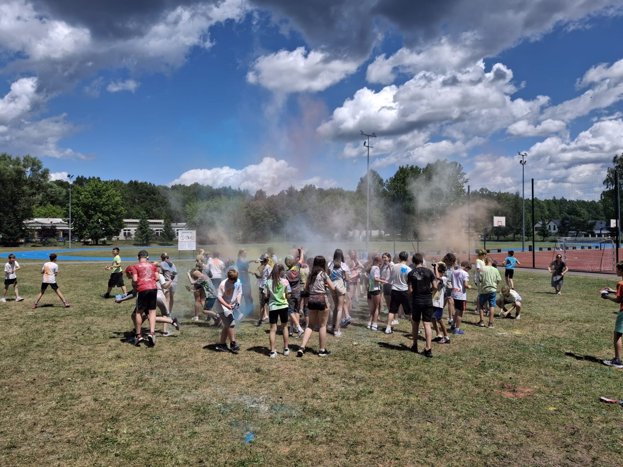Choć musieliśmy chwilkę poczekać – było warto! Dzięki sprzyjającej pogodzie udało się zrealizować niespodziankę od Rady Rodziców z okazji Dnia Dziecka – radosne i pełne barw Święto Kolorów!