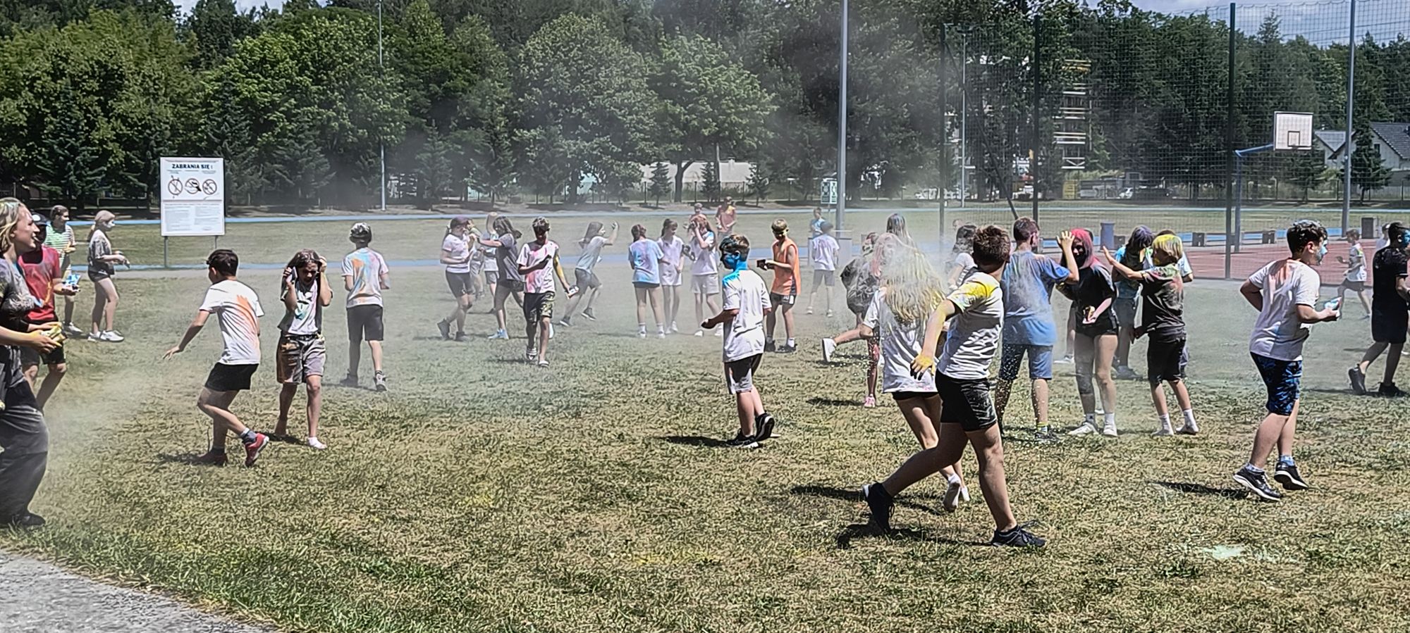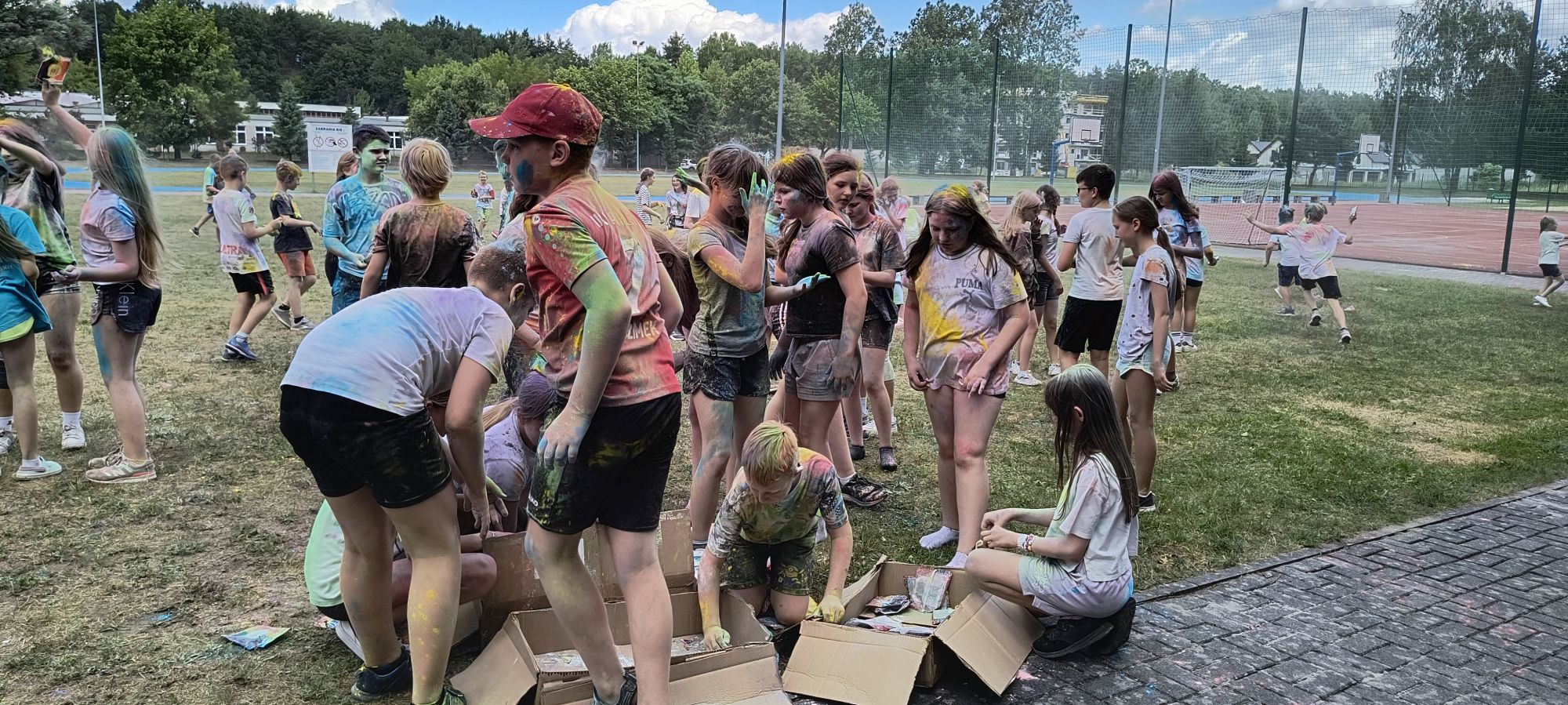 Dzieci bawiły się znakomicie przy dźwiękach muzyki i wśród chmur kolorowych proszków – śmiechu i pozytywnej energii nie było końca!