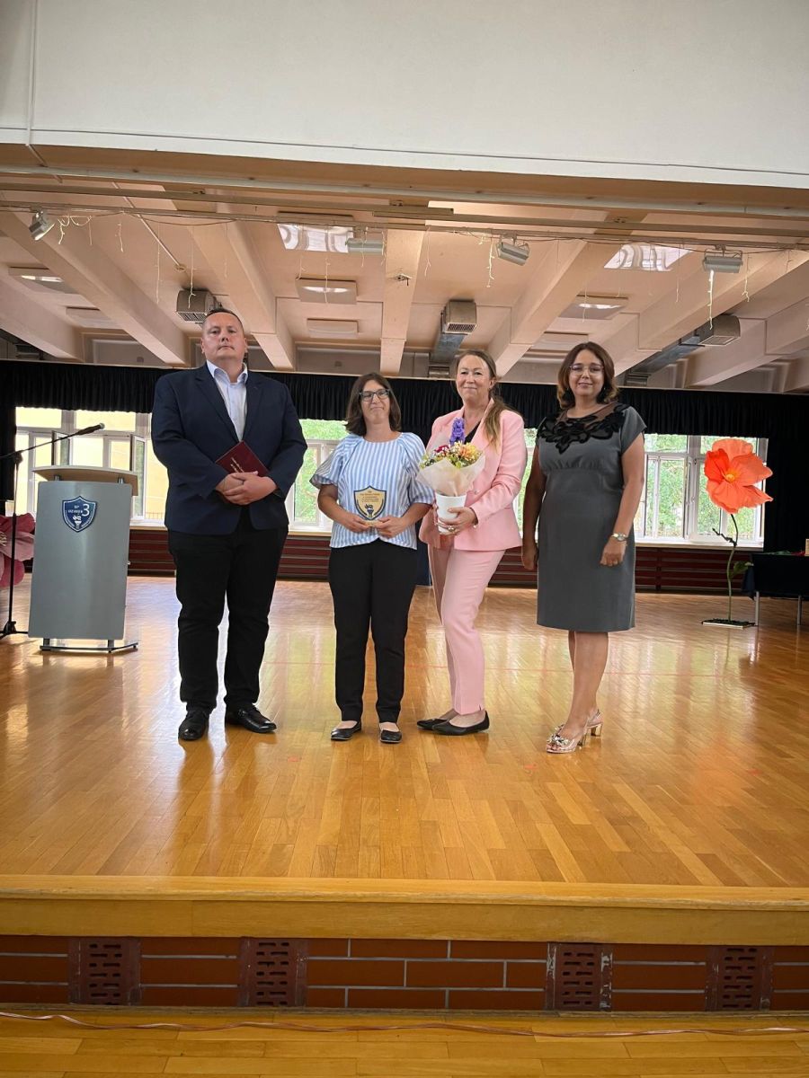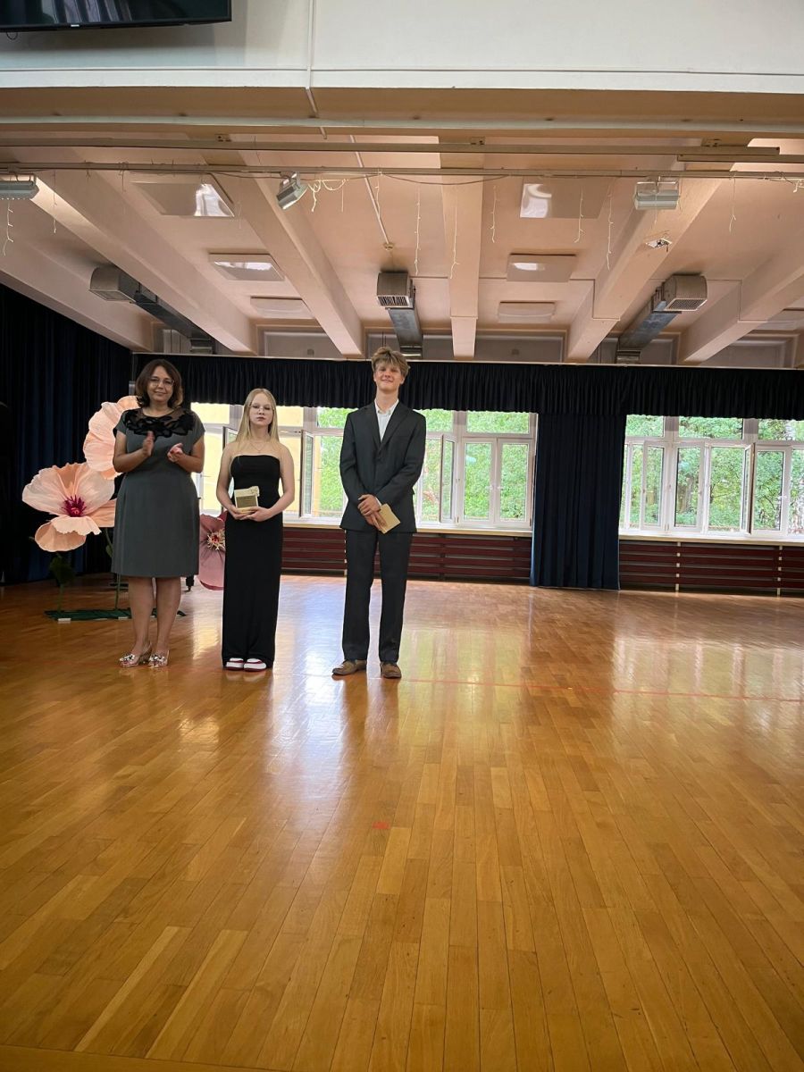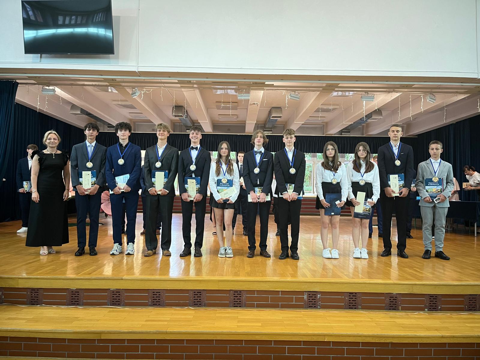 Na scenie Dyrekcja i Grono Pedagogiczne uhonorowało wyróżnionych Uczniów – Laureatów i Finalistów konkursów wojewódzkich, sportowców, artystów – którzy odebrali nagrody, medale, a także stypendia przyznane przez Urząd Miasta i Gminy Ozimek. Wyrazy uznania dla ich Rodziców osobiście złożyli Pan Burmistrz, Pani Dyrektor i Pani Wicedyrektor Małgorzata Korniak, dziękując za wsparcie i wychowanie tak wspaniałych młodych ludzi.