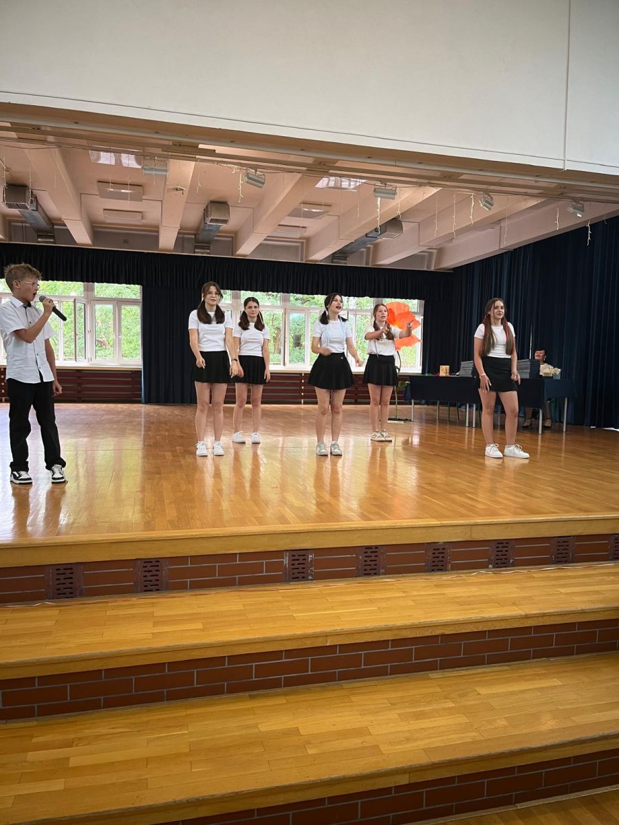 Wzruszającym akcentem była niespodzianka – nauczyciele, z inicjatywy Pani Karoliny Pawlik i Pani Darii Kulik, zaśpiewali „Kolorowe jarmarki” z towarzyszeniem Pani Moniki Sobczyk na pianinie, a Pani Karolina Pawlik i Ksiądz Dawid Górniak wykonali dwie zwrotki solo – dziękujemy za ten wyjątkowy moment!