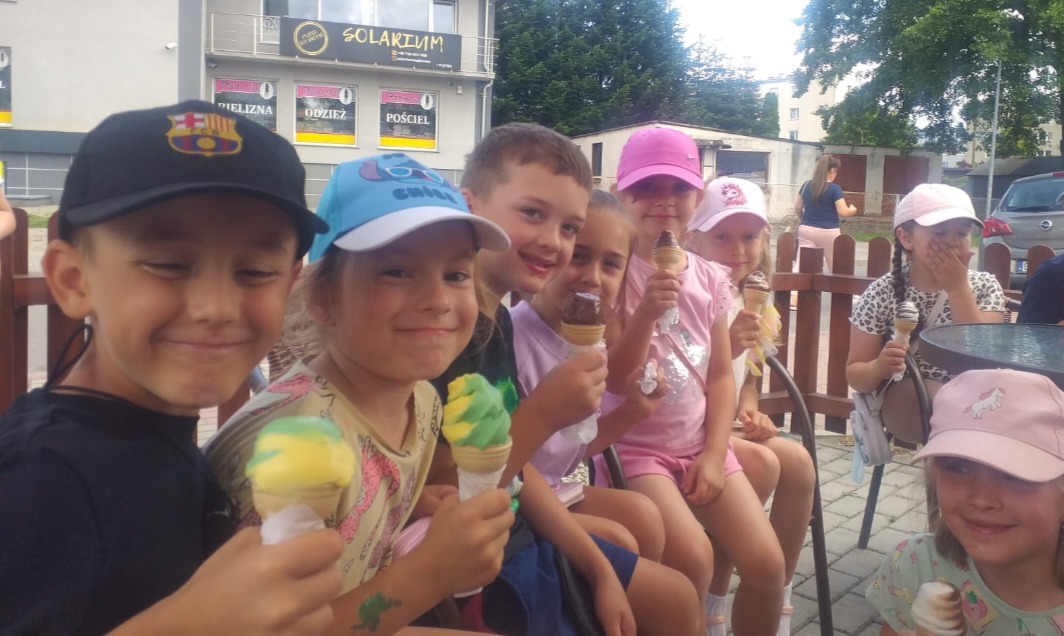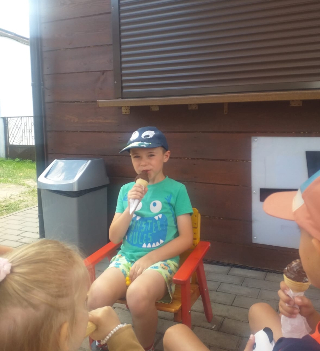 Wyjście na lody było dla  przedszkolaków z Przedszkola Publicznego Nr 1 w  Ozimku   wyjątkowym dniem. Zimna i smaczna niespodzianka w upalny dzień sprawiła dzieciom   ogromną radość. Każde dziecko wybierało swój ulubiony smak loda. Wyjście do lodziarni było nie tylko słodką niespodzianką, ale również przypomnieniem zasad zachowania podczas wyjść poza teren przedszkola oraz właściwego zachowania się w miejscu publicznym. Wspaniale patrzeć na uśmiechnięte i kolorowe od lodów buzie dzieci. Po smacznym poczęstunku, wszyscy uśmiechnięci i zadowoleni wrócili do przedszkola.