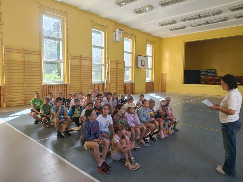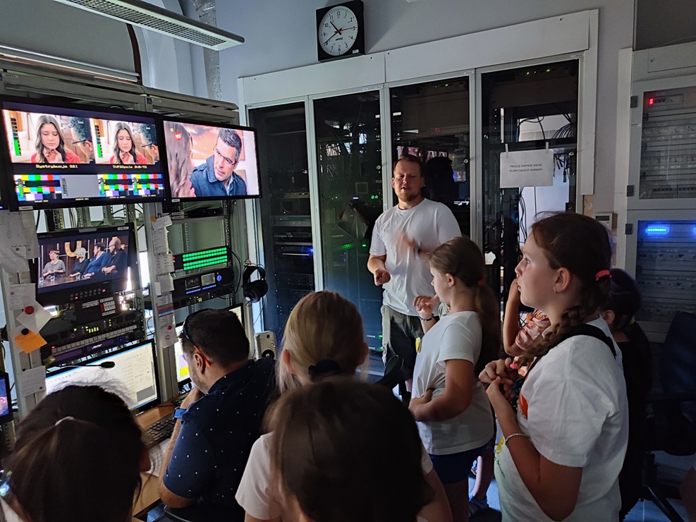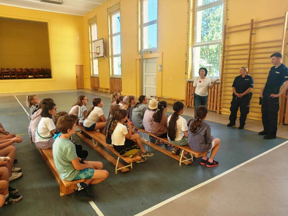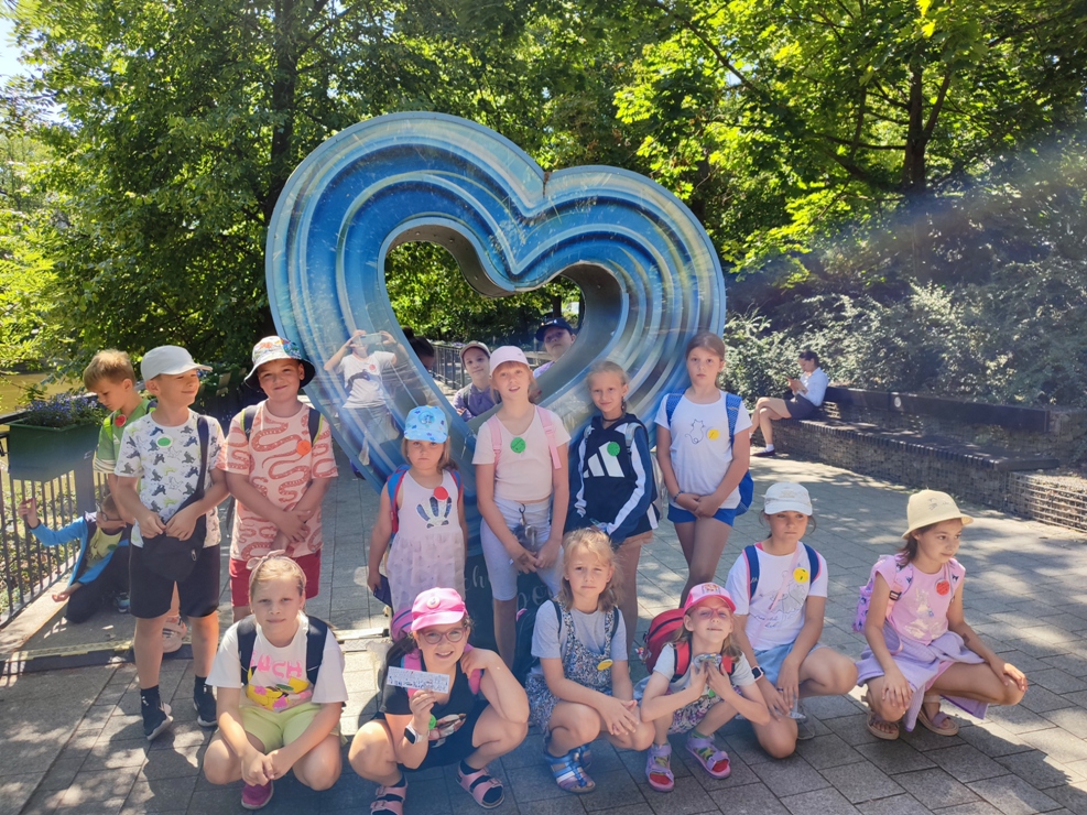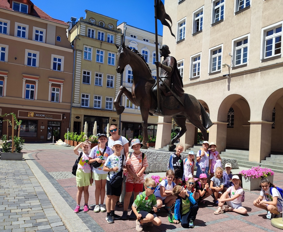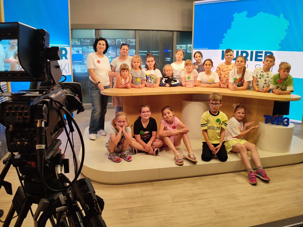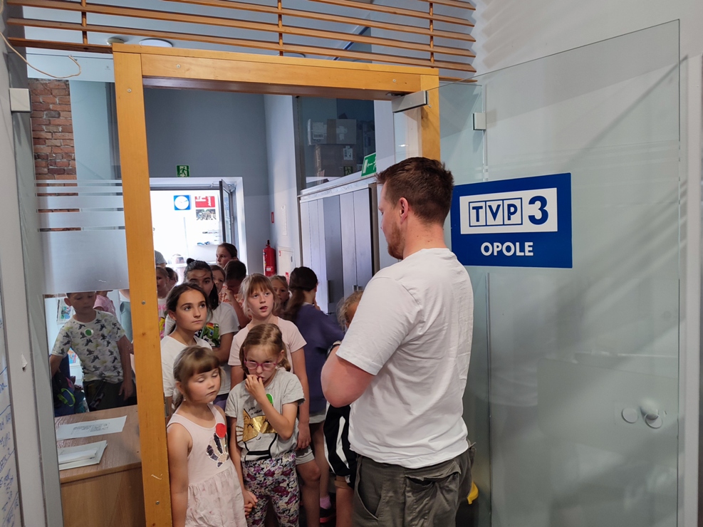Zajęcia pierwszego dnia naszej PÓŁKOLONII w JEDYNCE były bardzo ciekawe. Rano dzieci zrobiły plakietki ze swoimi imionami, by się lepiej poznać. Po pysznym śniadaniu, w formie szwedzkiego stołu, koloniści zapoznali się z regulaminem, a potem odbyło się spotkanie z policjantami z Komisariatu Policji w Ozimku. Starsza sierżant Justyna Hamela, w ciekawy sposób przybliżyła dzieciom zasady bezpieczeństwa na wakacjach. Po krótkiej podróży do Opola, nasze kroki skierowaliśmy do telewizji - TVP3 Opole. Naszym przewodnikiem po tym fascynującym miejscu był Pan JAKUB TYMKÓW, który oprowadził nas i opowiedział o pracy dziennikarzy, operatorów kamer, wydawców, a nawet pań wizażystek. Oddział Telewizji Polskiej w Opolu okazał się wspaniałym miejscem, ale przed nami były jeszcze inne ciekawostki stolicy województwa- Opola. Zobaczyliśmy ciekawe miejsca, pomniki, Most Groszowy, Aleję Gwiazd... Moglibyśmy zwiedzać cały dzień, ale w szkole czekał na nas smaczny obiad i podwieczorek. Potem gry i zabawy integracyjne, malowanie kredą, gra w piłkę. I tak ten intensywny dzień się zakończył! Do jutra!