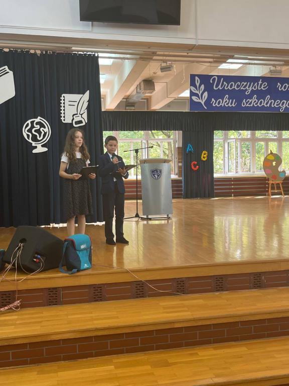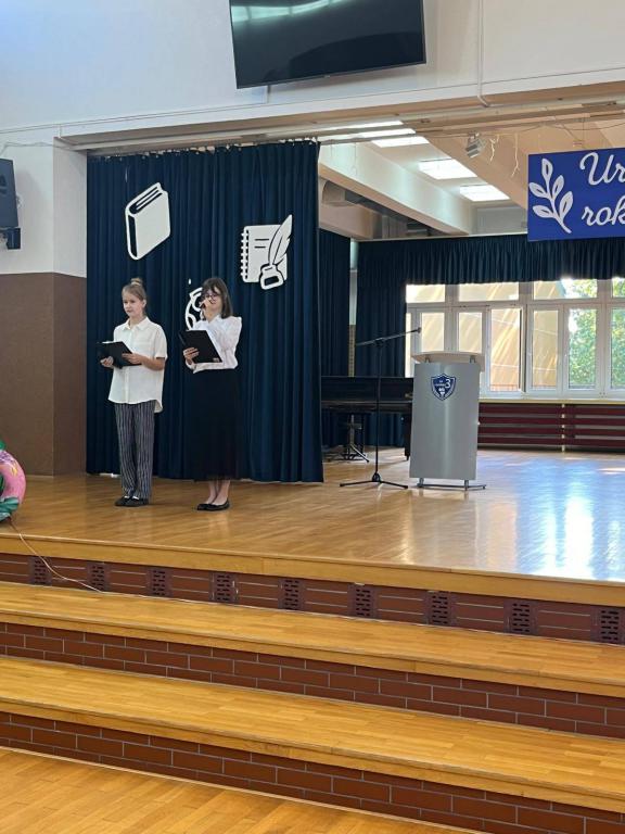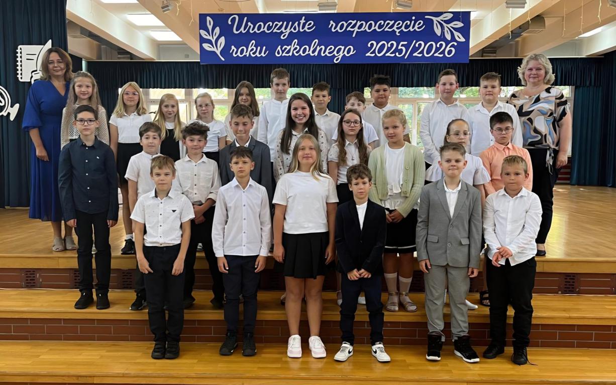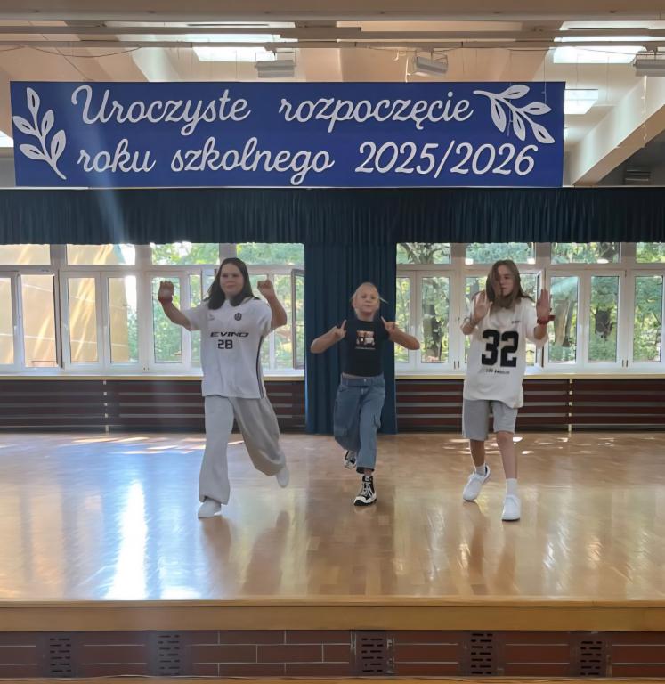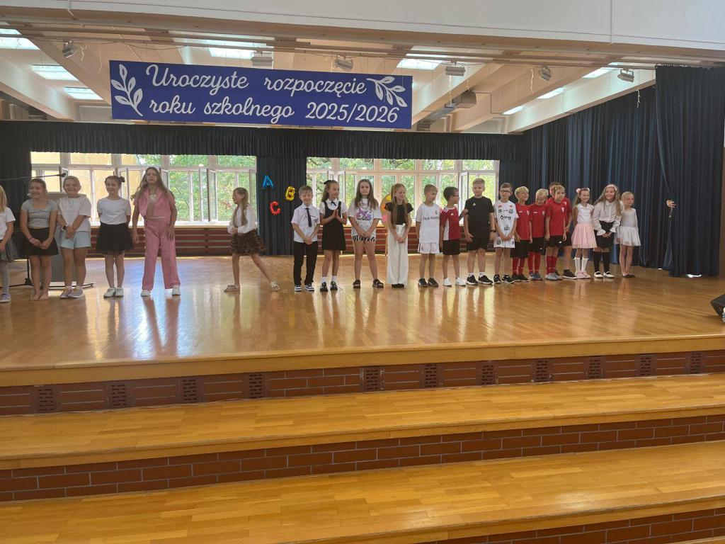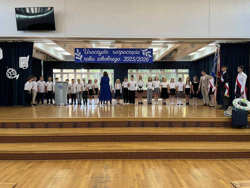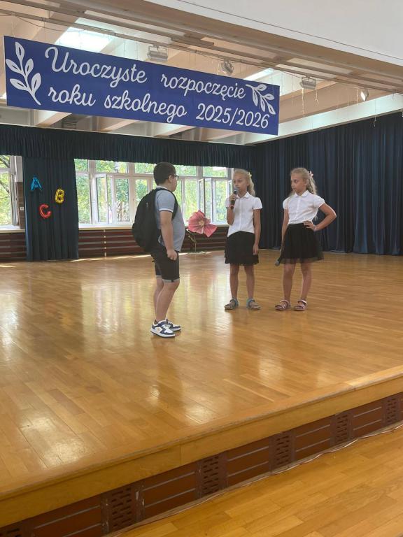 Poranne spotkanie uczniów klas starszych rozpoczęło się częścią artystyczną przygotowaną przez uczniów klas piątych. Rolę konferansjerów dzielne pełniły Anna Szulc i Natalia Kiełmińska z klasy 5C. Inscenizacja była pełna energii, radości i pozytywnego przekazu na nowy rok nauki. Niezwykle zaangażowane w przygotowanie tego wydarzenia były nauczycielki: Pani Monika Sobczyk, Pani Joanna Ciekalska oraz Pani Karolina Pawlik-Grajcar, które z pełnym profesjonalizmem i oddaniem zadbały o każdy szczegół występu. Podczas tej uroczystości uroczyście przywitano uczniów klas czwartych, którzy rozpoczęli nowy etap edukacji z nowymi wychowawcami: Panią Justyną Młotek (4a), Panią Małgorzatą Szpalą (4b) oraz Panem Michałem Bieniasem (4c).