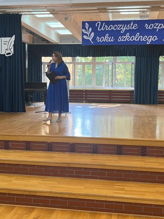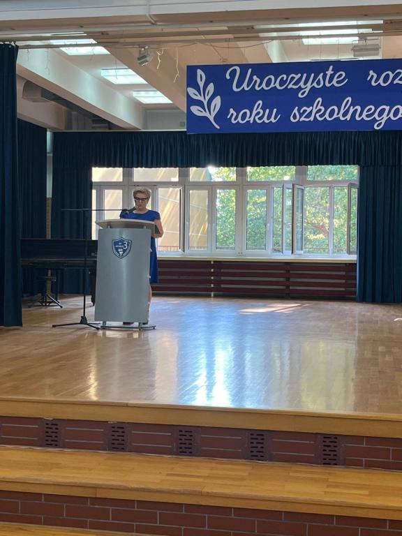 Wśród gości obecna była Pani Barbara Durkalec, która odczytała list od Burmistrza Ozimka – Pana Mirosława Wieszołka. W imieniu władz samorządowych przekazała uczniom, rodzicom i nauczycielom życzenia owocnego, bezpiecznego i pełnego inspiracji roku szkolnego.