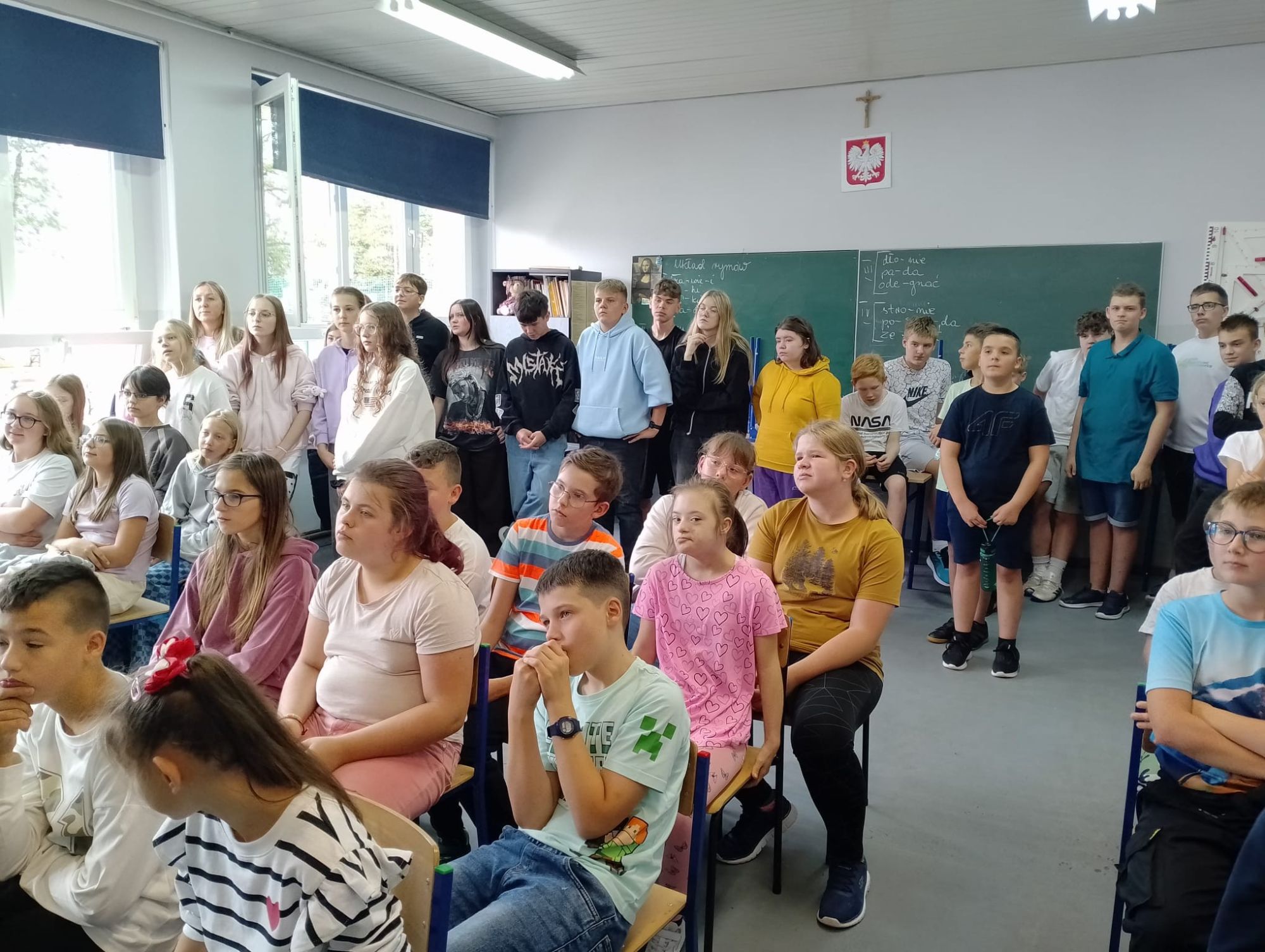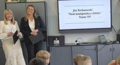 Nasza szkoła z dumą włączyła się w ogólnopolską akcję Narodowego Czytania 2025, której tegorocznym bohaterem była poezja Jana Kochanowskiego. To wyjątkowe wydarzenie, organizowane od wielu lat, ma na celu popularyzowanie polskiej literatury, budowanie wspólnoty poprzez czytanie oraz ukazywanie piękna ojczystego języka. Mieliśmy zaszczyt gościć panią Mariolę Kotulę, panią dyrektor Publicznej Szkoły Podstawowej w Dylakach, a zarazem mamę naszej uczennicy. Wraz z panią dyrektor Anną Gaszczyk zaprezentowały fragment Pieśni świętojańskiej o Sobótce – Panna XII. Uroczystość wzbogaciła prezentacja multimedialna z pracami plastycznymi uczniów klas IV–VIII. Młodzi artyści wykazali się ogromną pomysłowością, tworząc ilustracje oddające treść i atmosferę dzieła Kochanowskiego. Całe przedsięwzięcie zostało przygotowane przez p. Iwonę Kukuczkę-Mielczarek i p. Patrycję Pikos.