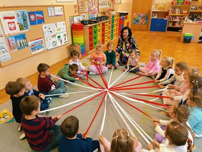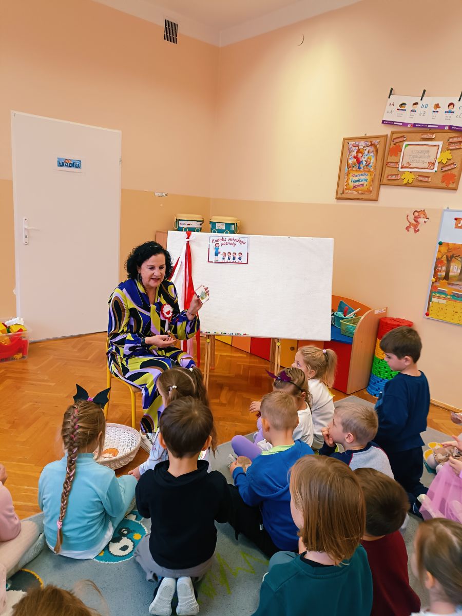 3 listopada 2025r.odwiedziła Przedszkole Publiczne Nr 1 w Ozimku , grupę Tygrysków pani Grażyna Świercz-bibliotekarka z Publicznej Szkoły Podstawowej Nr 1 w Ozimku.Za pomocą teatrzyku kamishibai przedstawiła dzieciom Legendę o powstaniu państwa polskiego –„O Lechu, Czechu i Rusie” Następnie zaprosiła przedszkolaki do quizu na temat państwa polskiego, tworzenia „Kodeksu małego patrioty” oraz odtańczenia fantazyjnego mazurka. Po zajęciach dzieci zostały nagrodzone słodkim upominkiem. Przedszkolaki wręczyły laurkę pani Grażynce w ramach podziękowań za kreatywne i bardzo pouczające zajęcia.