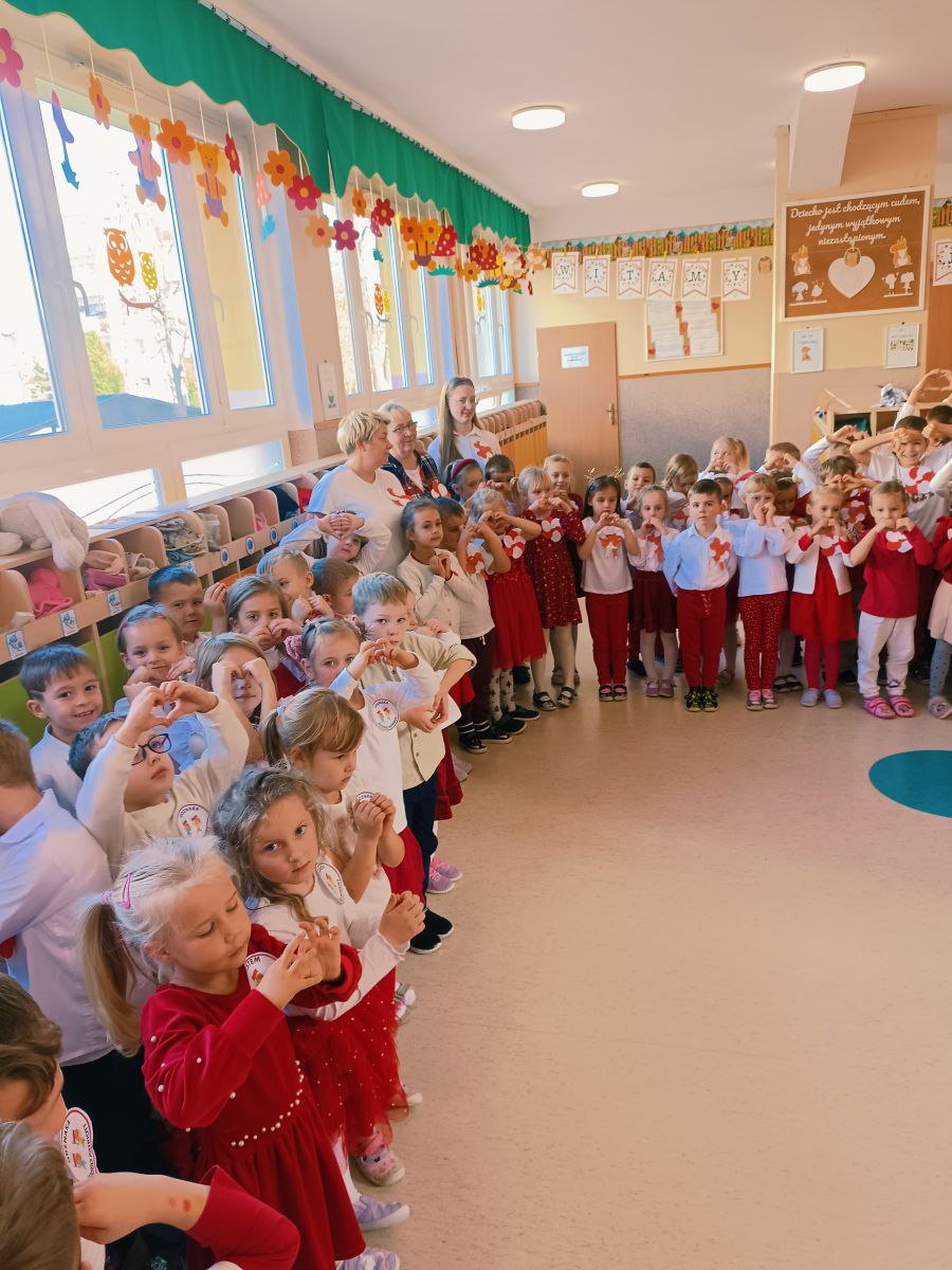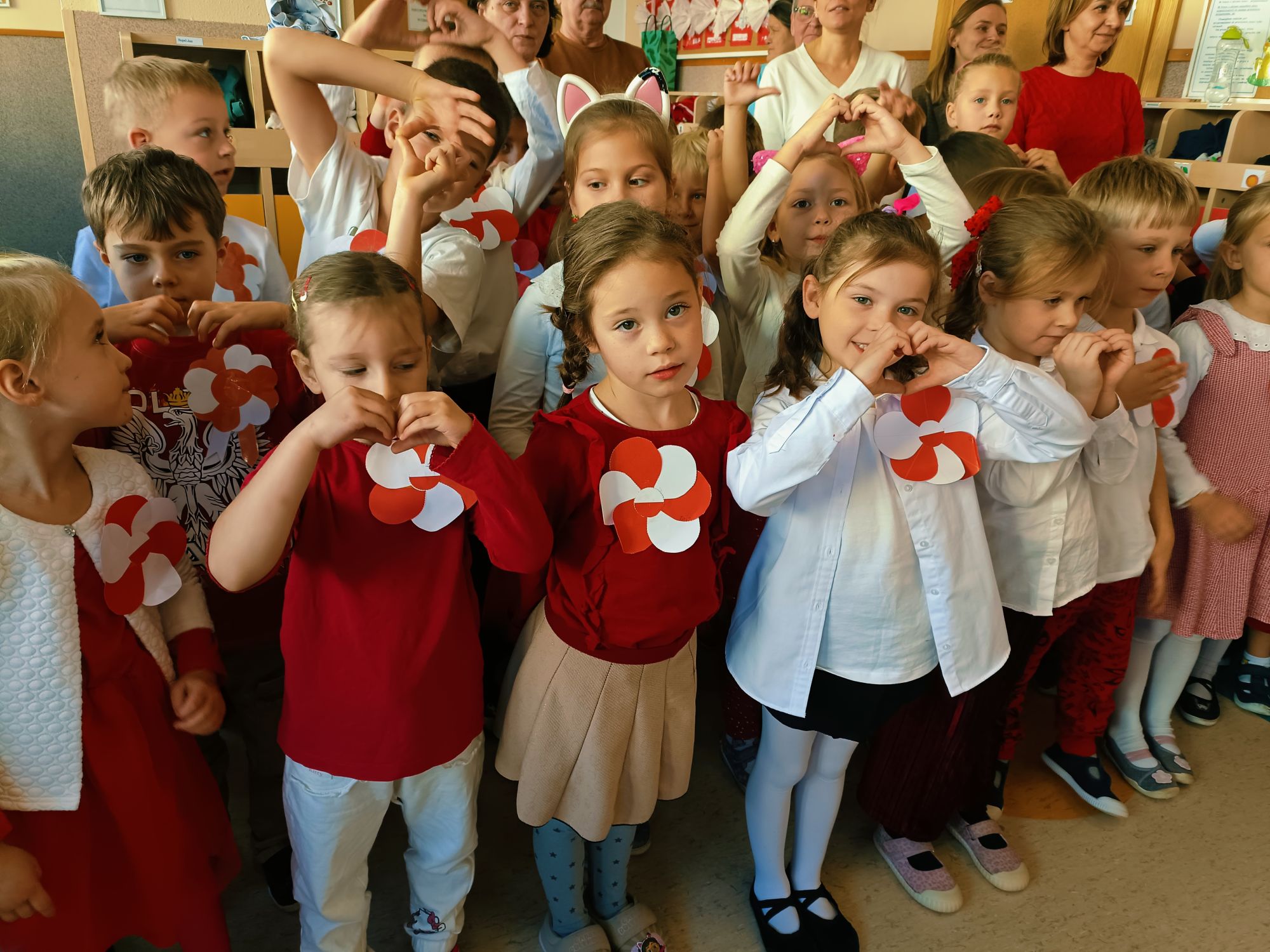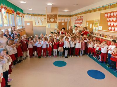 Dnia 7 listopada 2025 roku Przedszkole Publiczne Nr 1 w Ozimku wzięło udział w Ogólnopolskiej Akcji „Szkoła do Hymnu”. Jest to akcja ogłoszona przez Ministerstwo Edukacji i Nauki, polegająca na odśpiewaniu hymnu państwowego.Dokładnie o symbolicznej godzinie 11:11 wszystkie przedszkolaki z naszego przedszkola oraz wszyscy pracownicy uroczyście odśpiewali hymn narodowy „Mazurka Dąbrowskiego”. Dzieci pamiętały tego dnia o uroczystym ubiorze, prawidłowej postawie podczas śpiewu. Udział w akcji jest jednym z wielu działań podejmowanym w naszym przedszkolu, mającym na celu kształtowanie wśród wychowanków postawy patriotycznej, poczucia świadomości narodowej.
