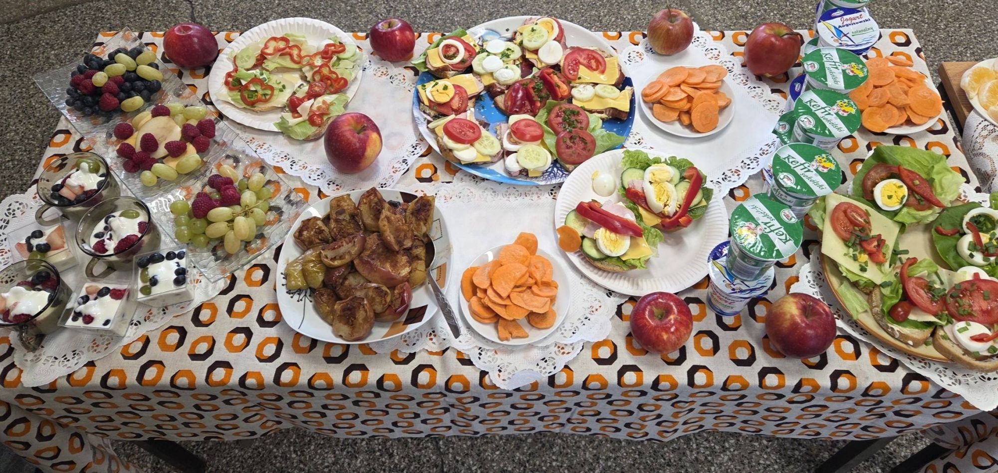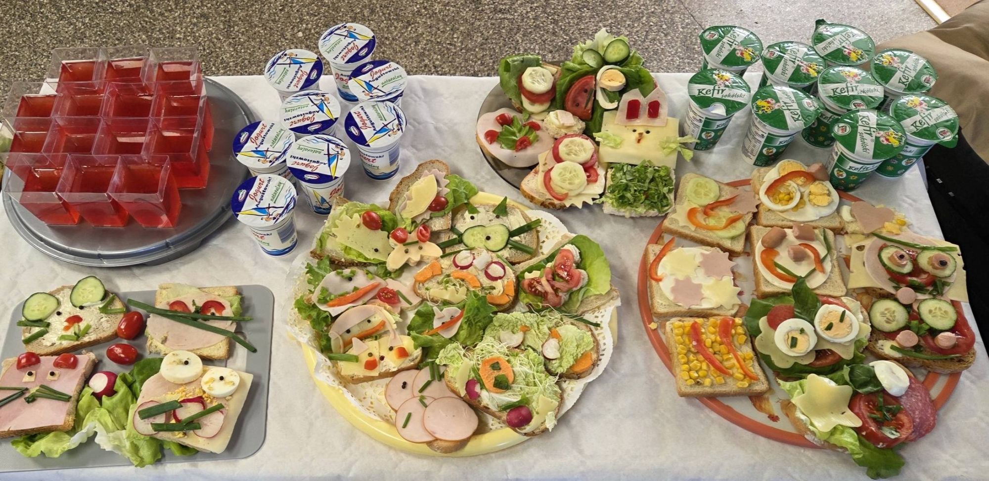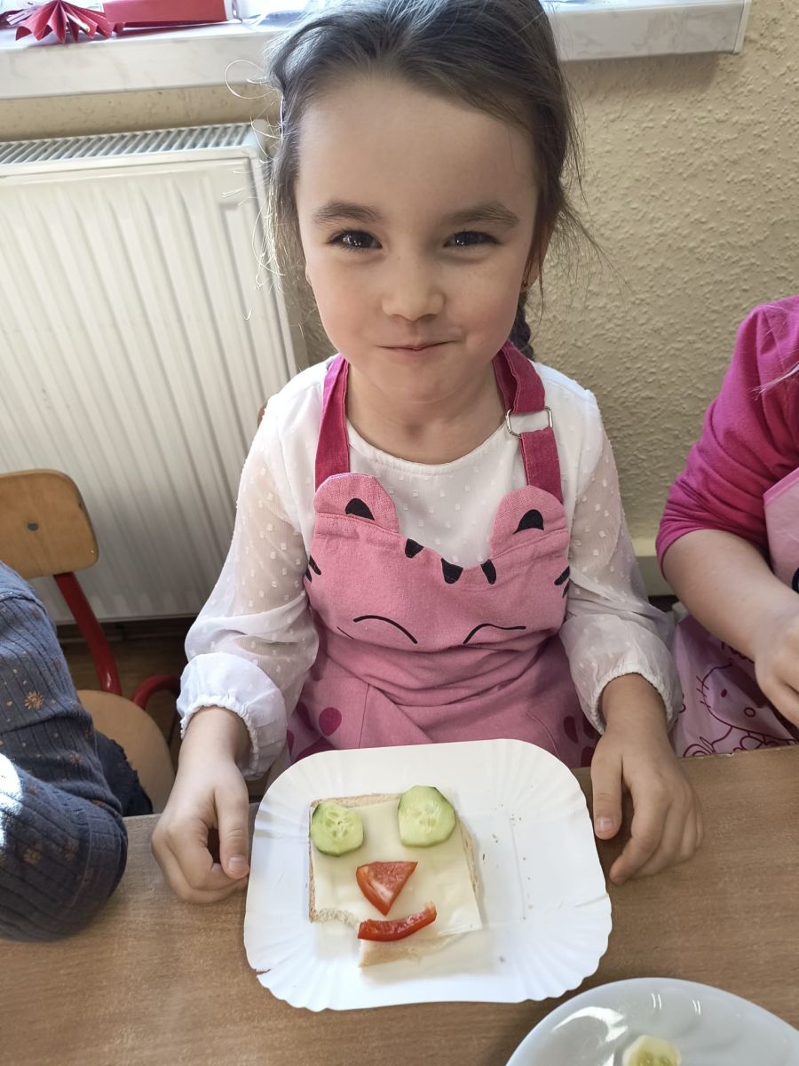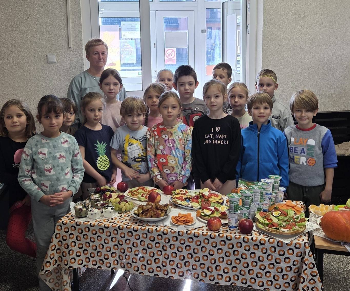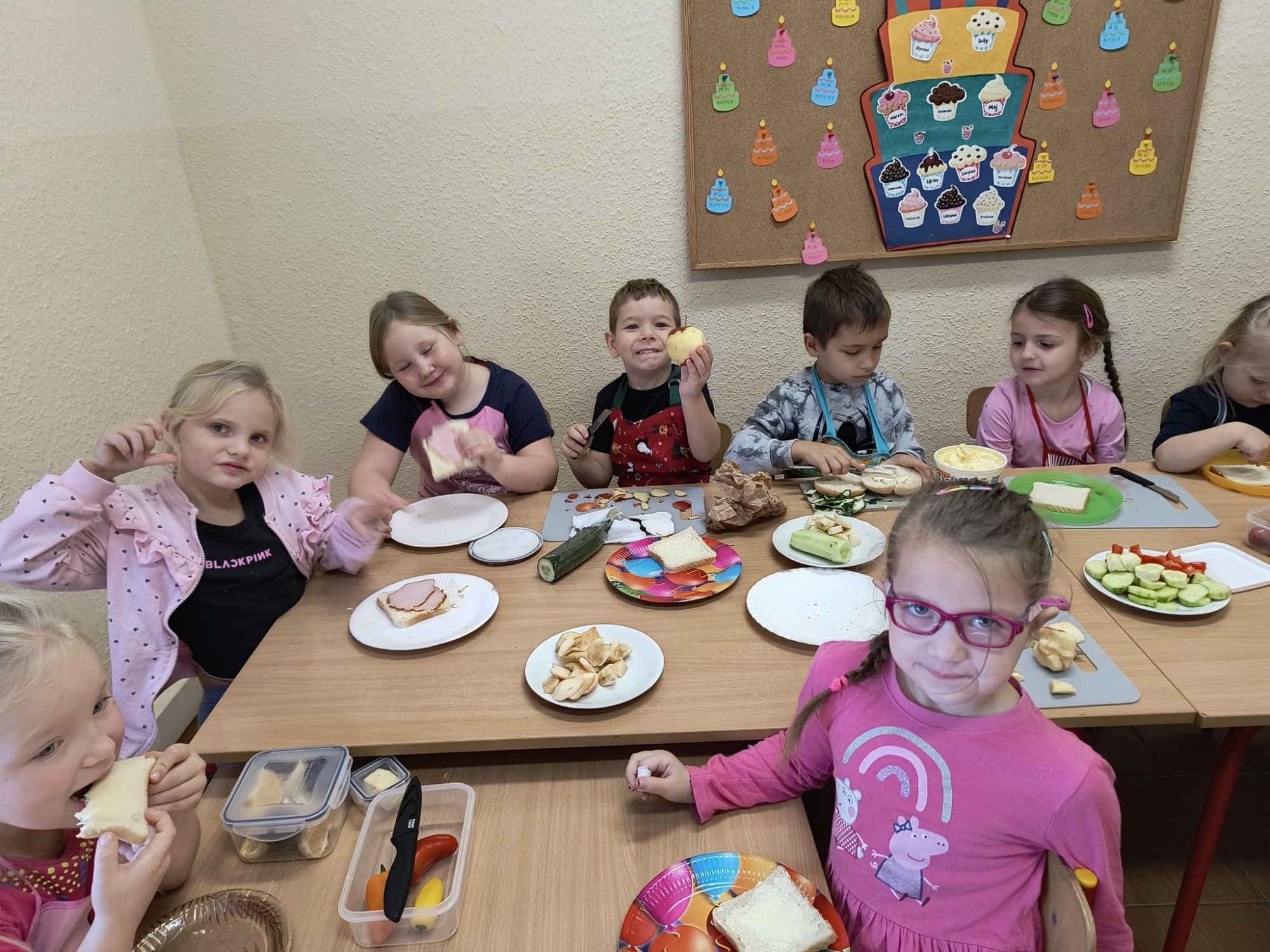 W piątek w naszej szkole odbyła się akcja „Śniadanie Daje Moc”, która jest częścią edukacyjnego programu promującego zdrowe odżywianie. Jak wszyscy wiemy – śniadanie to najważniejszy posiłek dnia! To właśnie ono daje nam energię do nauki, poprawia koncentrację i zapewnia siłę do zabawy. Wszystko zaczęło się już dwa tygodnie temu, kiedy uczniów odwiedziła pani Beata – pielęgniarka szkolna, która zapoznała ich z Piramidą Zdrowego Odżywiania i Aktywności Fizycznej. Opowiedziała, jakie produkty warto jeść najczęściej, a które należy ograniczać. W kolejnych dniach uczniowie uczestniczyli w cyklu zajęć takich jak: „Jak się zdrowo odżywiać?”, „Po co nam witaminy?”, „Jak nie marnować jedzenia?”. Zwieńczeniem całego cyklu była właśnie dzisiejsza akcja „Śniadanie Daje Moc”. Po omówieniu zasad bezpieczeństwa uczniowie z ogromnym entuzjazmem zabrali się do przygotowywania zdrowych potraw. Dzięki zaangażowaniu rodziców, którzy dostarczyli mnóstwo świeżych i pysznych produktów, stoły wypełniły się kolorowymi kanapkami, owocowymi galaretkami, deserkami i pieczonymi jabłkami. Zapach świeżego pieczywa i owoców roznosił się po całej szkole – trudno było nie zgłodnieć! Ten dzień to również jeden z ulubionych dni w naszym oddziale przedszkolnym! Tego dnia wszyscy razem przygotowujemy wspólne, kolorowe i pyszne śniadanie. Dzieci z radością kroją, smarują, układają i pomagają sobie nawzajem. Nie zabrakło też ciekawych pomysłów – najmłodsi tworzyli własne, oryginalne kanapki z owocami, a na niektórych pojawiły się nawet wesołe buźki! Wspólne śniadanie to nie tylko okazja do spróbowania nowych smaków, ale też do rozmów, śmiechu i integracji. Dzieci uczą się, że zdrowe jedzenie może być smaczne, kolorowe i wesołe – zwłaszcza, gdy przygotowujemy je razem! To był dzień pełen radości, zdrowych smaków i pozytywnej energii – bo przecież Śniadanie naprawdę Daje Moc! Serdecznie dziękujemy Rodzicom za pomoc i wsparcie w organizacji tego wyjątkowego dnia! Po takim śniadaniu nasze przedszkolaki, jak i nasi uczniowie mieli mnóstwo siły i energii, by z radością podejmować kolejne wyzwania!