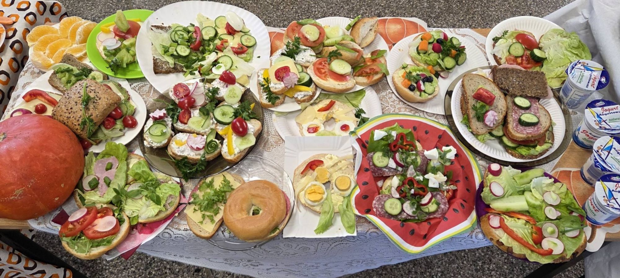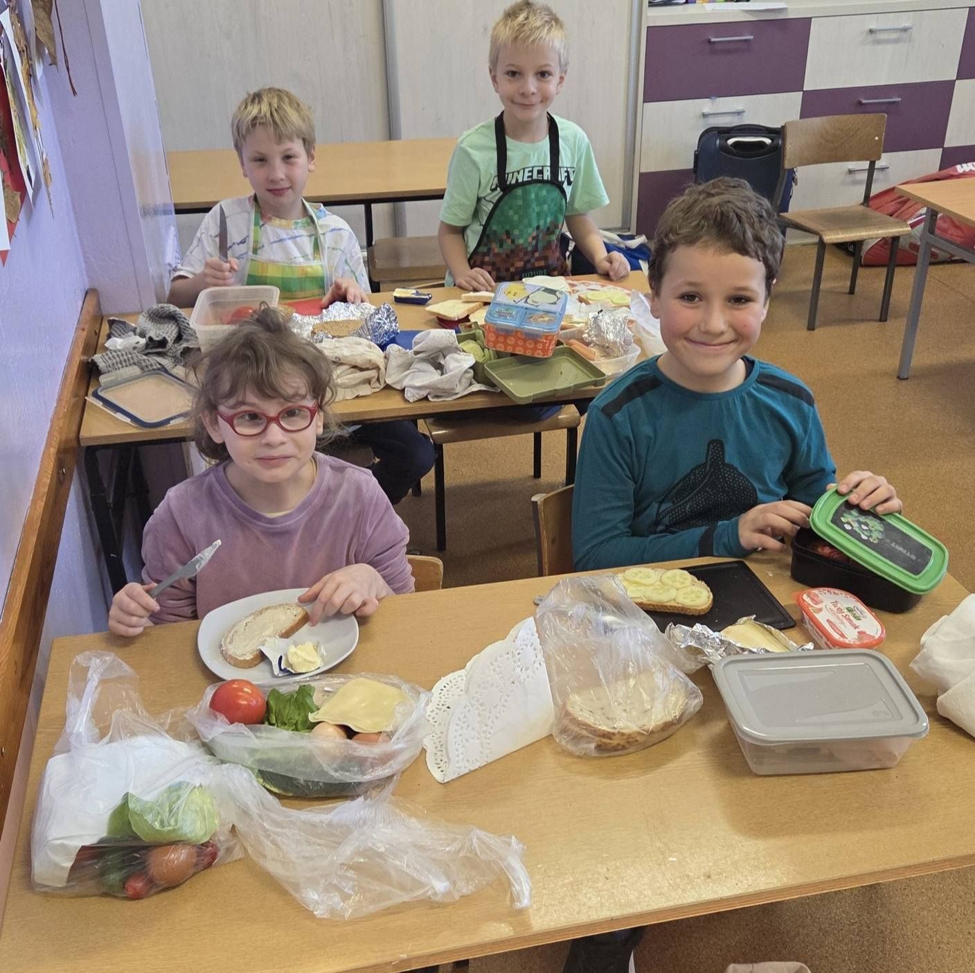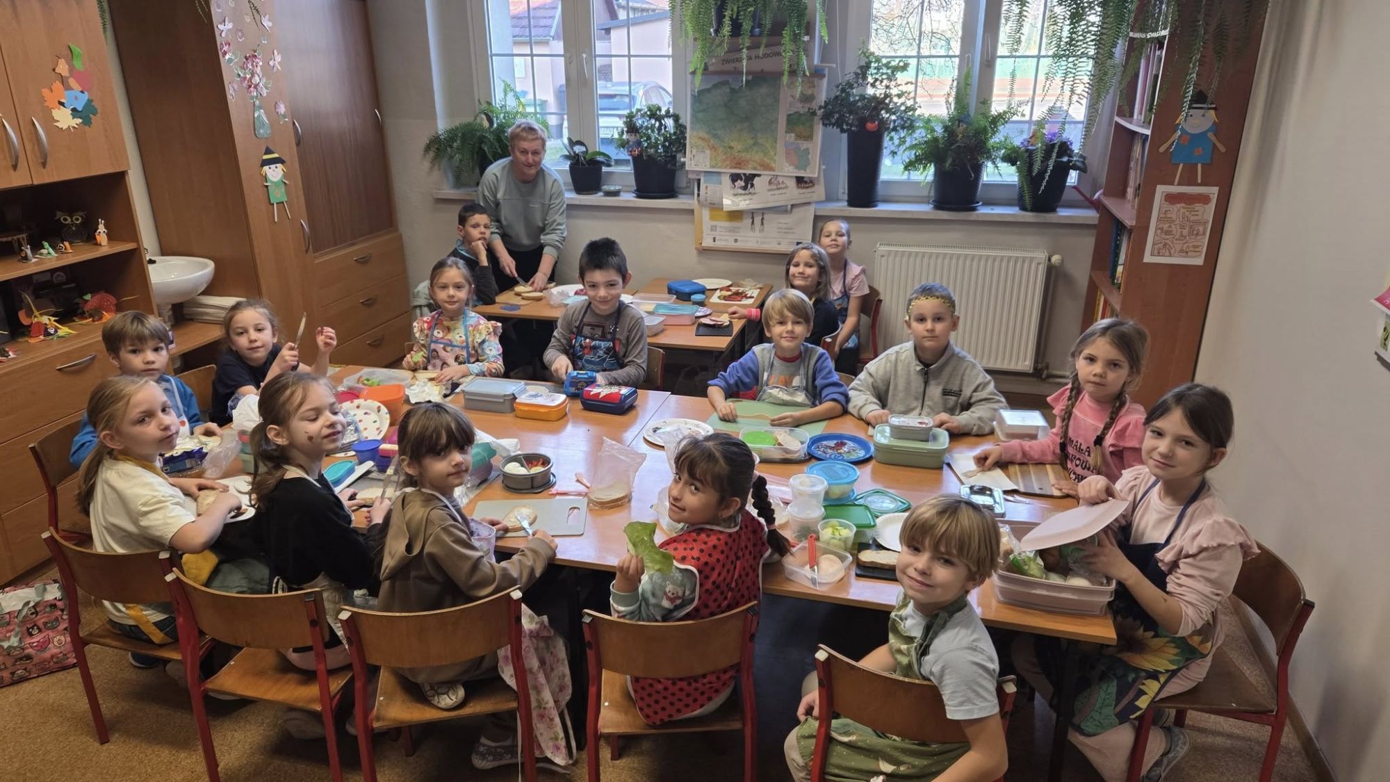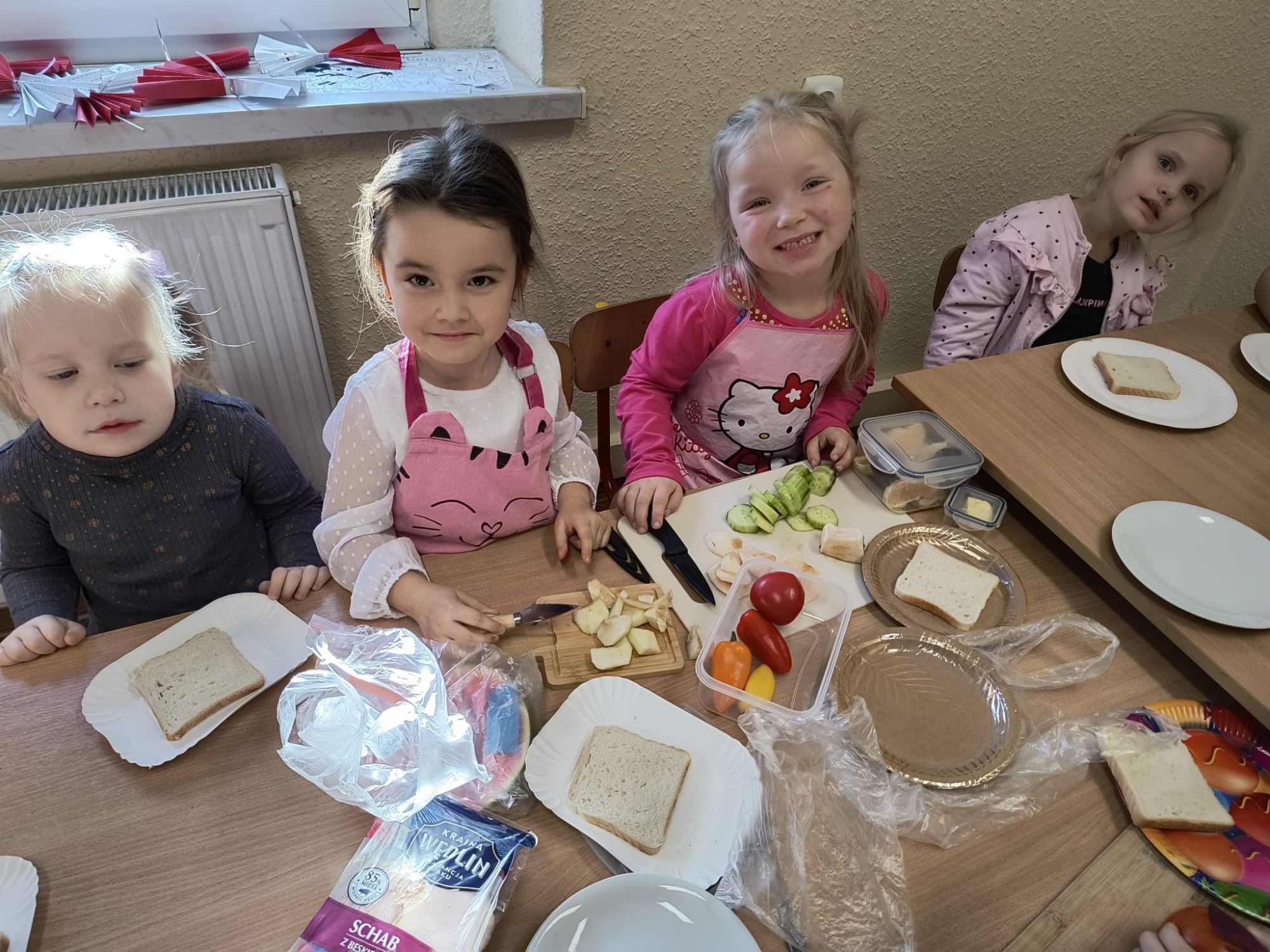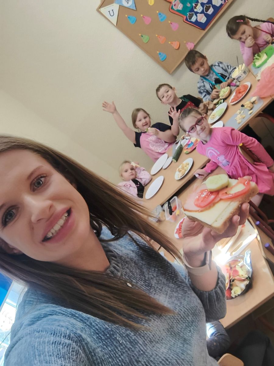W piątek w naszej szkole odbyła się akcja „Śniadanie Daje Moc”, która jest częścią edukacyjnego programu promującego zdrowe odżywianie. Jak wszyscy wiemy – śniadanie to najważniejszy posiłek dnia! To właśnie ono daje nam energię do nauki, poprawia koncentrację i zapewnia siłę do zabawy. Wszystko zaczęło się już dwa tygodnie temu, kiedy uczniów odwiedziła pani Beata – pielęgniarka szkolna, która zapoznała ich z Piramidą Zdrowego Odżywiania i Aktywności Fizycznej. Opowiedziała, jakie produkty warto jeść najczęściej, a które należy ograniczać. W kolejnych dniach uczniowie uczestniczyli w cyklu zajęć takich jak: „Jak się zdrowo odżywiać?”, „Po co nam witaminy?”, „Jak nie marnować jedzenia?”. Zwieńczeniem całego cyklu była właśnie dzisiejsza akcja „Śniadanie Daje Moc”. Po omówieniu zasad bezpieczeństwa uczniowie z ogromnym entuzjazmem zabrali się do przygotowywania zdrowych potraw. Dzięki zaangażowaniu rodziców, którzy dostarczyli mnóstwo świeżych i pysznych produktów, stoły wypełniły się kolorowymi kanapkami, owocowymi galaretkami, deserkami i pieczonymi jabłkami. Zapach świeżego pieczywa i owoców roznosił się po całej szkole – trudno było nie zgłodnieć! Ten dzień to również jeden z ulubionych dni w naszym oddziale przedszkolnym! Tego dnia wszyscy razem przygotowujemy wspólne, kolorowe i pyszne śniadanie. Dzieci z radością kroją, smarują, układają i pomagają sobie nawzajem. Nie zabrakło też ciekawych pomysłów – najmłodsi tworzyli własne, oryginalne kanapki z owocami, a na niektórych pojawiły się nawet wesołe buźki! Wspólne śniadanie to nie tylko okazja do spróbowania nowych smaków, ale też do rozmów, śmiechu i integracji. Dzieci uczą się, że zdrowe jedzenie może być smaczne, kolorowe i wesołe – zwłaszcza, gdy przygotowujemy je razem! To był dzień pełen radości, zdrowych smaków i pozytywnej energii – bo przecież Śniadanie naprawdę Daje Moc! Serdecznie dziękujemy Rodzicom za pomoc i wsparcie w organizacji tego wyjątkowego dnia! Po takim śniadaniu nasze przedszkolaki, jak i nasi uczniowie mieli mnóstwo siły i energii, by z radością podejmować kolejne wyzwania!