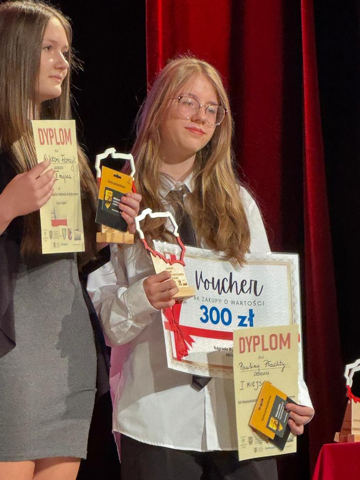 Natomiast w kategorii wokalnej konkursu 1 miejsce zajęła Emilia Mamrot z klasy III, a wyróżnienie otrzymała Antonina Pytel z klasy IVb. Gratulujemy naszym Solistkom i życzymy dalszych wspaniałych sukcesów.