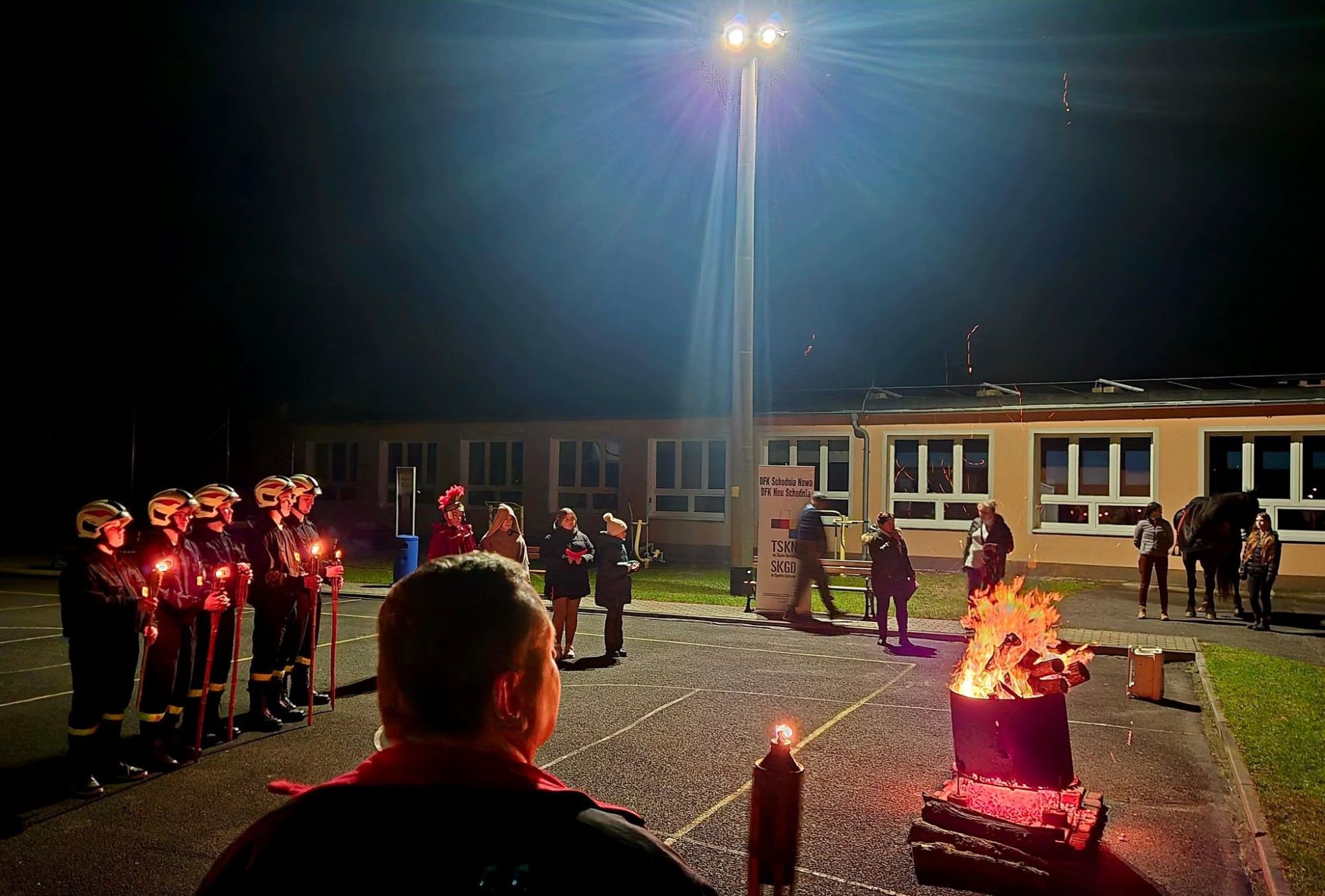 To wyjątkowe wydarzenie zgromadziło licznych mieszkańców Nowej Schodni, a w szczególności dzieci oraz całą społeczność szkolną. Uroczystość rozpoczęła się tradycyjnie od mszy świętej odprawionej przez księdza Dominika Sowę. Następnie, w blasku lampionów i pochodni, przy dźwiękach orkiestry dętej, wszyscy przeszli ulicami Nowej Schodni aż na plac przy Szkole Podstawowej nr 2 w Ozimku. Wśród gości był pan Marcin Widera - Zastępca Burmistrza Ozimka, pan Antoni Gryc i pan Zygmunt Olbryt. Na miejscu odbyła się piękna inscenizacja przygotowana przez uczniów naszej szkoły, która zachwyciła wszystkich zgromadzonych gości. Dzieci z zaangażowaniem przedstawiły historię Świętego Marcina – symbolu dobroci, empatii i dzielenia się z potrzebującymi. Na wszystkich czekały przepyszne rogale świętomarcińskie oraz wiele zabaw przy ognisku. Serdeczne podziękowania kierujemy do wszystkich, z którymi mogliśmy dziś zorganizować to wydarzenie: DFK Nowa Schodnia, Sołtysa i Rady Sołeckiej, Strażaków z OSP Schodnia, którzy czuwali nad bezpieczeństwem uczestników podczas przemarszu. To był wyjątkowy dzień pełen radości, wspólnego świętowania i pielęgnowania pięknych tradycji.