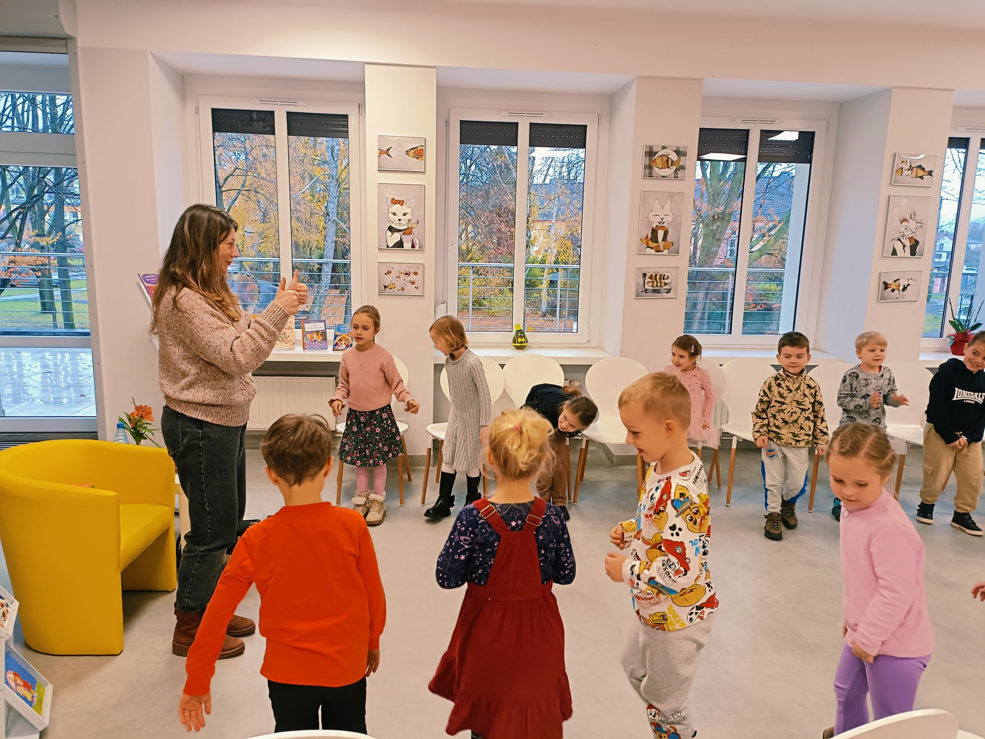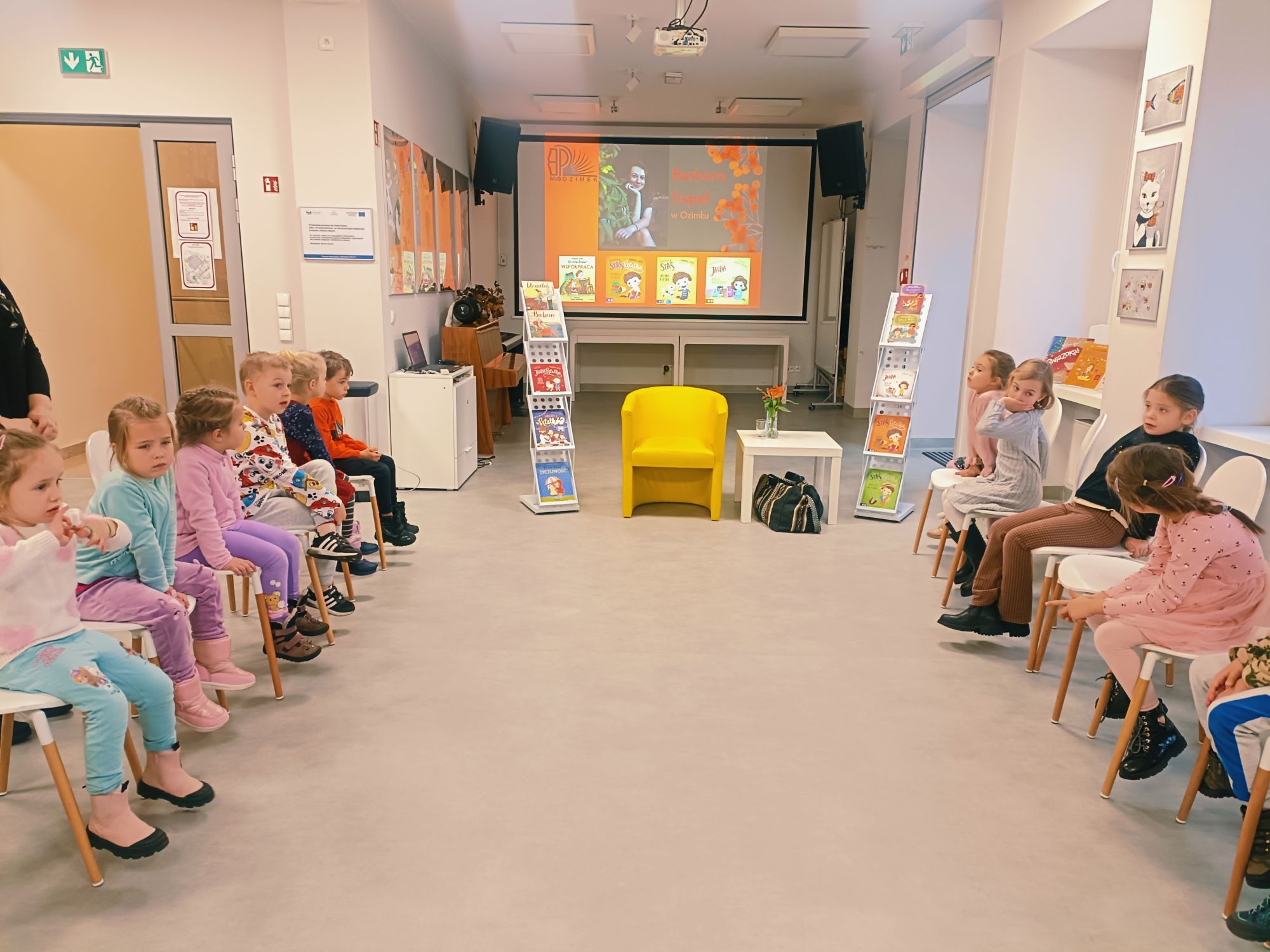 Dnia 17 listopada 2025r.przedszkolaki z Przedszkola Publicznego Nr 1 w Ozimku mieli ogromną przyjemność uczestniczyć w Bibliotece dziecięcej w Domu Kultury w Ozimku w spotkaniu autorskim - autorki książek dla dzieci Barbary Supeł. Pani Basia Supeł jest autorką jednej z najpopularniejszych serii książek o przygodach Jadzi Pętelki i jej brata Stasia. Uczestnicy spotkania mieli okazję wysłuchać fragmentów książek czytanych przez samą autorkę oraz poznać tajniki tworzenia historii zawartych w jej książkach. Pisarka zdradziła dzieciom, skąd czerpie pomysły do pisania utworów. Uczestnicy spotkania wzięli także udział w zabawach zaproponowanych przez naszego gościa. Spotkanie upłynęło w miłej, radosnej atmosferze, a dzieci nagrodziły pisarkę gromkimi brawami oraz podziękowaniem wykonanym przez dzieci. Możliwość spotkania na żywo autora ulubionych książek to duże przeżycie dla dzieci, które zostaje z nimi na długo. Takie spotkanie to również wspaniała okazja do zachęcenia dzieci do sięgania po książki i rozwijania w nich pasji do czytania.