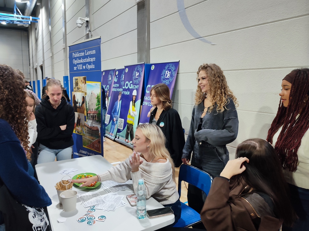 W poniedziałek, 17 listopada br., uczniowie klasy ósmej mieli okazję porozmawiać ze swoimi nieco starszymi koleżankami i kolegami ze szkół ponadpodstawowych. W ogromnej hali Toyota Park w Opolu odbył się " Piknik edukacyjny". Wiele szkół średnich z województwa przygotowało swoje stoiska, na których było można znaleźć ulotki, foldery i przeróżne informacje dotyczące tych szkół. Ósmoklasiści mogli porozmawiać z uczniami, niektórzy z nich byli absolwentami naszej JEDYNKI. Były występy i pokazy umiejętności licealistów, a także pyszne przekąski. Czy nasza młodzież już się zdecydowała na wybór szkoły? Okazuje się, że niektórzy tak, a inni jeszcze się zastanawiają. Dobrze, że mogą zapoznać się z bogatą ofertą szkół średnich.