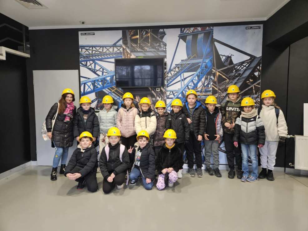 Wycieczka klas 4A i 4B do kopalni Guido- pełna emocji i wrażeń! Uczniowie klas 4a i 4b wybrali się dziś na wyjątkową wycieczkę pod opieką swoich wychowawców: pani Alesii Asmuskiny – wychowawczyni klasy 4a, pana Marka Kaziaka – wychowawcy klasy 4b oraz pani Karoliny Stręk – nauczyciela współorganizującego w klasie 4b. Już na początku dzieci z radością wybierały swoje pamiątki związane z kopalnią. Następnie dołączyła do nas pani przewodnik, która pomogła uczniom założyć kaski i przygotowała wszystkich do zjazdu, wprowadzając od razu ciepłą, ale pełną ciekawości atmosferę. Zjazd windą w dół dostarczył mnóstwa emocji — konstrukcja zatrzymywała się na każdym poziomie i lekko drżała, co wywoływało u dzieci dreszczyk ekscytacji i poczucie prawdziwej górniczej przygody. Na dole rozpoczęło się prawdziwe zwiedzanie. Pani przewodnik opowiadała o dawnych maszynach i ciężkiej pracy górników. Uczniowie mogli także zobaczyć manekina górnika Karola, który dzięki śpiewowi kanarka wiedział, ile tlenu znajduje się pod ziemią i czy praca w danym miejscu jest bezpieczna. Ogromne wrażenie zrobiła na dzieciach przejażdżka wagonikami kolejowymi, a tuż po niej pojawił się… Skarbnik! W żartobliwy sposób próbował wprowadzić odrobinę tajemnicy i delikatny dreszczyk grozy, opowiadając, że od wielu lat chodzi po kopalni. Na koniec jednak obdarował wszystkie dzieci bombonem – śląskim cukierkiem – i rozweselił całą grupę. Uczniowie otrzymali także pamiątkową kostkę zręcznościową, która od razu wywołała emocje i lekką rywalizację. Przed wyjazdem na powierzchnię zatrzymaliśmy się w górniczym barku, gdzie każdy mógł się posilić i napić. Następnie czekał nas kolejny emocjonujący przejazd windą w górę. Po wyjściu udaliśmy się na warsztaty, podczas których uczniowie tworzyli swoje własne torbo-plecaki przy użyciu przygotowanych szablonów i kolorowych pisaków. Ostatnim etapem i chyba największą atrakcją okazał się park trampolin Happy Jumper, gdzie dzieci mogły skakać, robić salta, przewroty, odbijać się od ścian, pokonywać miękkie tory przeszkód i lądować w basenie z piankami. Na zakończenie pełnego wrażeń dnia udaliśmy się na zasłużony posiłek do KFC. Wróciliśmy zmęczeni, ale szczęśliwi — zarówno uczniowie, jak i nauczyciele. To był naprawdę wspaniały dzień!A