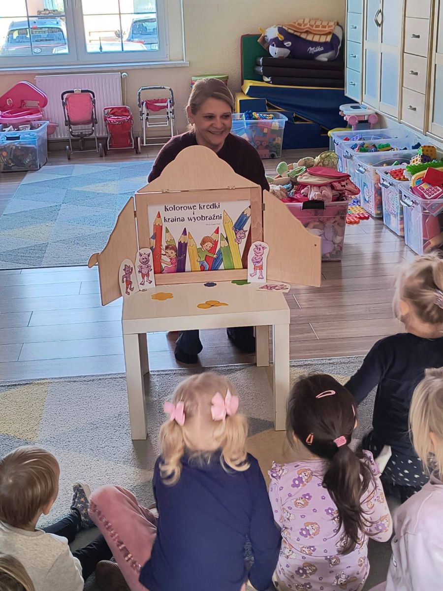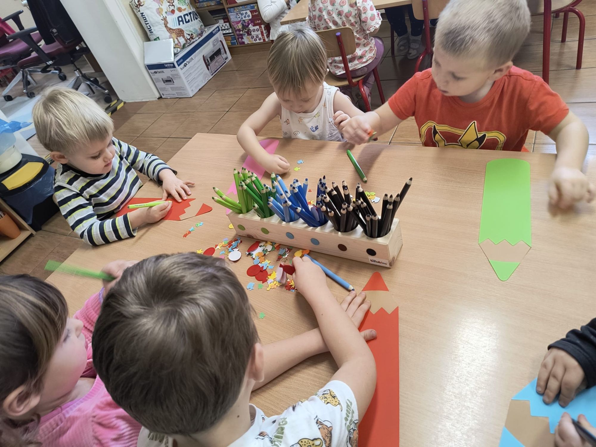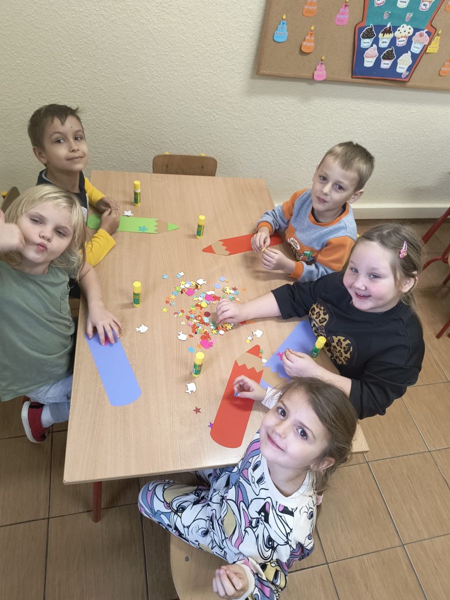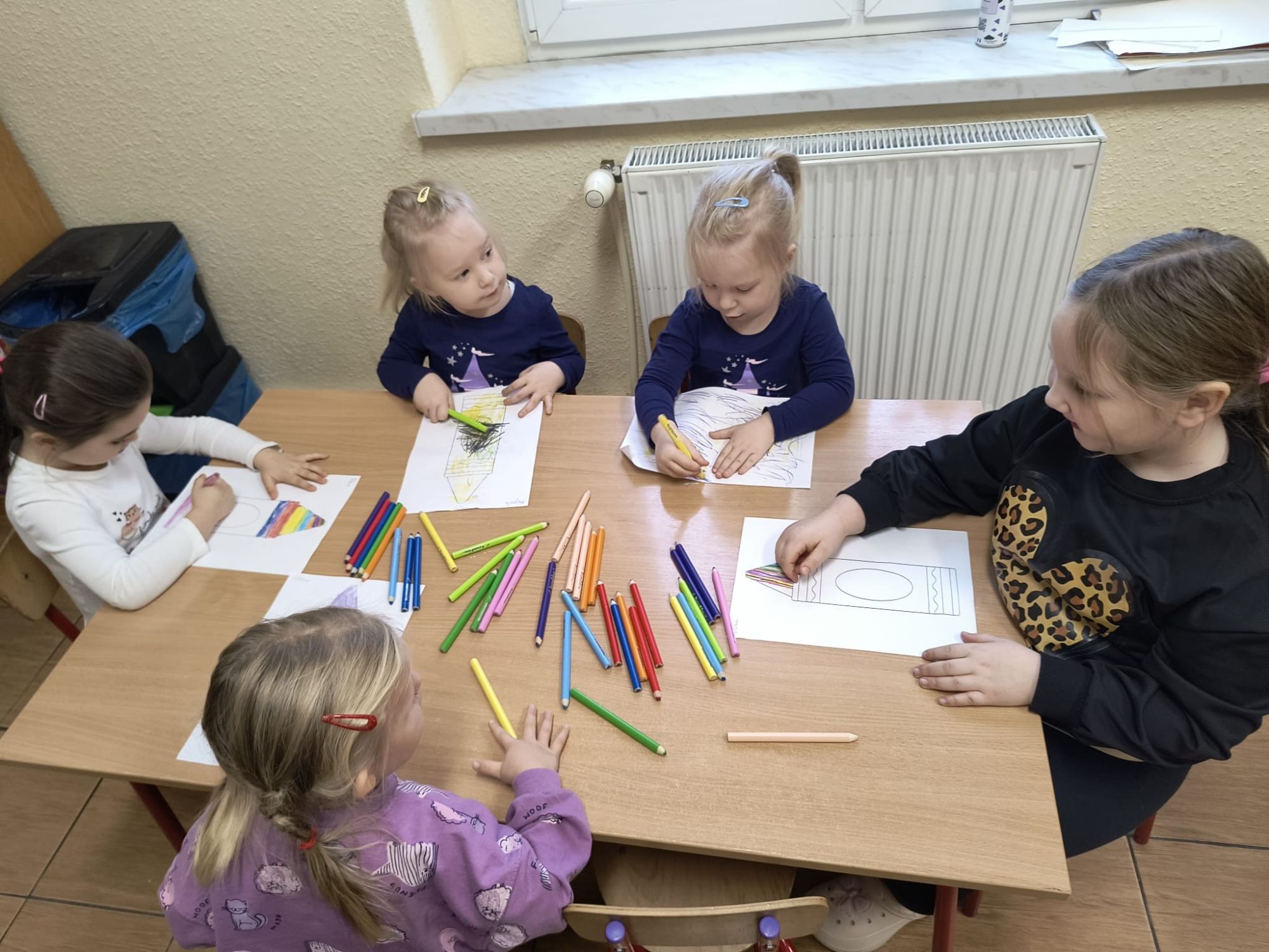 W minionym tygodniu w naszym przedszkolu świętowaliśmy Dzień Kredki – jedno z naszych ulubionych, pełnych kolorów i twórczej zabawy wydarzeń! Dzieci wykonały piękne prace plastyczne, wykazując się ogromną wyobraźnią i talentem. Każda kredka zamieniła się w narzędzie magicznego tworzenia, a sala w prawdziwą pracownię małych artystów. W rytm dobrze wszystkim znanej piosenki „Kolorowe kredki” przedszkolaki brały udział w zabawach muzyczno-ruchowych, wykonując ćwiczenia powiązane z wybranymi kolorami oraz odnajdując w sali przedmioty w odpowiadających im barwach. Było dużo ruchu, śmiechu i wspólnego odkrywania kolorowego świata! Z tej okazji odwiedziła nas także pani Agata z teatrzykiem kamishibai pt. „Kolorowe kredki i kraina wyobraźni”, zabierając dzieci w niezwykłą podróż pełną kolorów, opowieści i kreatywnej inspiracji.