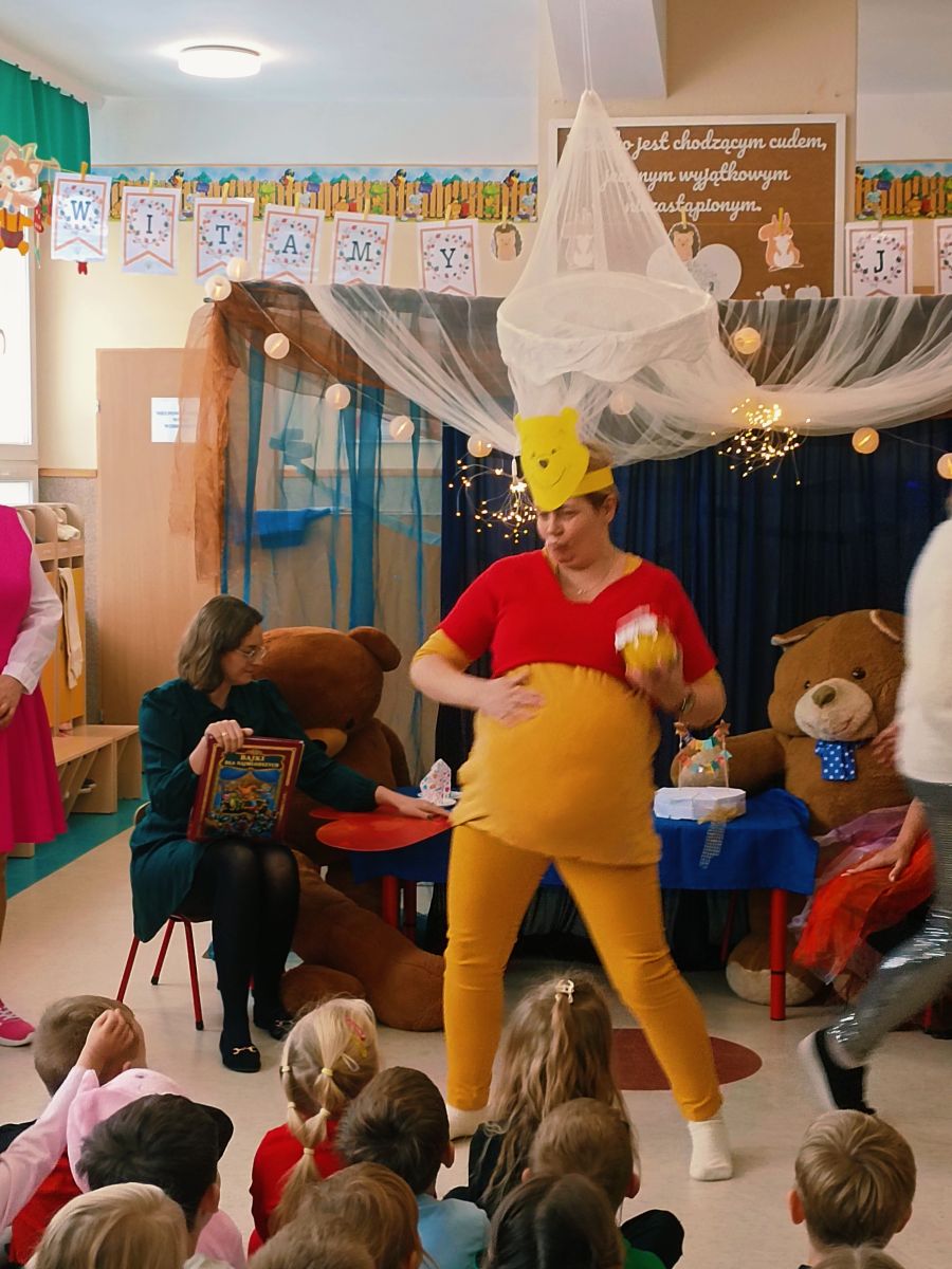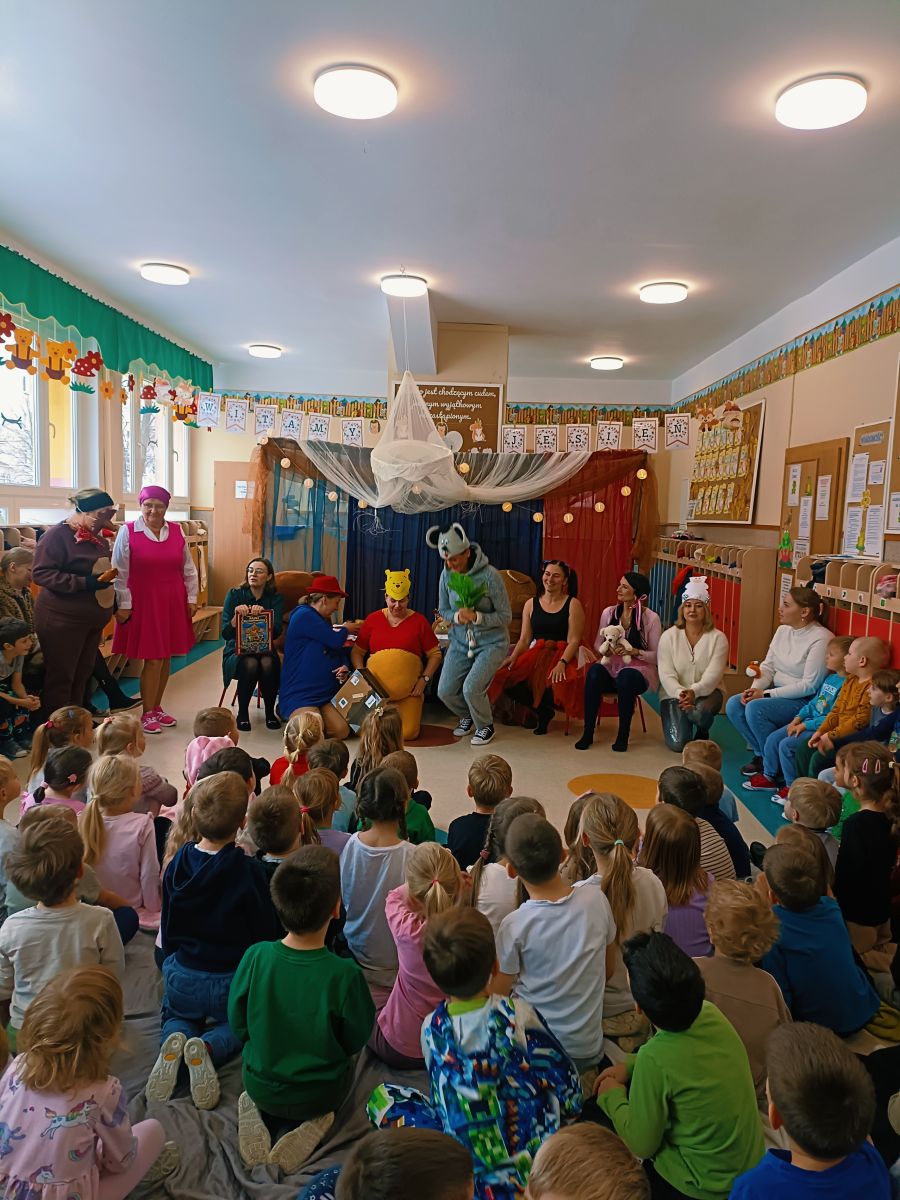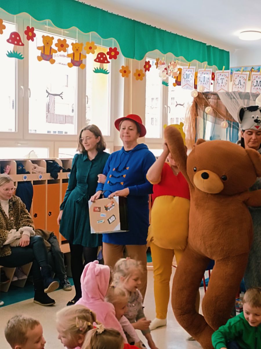 Z okazji zbliżającego się Święta Pluszowego Misia dnia 24 listopada 2025r. w Przedszkolu Publicznym Nr 1 w Ozimku kreatywni pracownicy przedszkola –nauczyciele , personel i niezawodna ekipa kuchni przedszkola stworzyli dla dzieci niesamowitą inscenizację „Urodziny Misia”. Pojawił się Kubuś Puchatek,Miś Uszatek,Biały Miś oraz inni bajkowi przyjaciele. Inscenizacji towarzyszyła znana i lubiana piosenka „Jadą,jadą misie… ”oraz jak na urodziny przystało gromkie sto lat odśpiewane przez wszystkich. Dzieci były zachwycone niespodzianką. Było dużo śmiechu ,ale także łzy wzruszenia. Aktorzy otrzymali gromkie brawa .Czego się nie robi dla naszych przedszkolaków…..