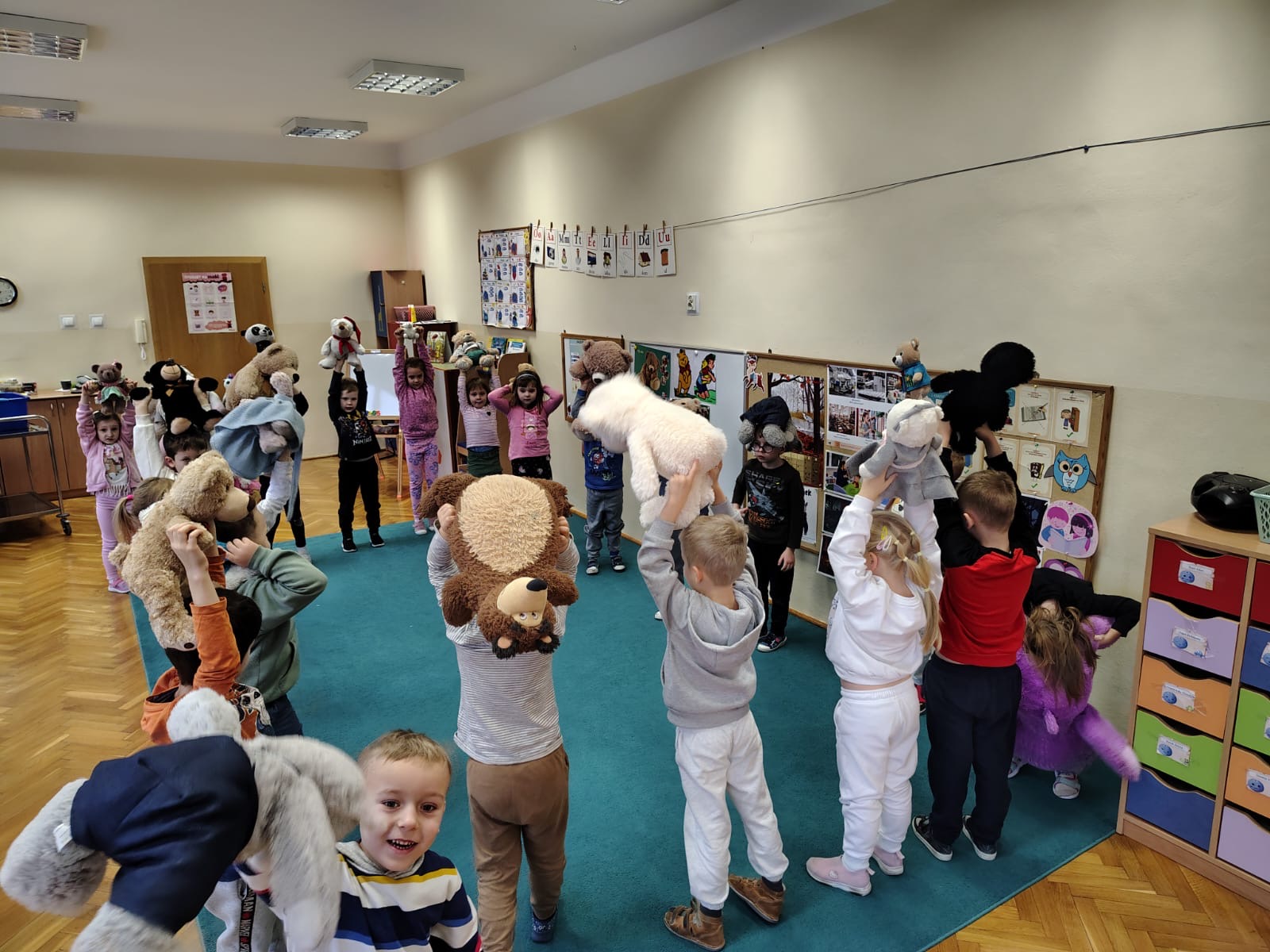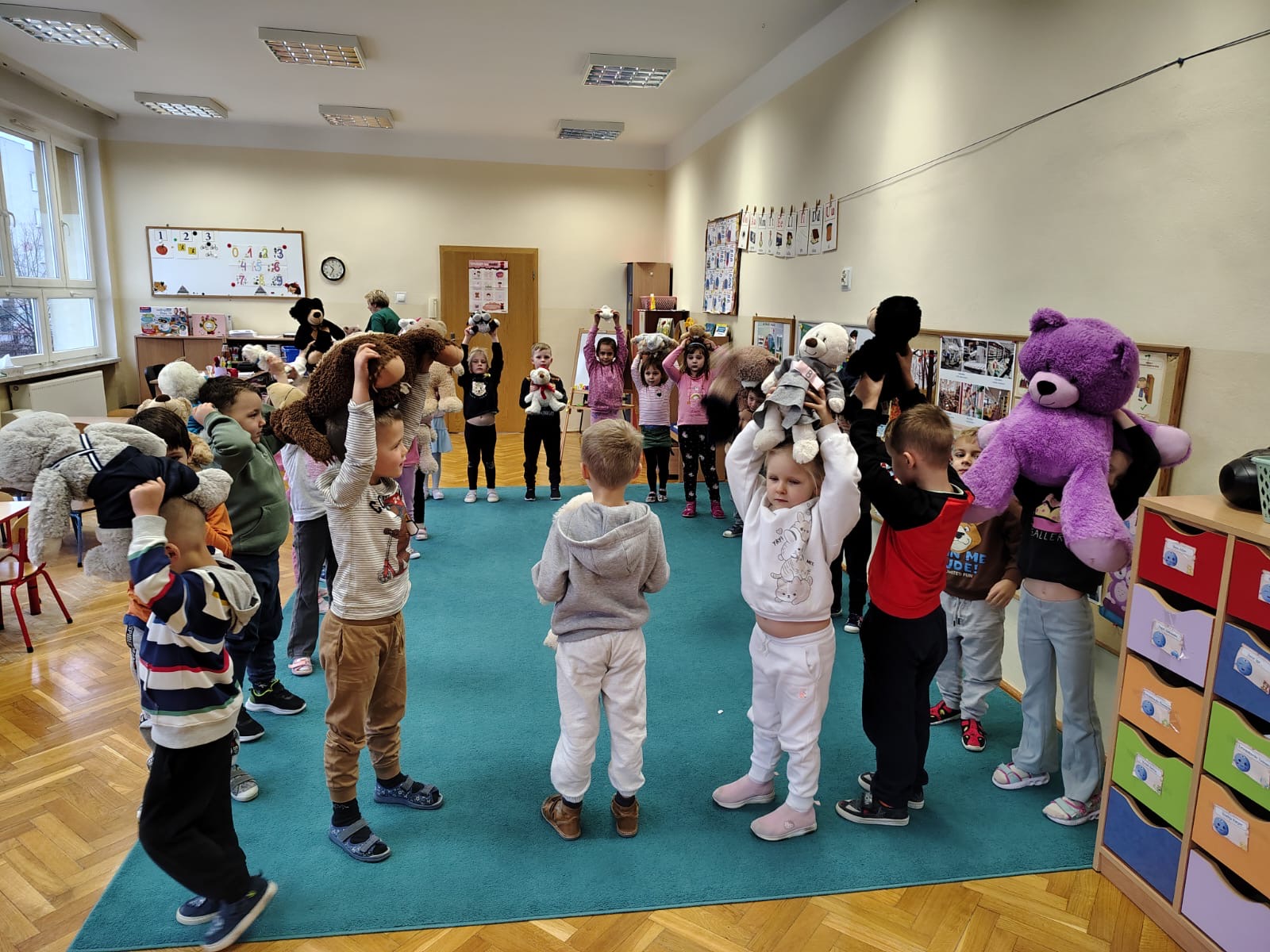 25 listopada 2025 r. obchodziliśmy w Publicznym Przedszkolu Nr 1 w Ozimku Dzień Pluszowego Misia. Tego dnia każdy przedszkolak przybył do przedszkola z misiem . Były wspólne zabawy, tańce z misiami, układanie misia z różnych części ciała, kreatywne prace plastyczne, wspólne zdjęcia przy misiowej fotobudce, zabawy z misiami w języku angielskim, a na koniec pałaszowanie misiowych ciasteczek upieczonych przez naszą wspaniałą kuchnię. Każda grupa przygotowała pracę plastyczną „Pluszowy miś” z wykorzystaniem innej techniki. Dzieci przygotowały kreatywne prace z wykorzystaniem misiowej włóczki, waty, koralików, kreatywnych pomponików, malowały widelcami oraz ozdabiały misia wg własnego pomysłu. Wszyscy wspaniale się bawili.