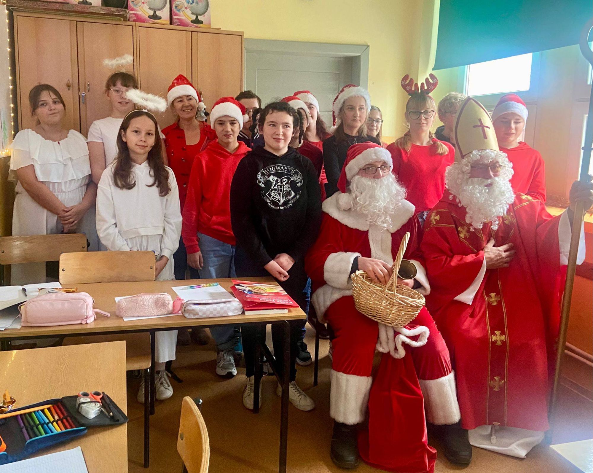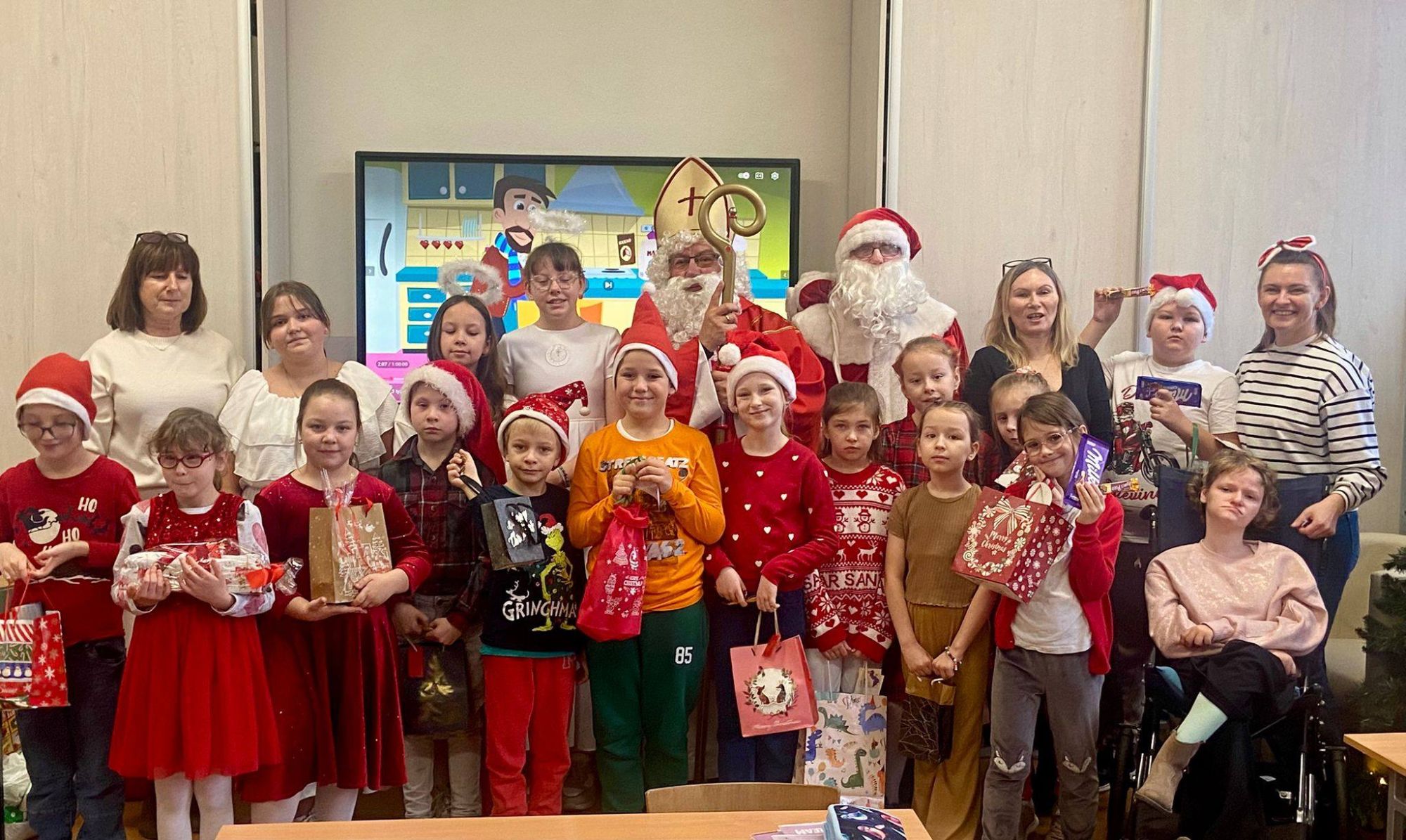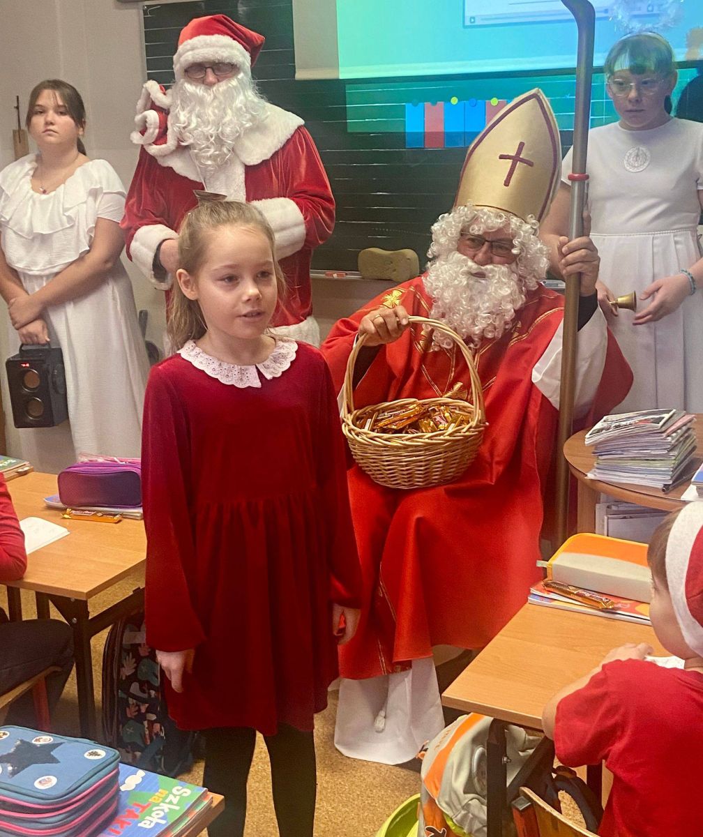 Ten dzień upłynął nam w wyjątkowo świątecznej atmosferze - pełen radości, życzliwości i szerokich uśmiechów! Chyba w naszej szkole są same grzeczne dzieci, bo wszystkie otrzymaly prezenty. Recytowano wiersze, śpiewano piosenki, a na koniec spotkania każda klasa zrobiła z Mikołajem pamiątkowe zdjęcie. Serdecznie dziękujemy naszemu szkolnemu Mikołajowi i jego pomocnikowi oraz wspaniałym Śnieżynkom z piątej klasy za zaangażowanie i stworzenie magicznej, świątecznej aury. Samorząd Uczniowski częstował wszystkich słodyczami, za które bardzo dziękujemy Pani Sołtys wsi Schodnia -Julicie Widerze oraz Radzie Rodziców, która zawsze bardzo chętnie wspiera finansowo nasze szkolne inicjatywy. To był naprawdę piękny, pełen dobroci! dzień
