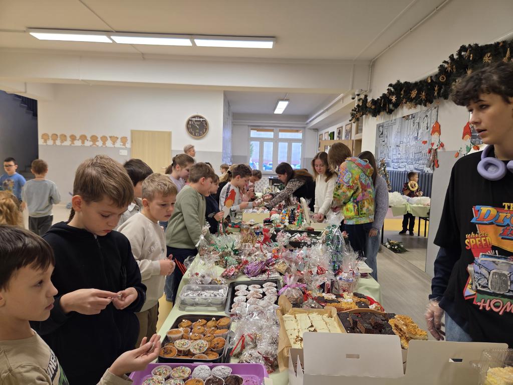 Ogromne podziękowania kierujemy do rodziców, którzy z wielkim zaangażowaniem uczestniczyli w przygotowaniu zarówno ozdób, jak i słodkości – ciast, pierniczków i babeczek. Wasza pomoc sprawiła, że kiermasz był jeszcze bardziej wyjątkowy, a każdy mógł poczuć prawdziwą świąteczną atmosferę.
